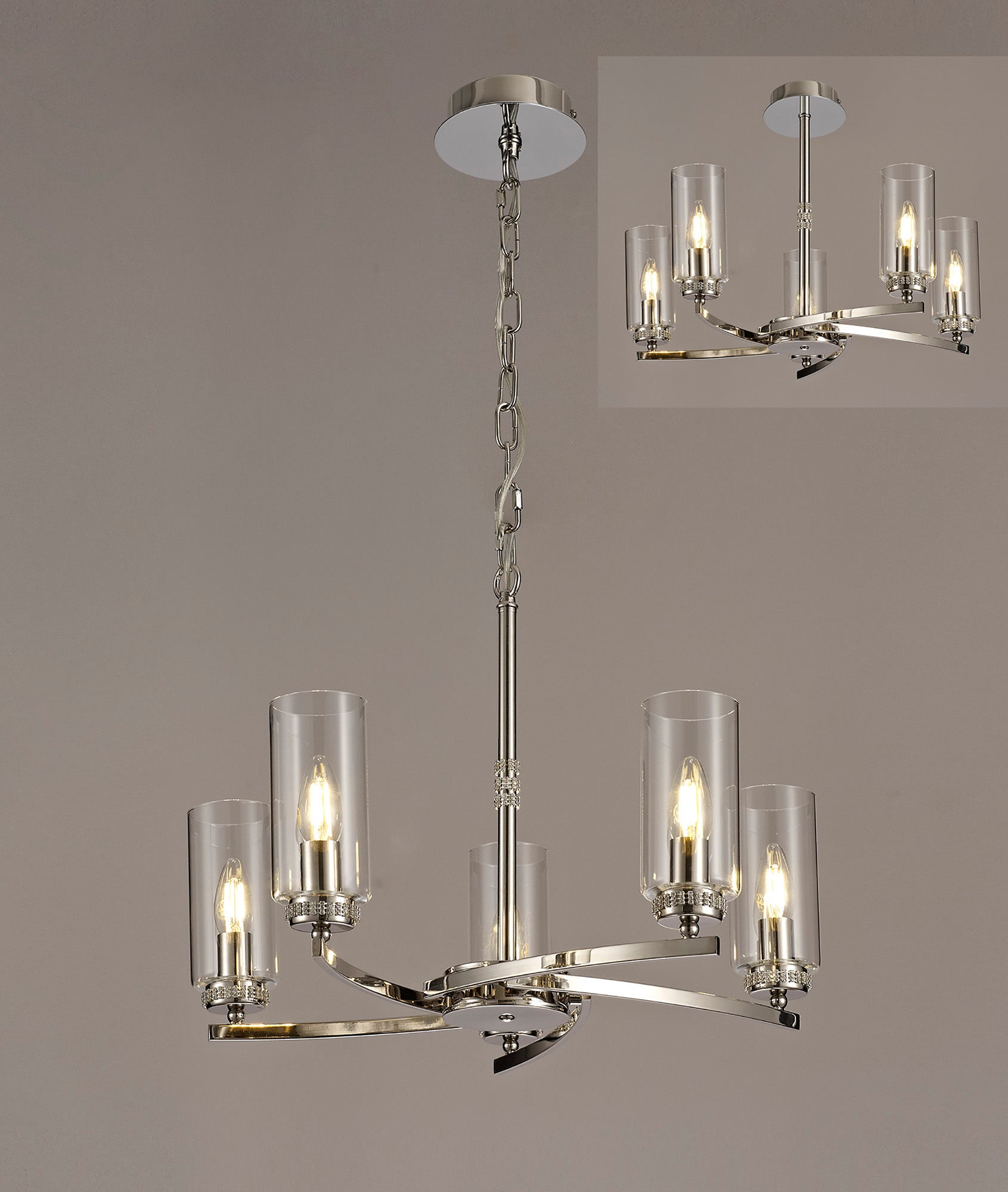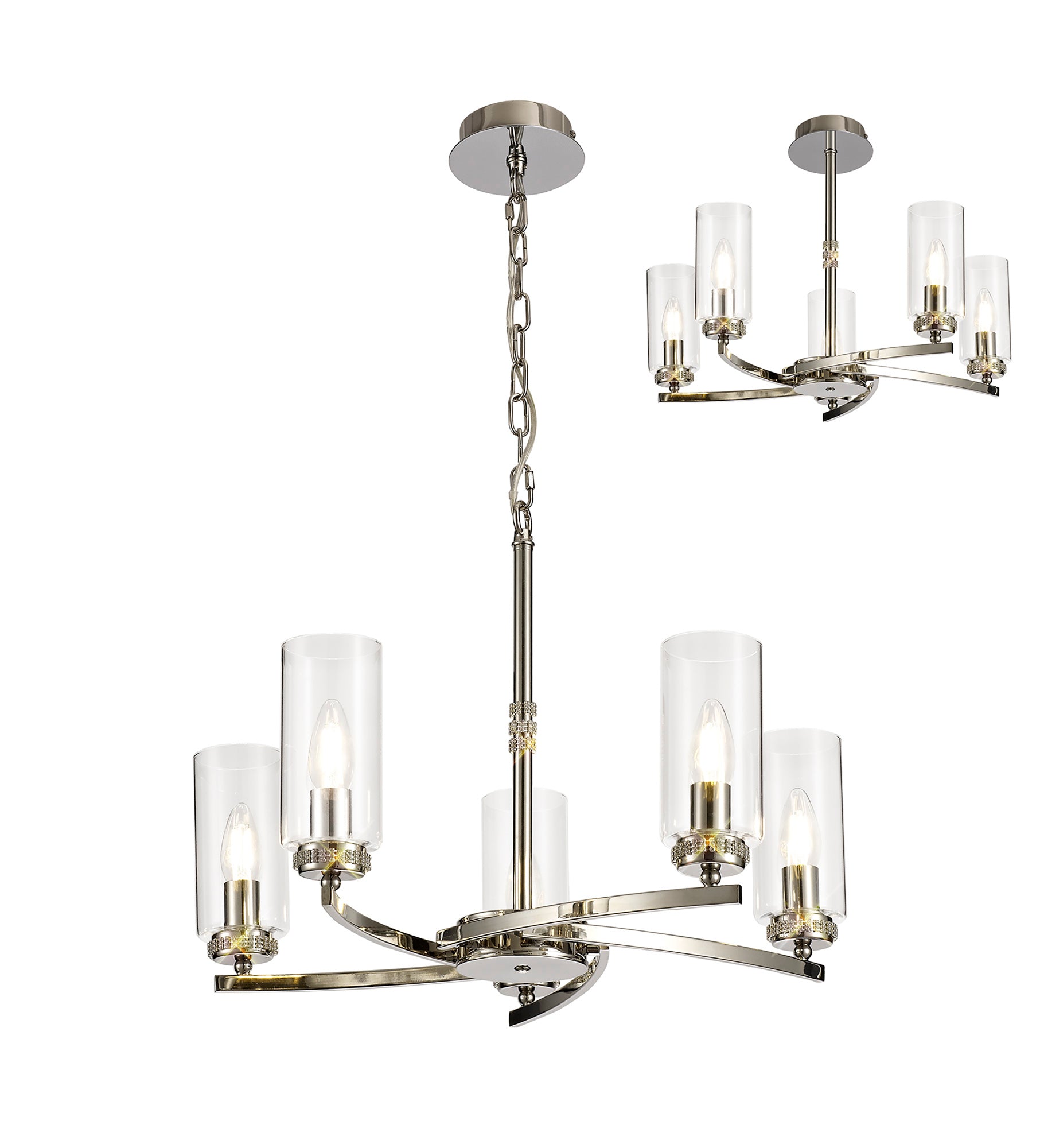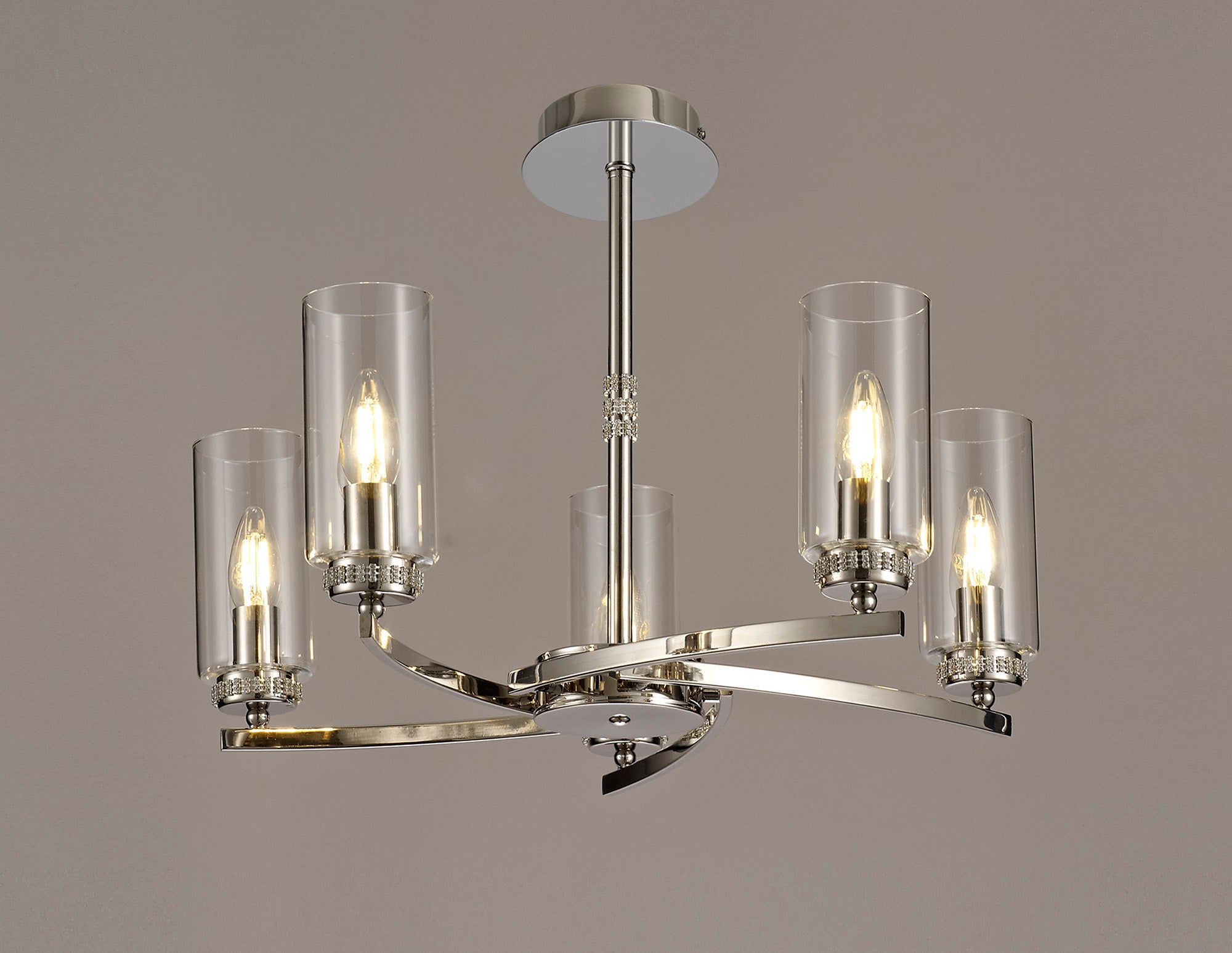 Darlington Pendant/Semi Ceiling, 5 x E14, Polished Nickel