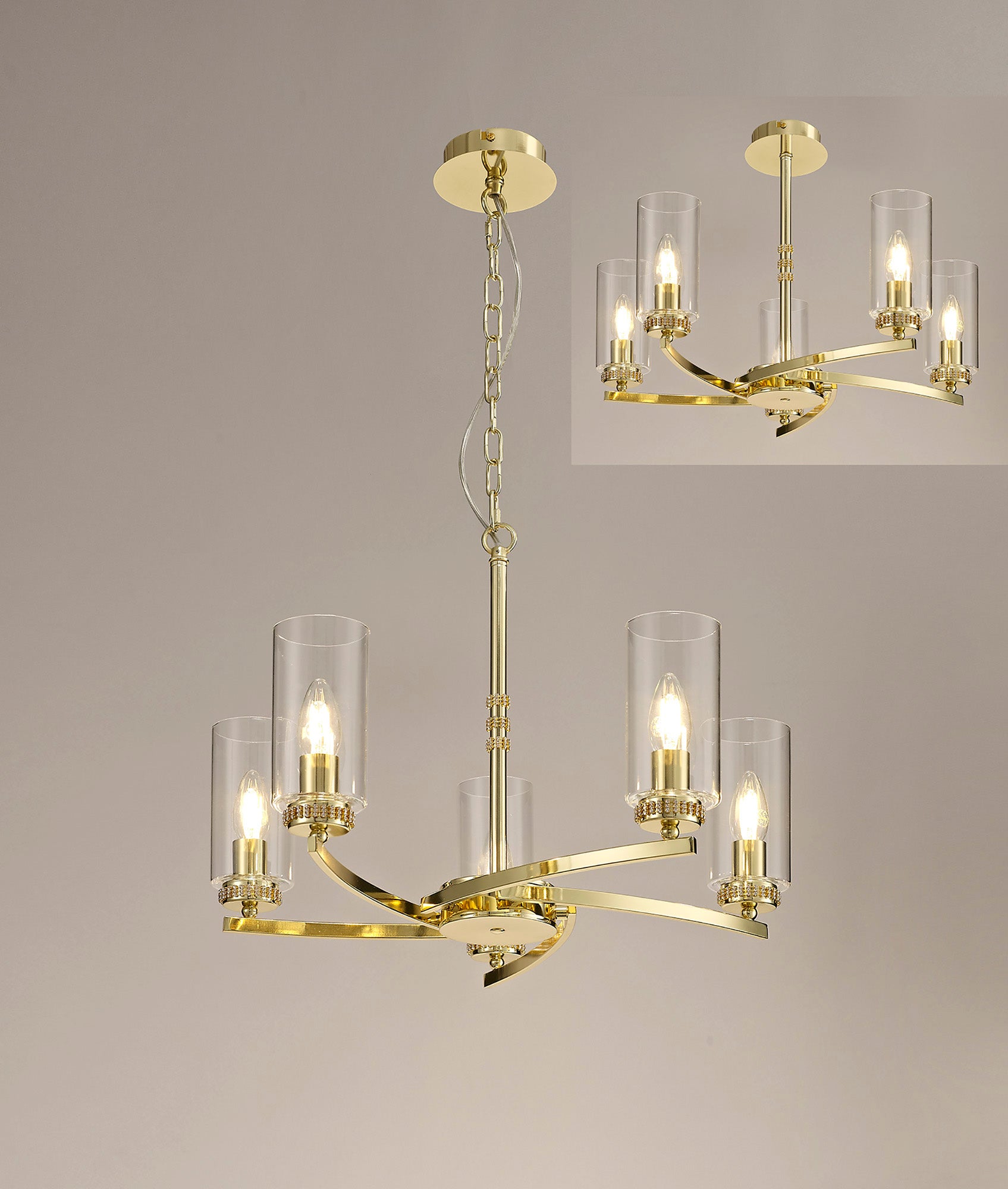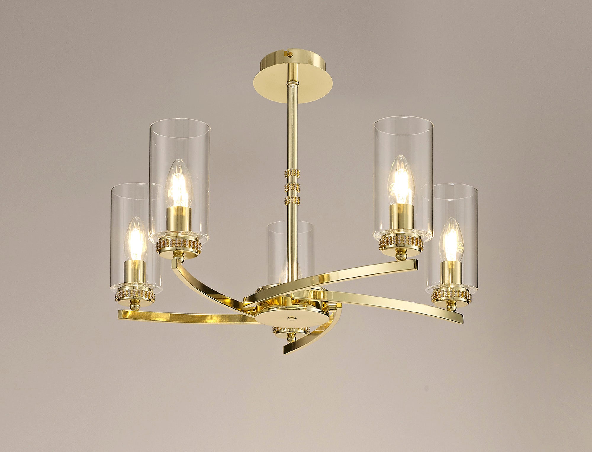 Darlington Pendant/Semi Ceiling, 5 x E14, Polished Gold