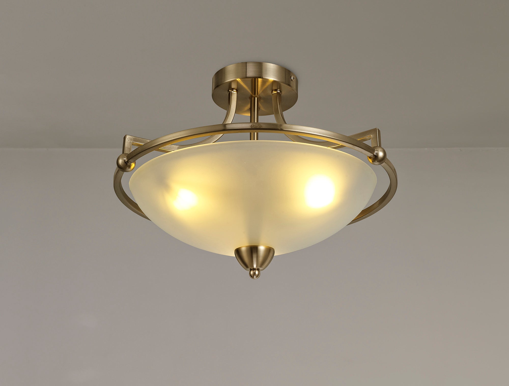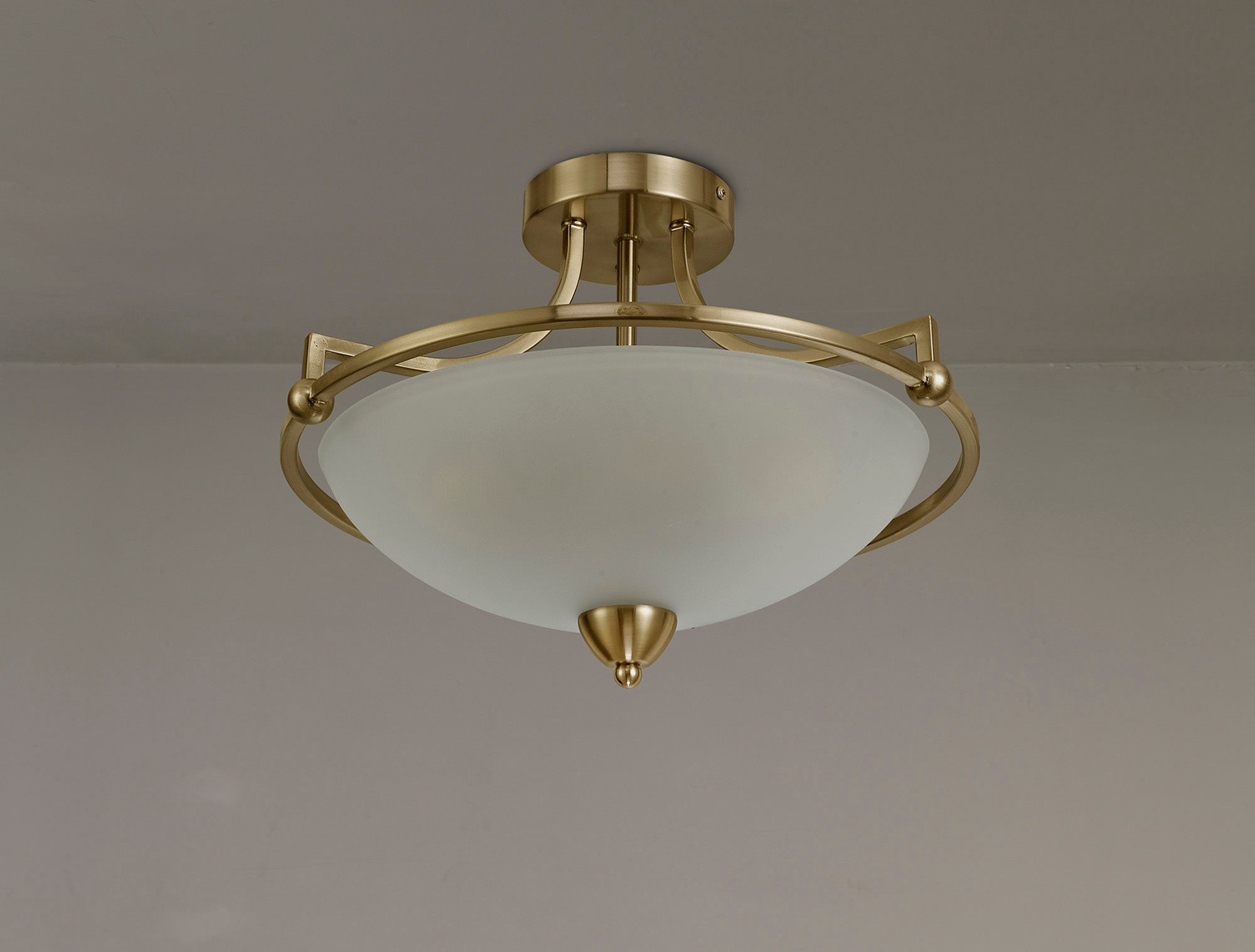 Camborne Semi-Flush Ceiling, 3 Light E27, Antique Brass/Frosted Glass
