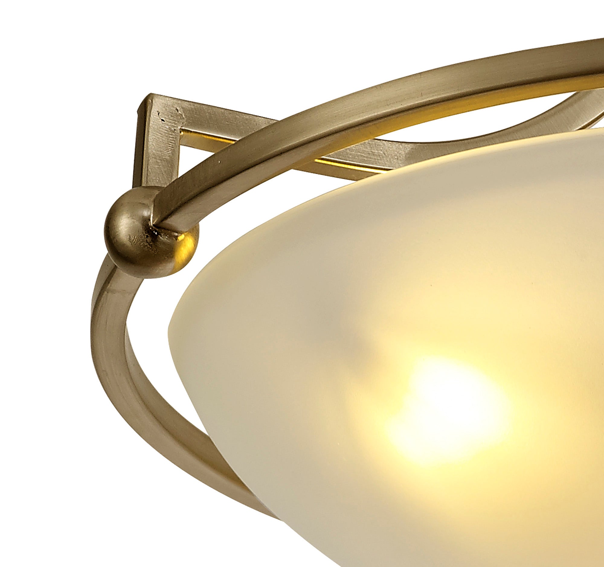 Camborne is a contemporary semi flush ceiling light available in a satin nickel or antique brass colour finish. The 35cm frosted glass conceals the E27 lampholders gently filtrineg the light emitted from the chosen lamp used.