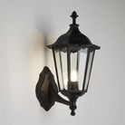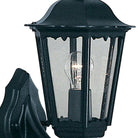 This Alex black outdoor wall light with clear glass makes the exterior of your home or garden look attractive and well-lit. The style of the lamp is simple and classic, with elements from Victorian street lighting producing a traditional look from a bygone era. The wall light is also IP44 rated and waterproof to protect against the elements.