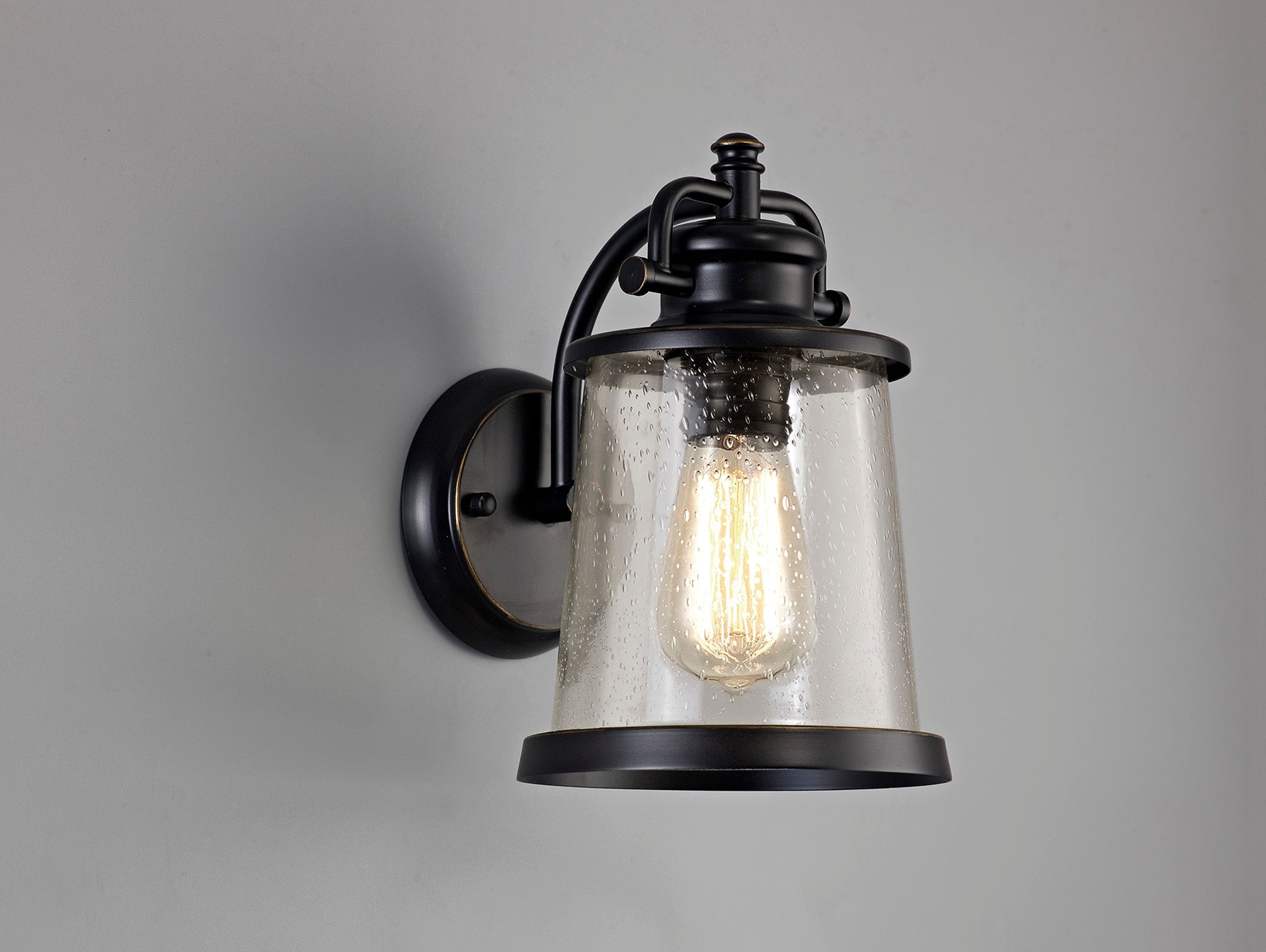 Blenheim Wall Lamp, 1 x E27, Black/Gold With Seeded Clear Glass, IP54, 2yrs Warranty