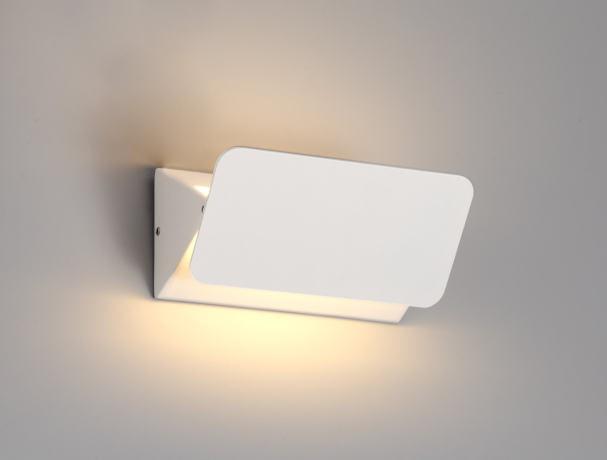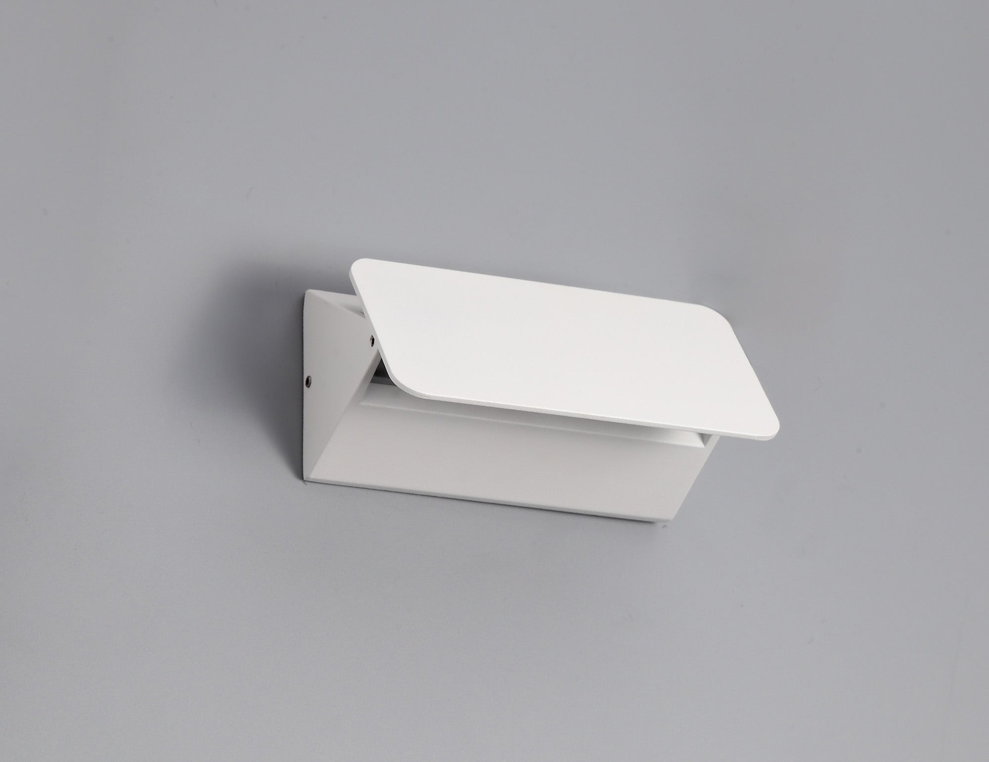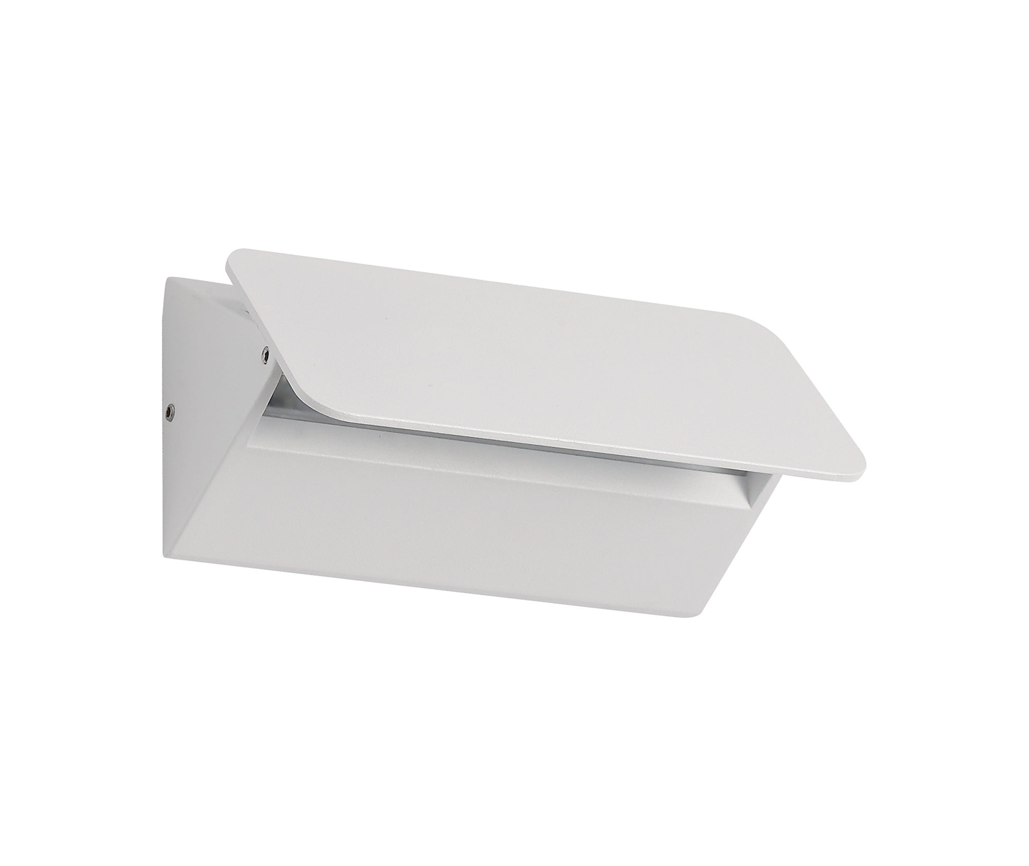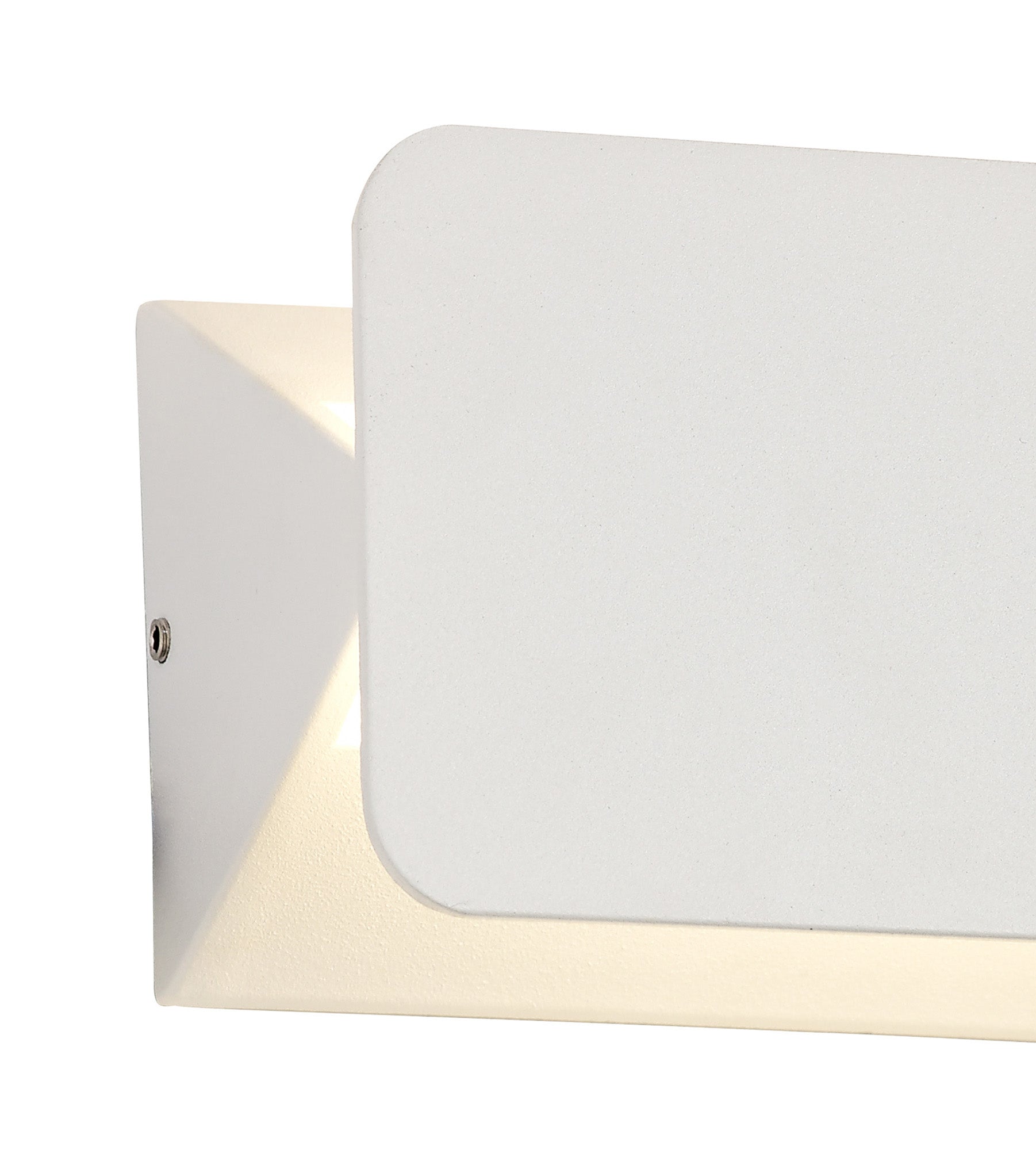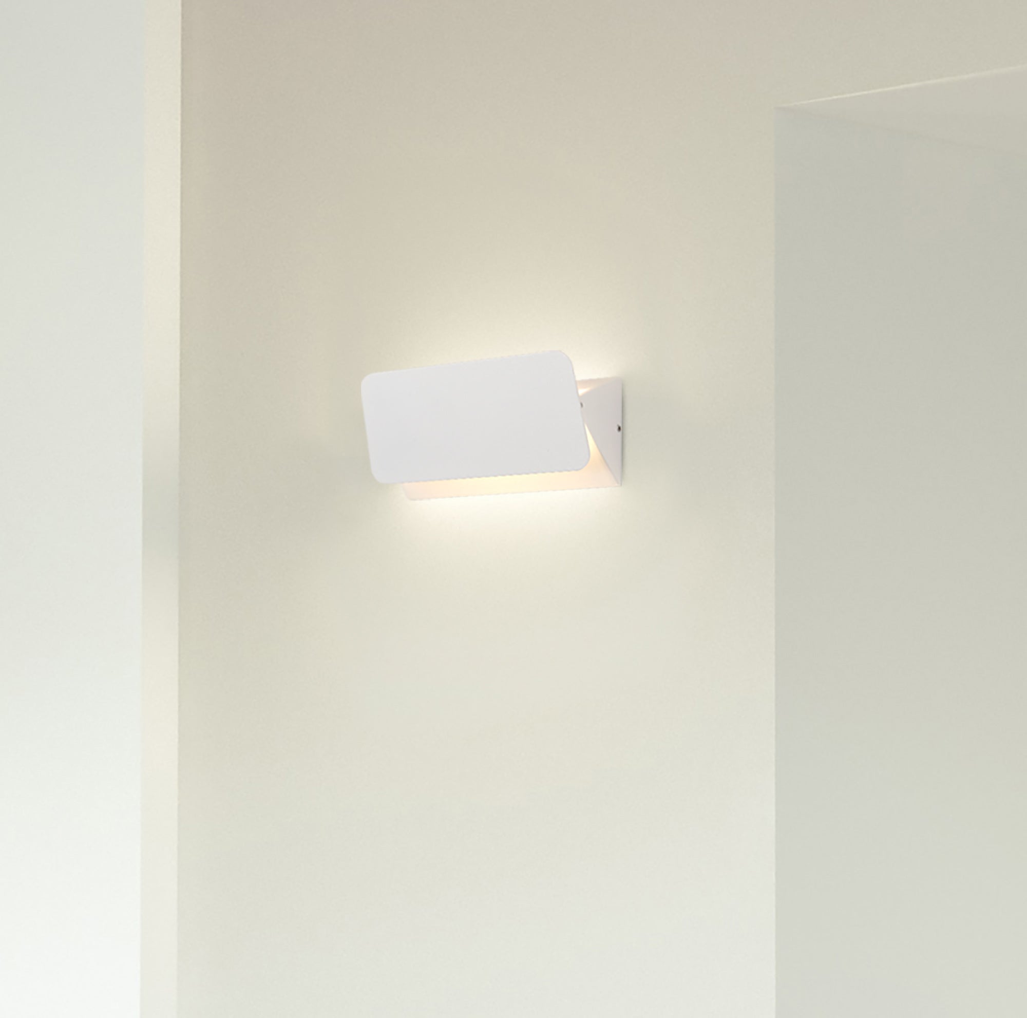 Chelsea uses simple uniform shapes structured in a unique way to create a new mode of projecting light. A 3D long pyramid is customised to form the backplate, positioning the integral LEDs along the two faces of the shape nearest to the point. The rectangular metal plate with curved corners is then centrally fixed at the front of the fitting to shelter the light dispersion and throw the illumination emitted in opposite directions on either side of the wall lamp. Available in two colour finishes with an IP54 rating the simplistic yet creative design is suitable for indoor and outdoor settings.