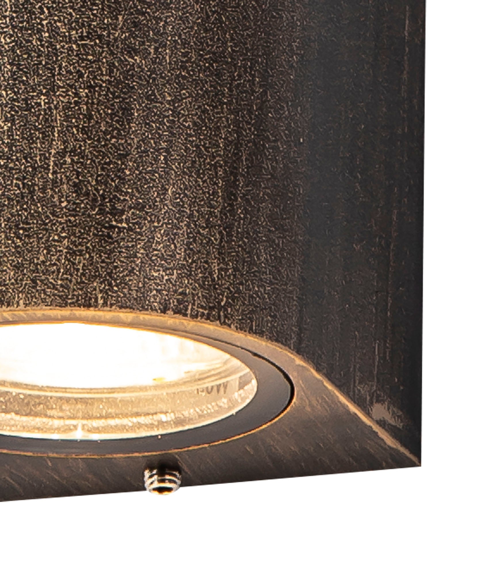 These outdoor IP54 rated wall lamps emulate a rustic urban atmosphere with their weathered colour finishes. The curved wall lamps use a black base with brushed flecks of gold whilst the rectangular version uses strokes of black and silver. This effect diminishes any impact from outdoor elements ensuring a realiyable longevity of use even in harsher weather.