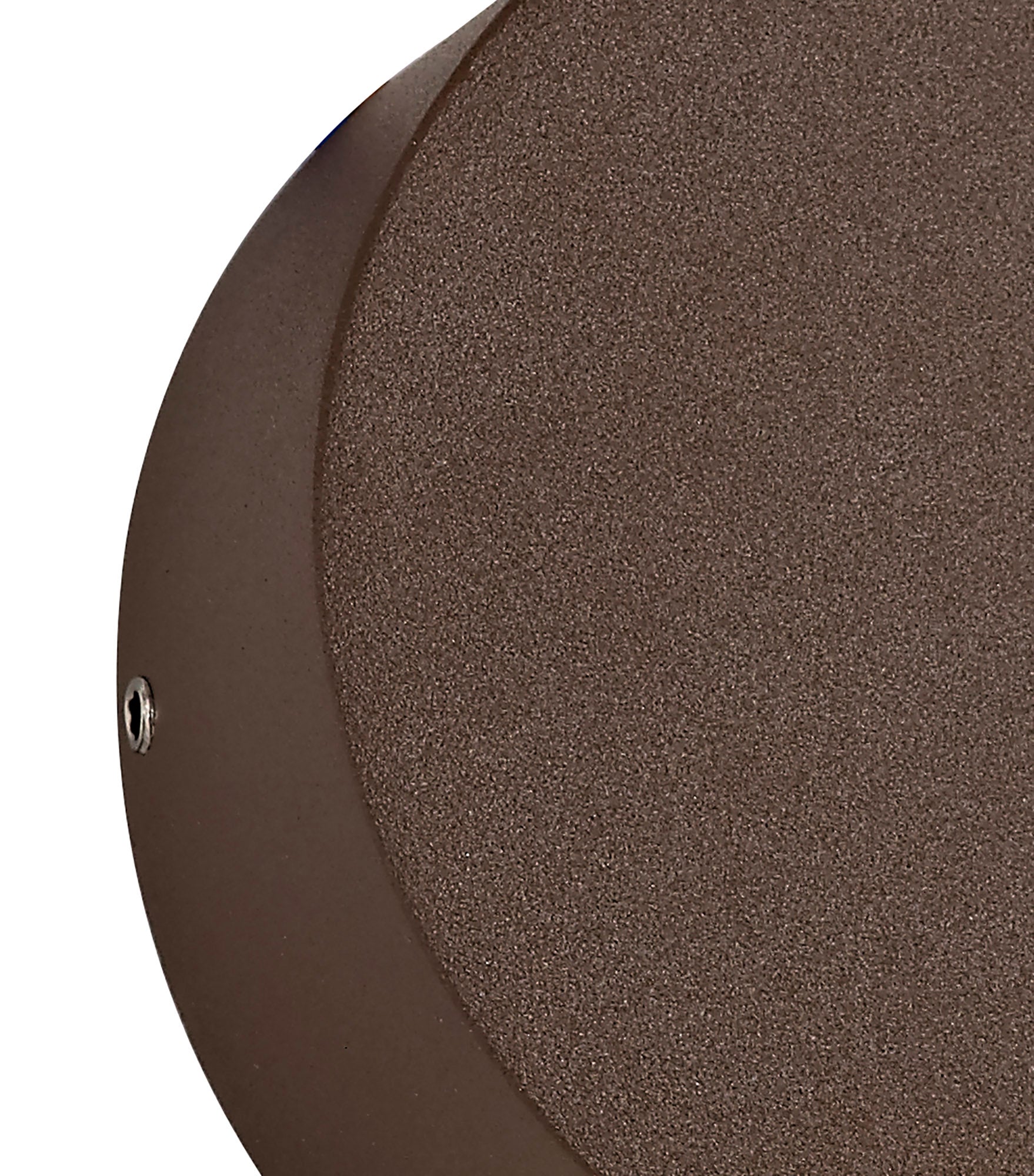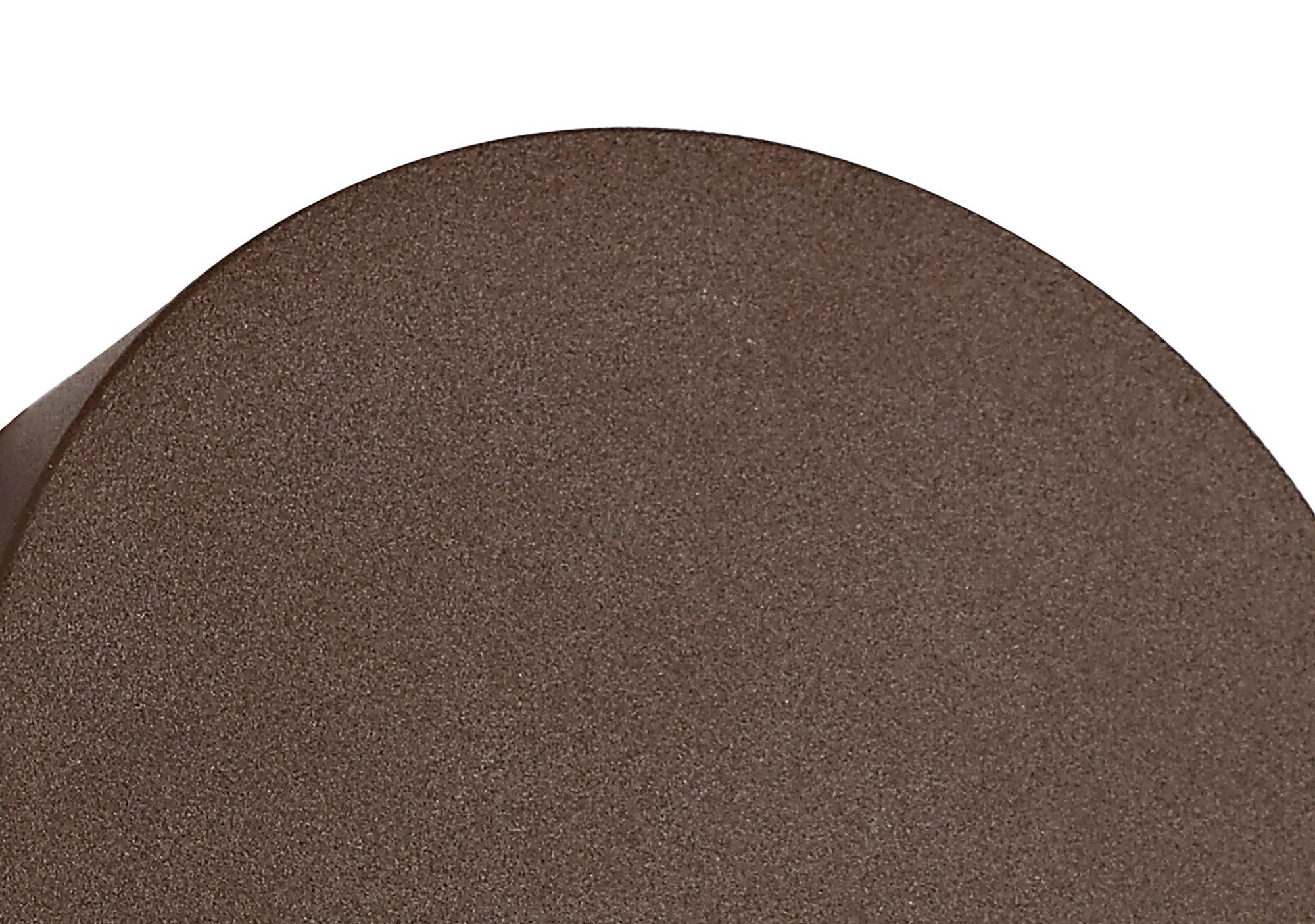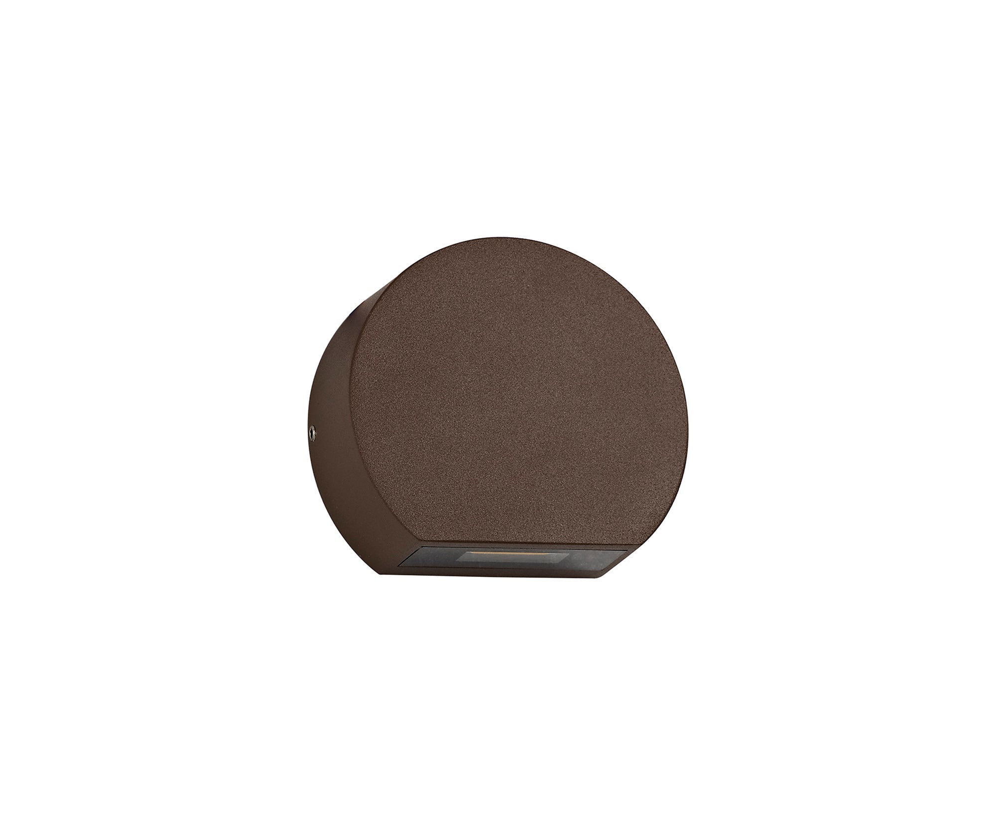 Ciana's dark brown colour finish complements the tones commonly found in outdoor environments from gurdens to pathways. This LED wall lamp offers a downlight direction of illumination. The circular form is slightly cut away at the bottom to diffuse the integral 3000K LEDs. The round three dimensional shape provides an effortless feature whether or not the wall lamp is on.