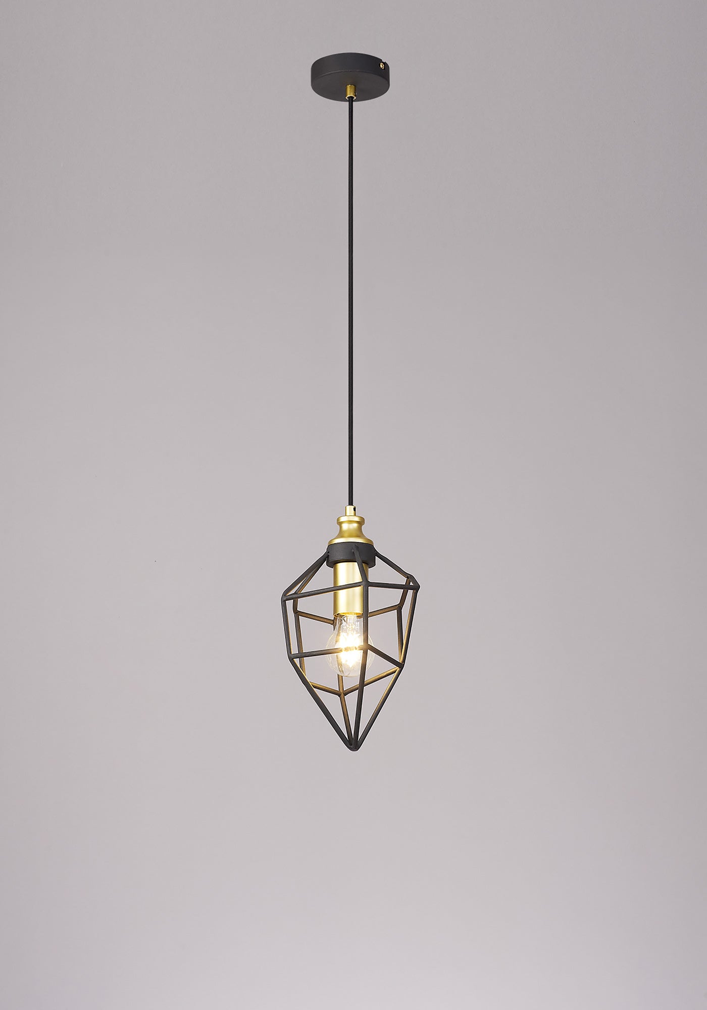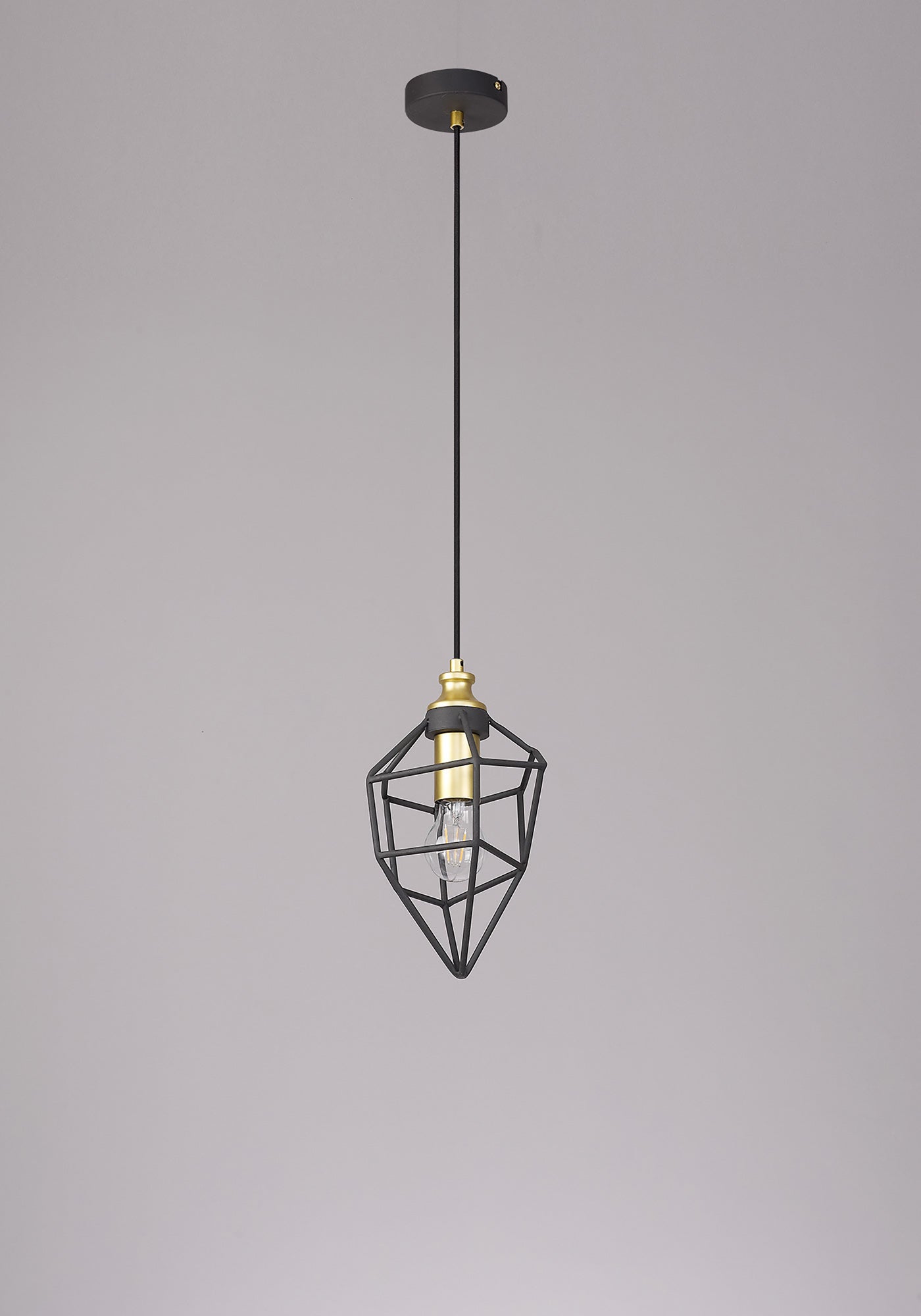The open areas of the Dobson single pendants form an uninhibited ambient distribution. Numerous different irregular shapes form the metal framework in three high quality colour options producing an overall acorn shape with distinctive narrow angled point. Available in three size these E27 pendants are sure to complement a modern edgy setting.