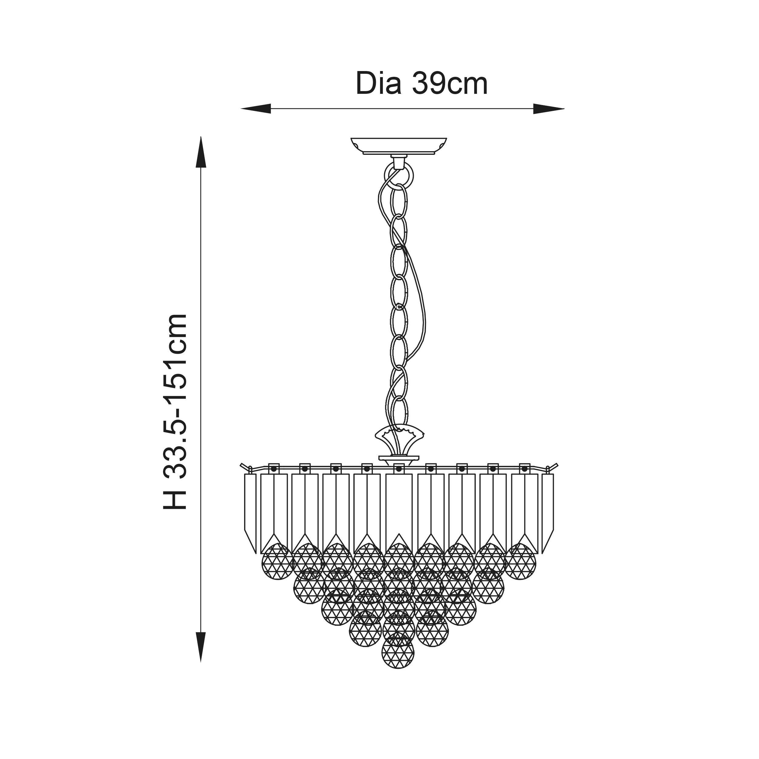 335-1140mm adjustable drop x 380mm diameter