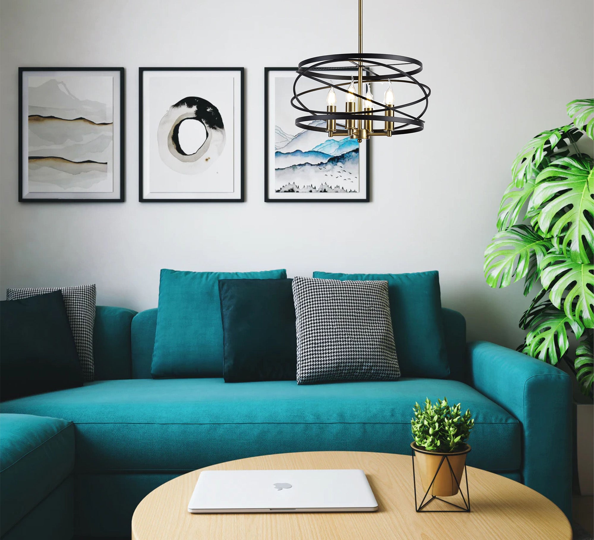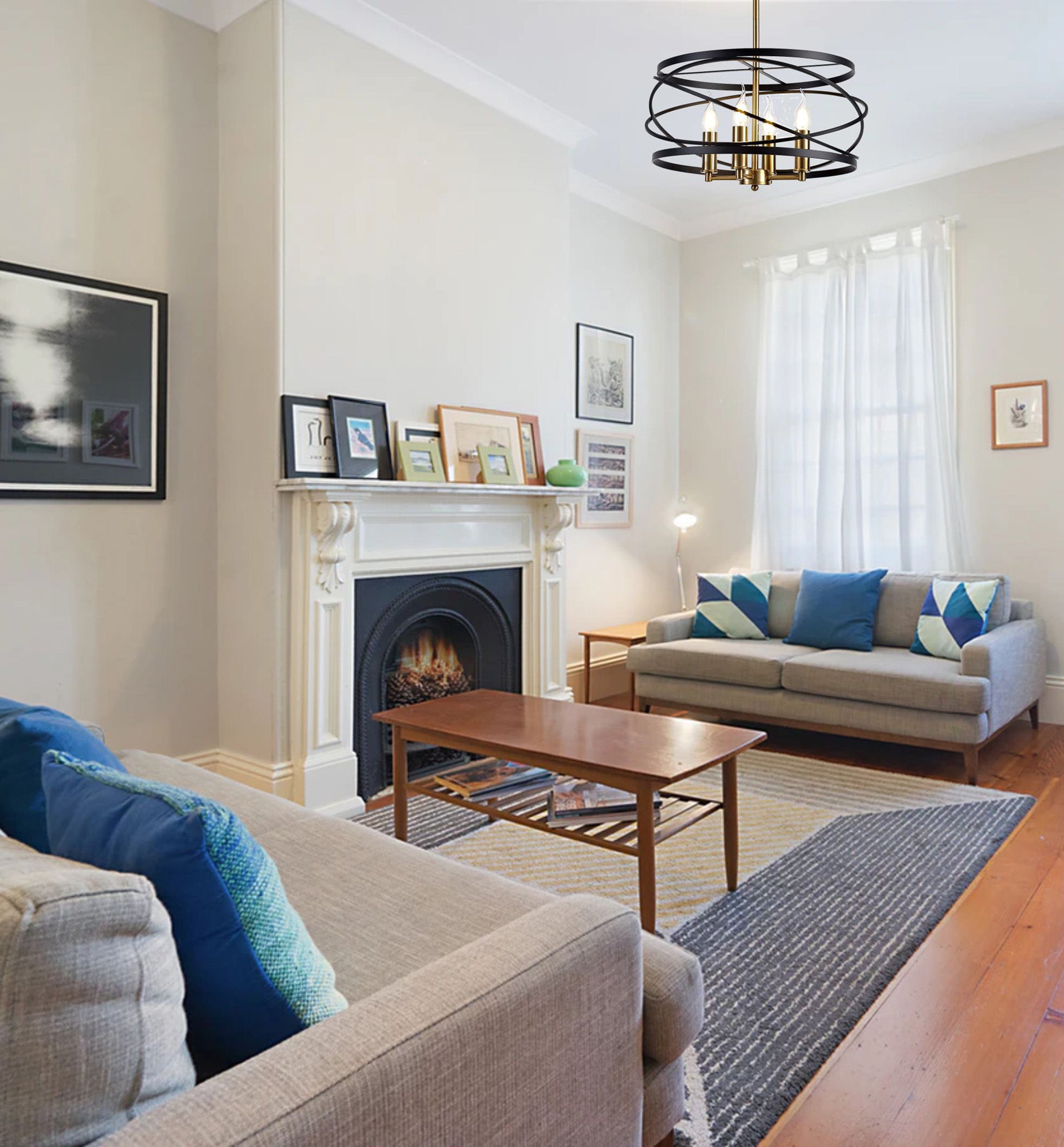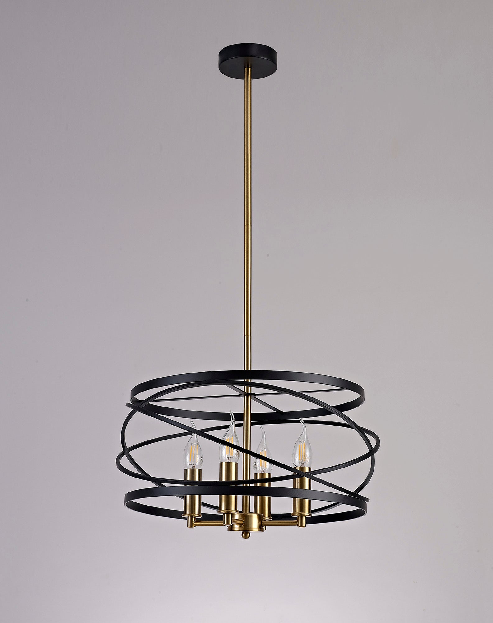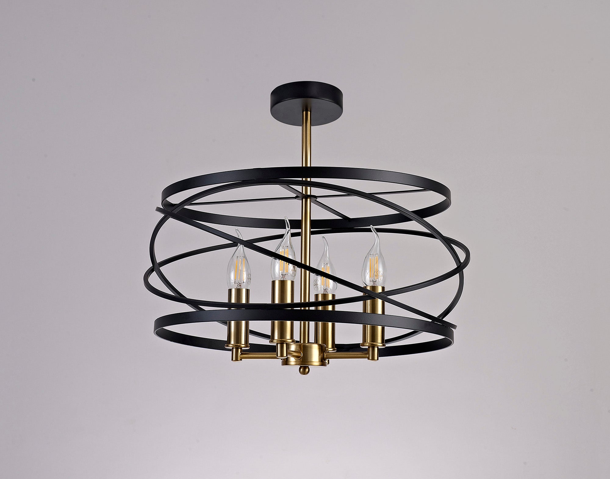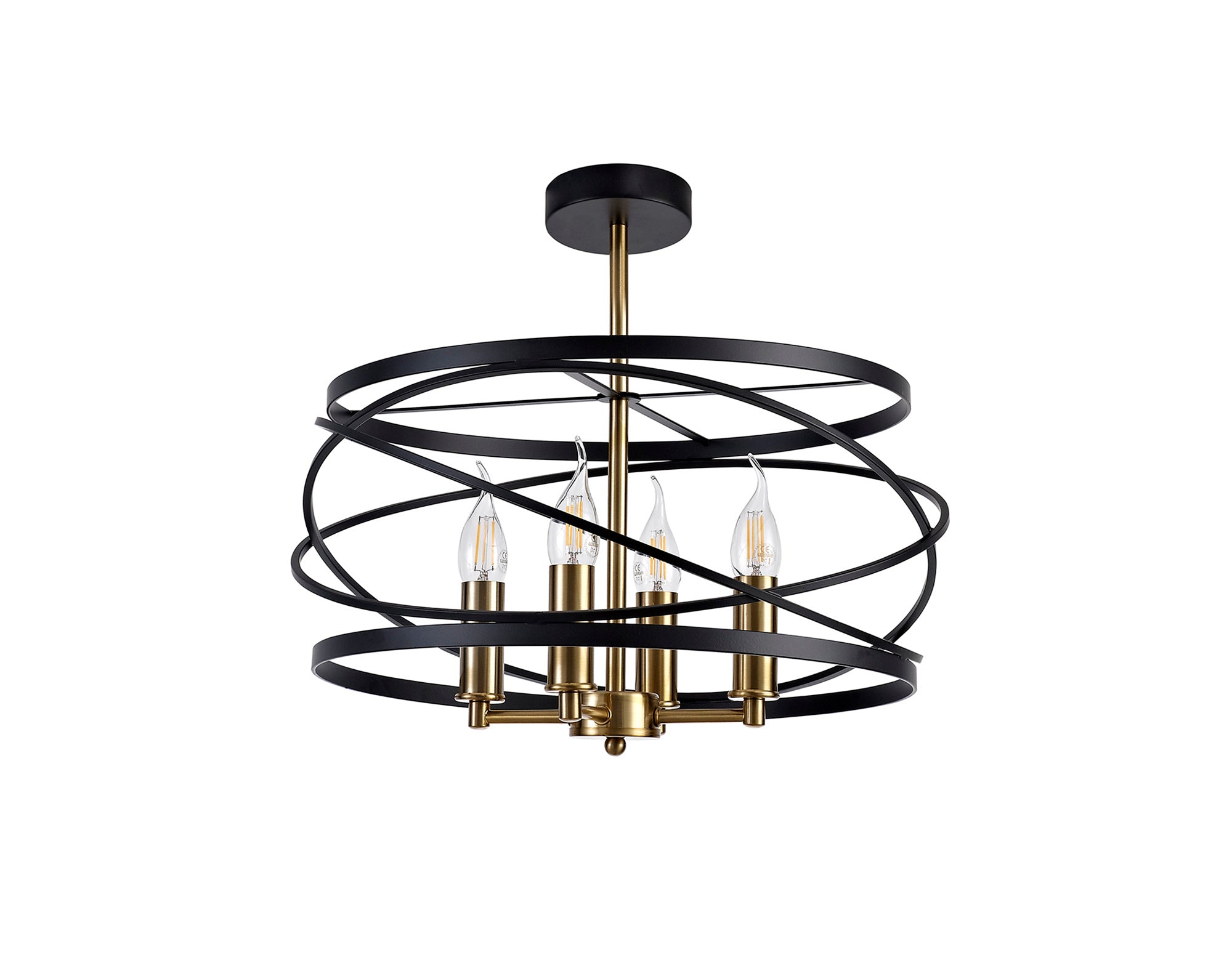 Connaught's intricately structured frame encircles the four E14 lampholders with over lapping angled rings. The chaotic positioning of this central feature is brought into order by the slightly wider, vertical rings positioned at the top and bottom of the frame producing a drum like shape overall. This pendant emits a classical distinguished air suitable to complement or create a stylish room d�_cor. The black and satin gold colour is the final sophisticated touch to complete an elegant traditional pendant.