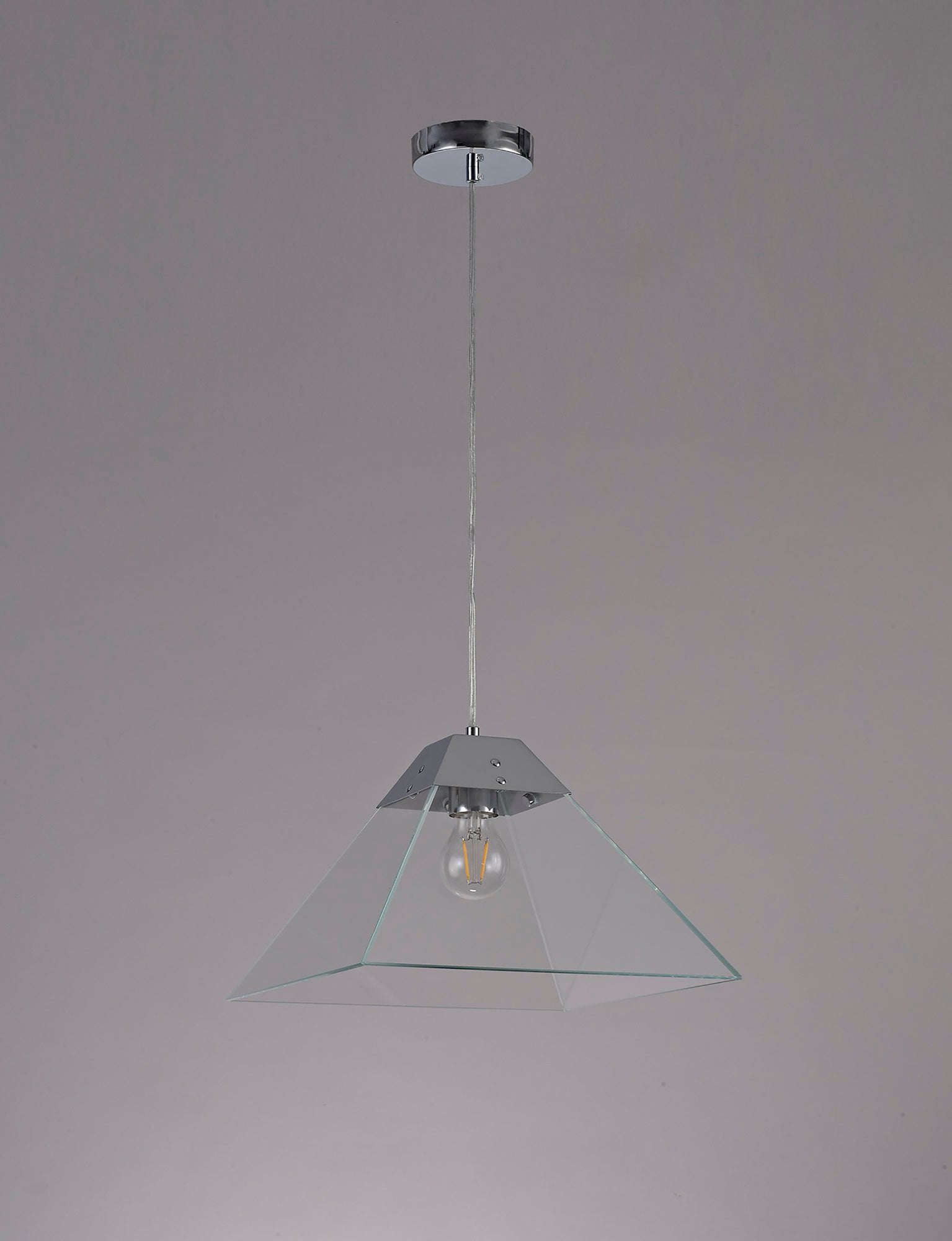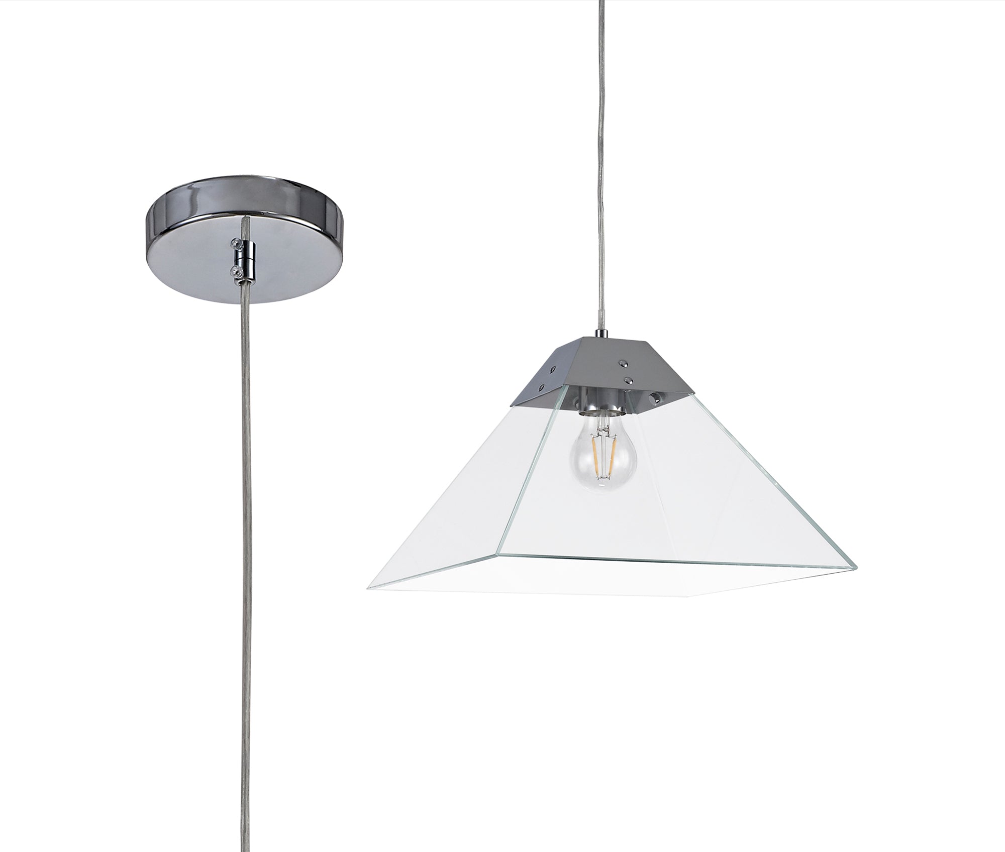 Elmont Square Pendant Large, 1 Light E27, Polished Chrome