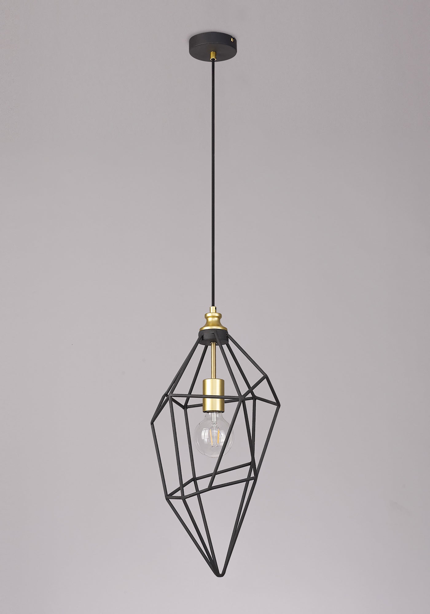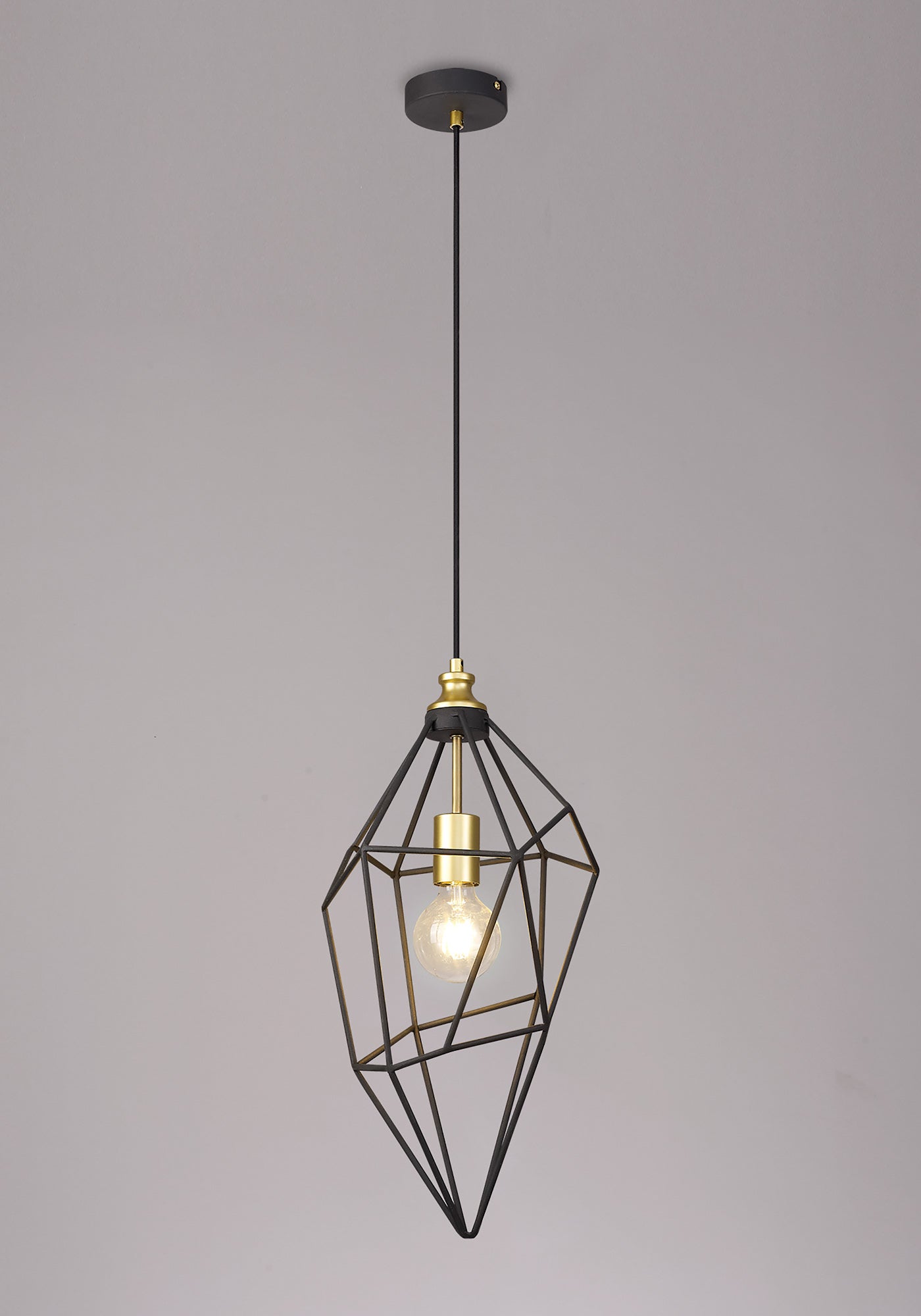 Dobson Large Pendant, 1 x E27, Painted Gold & Sand Black