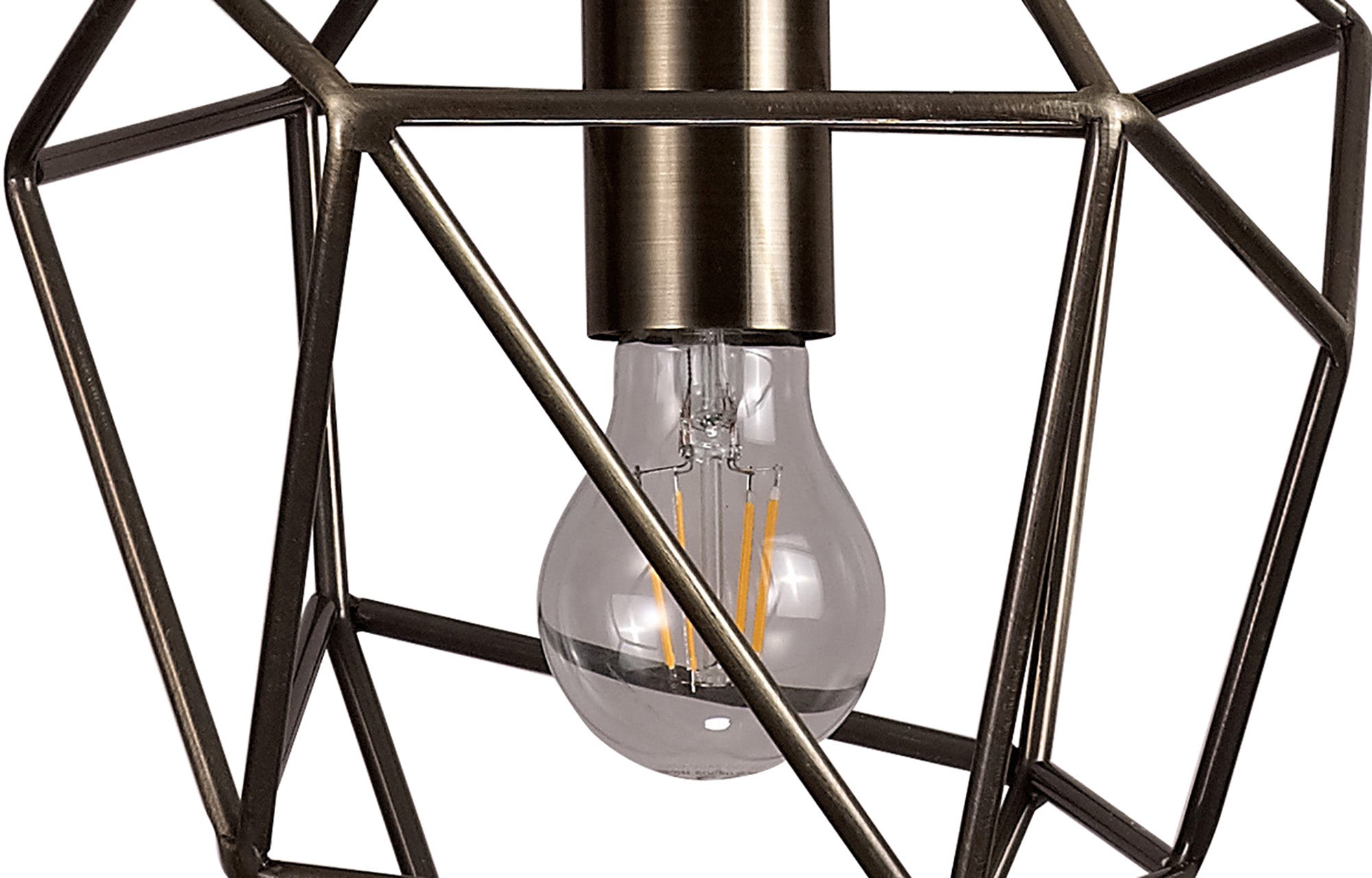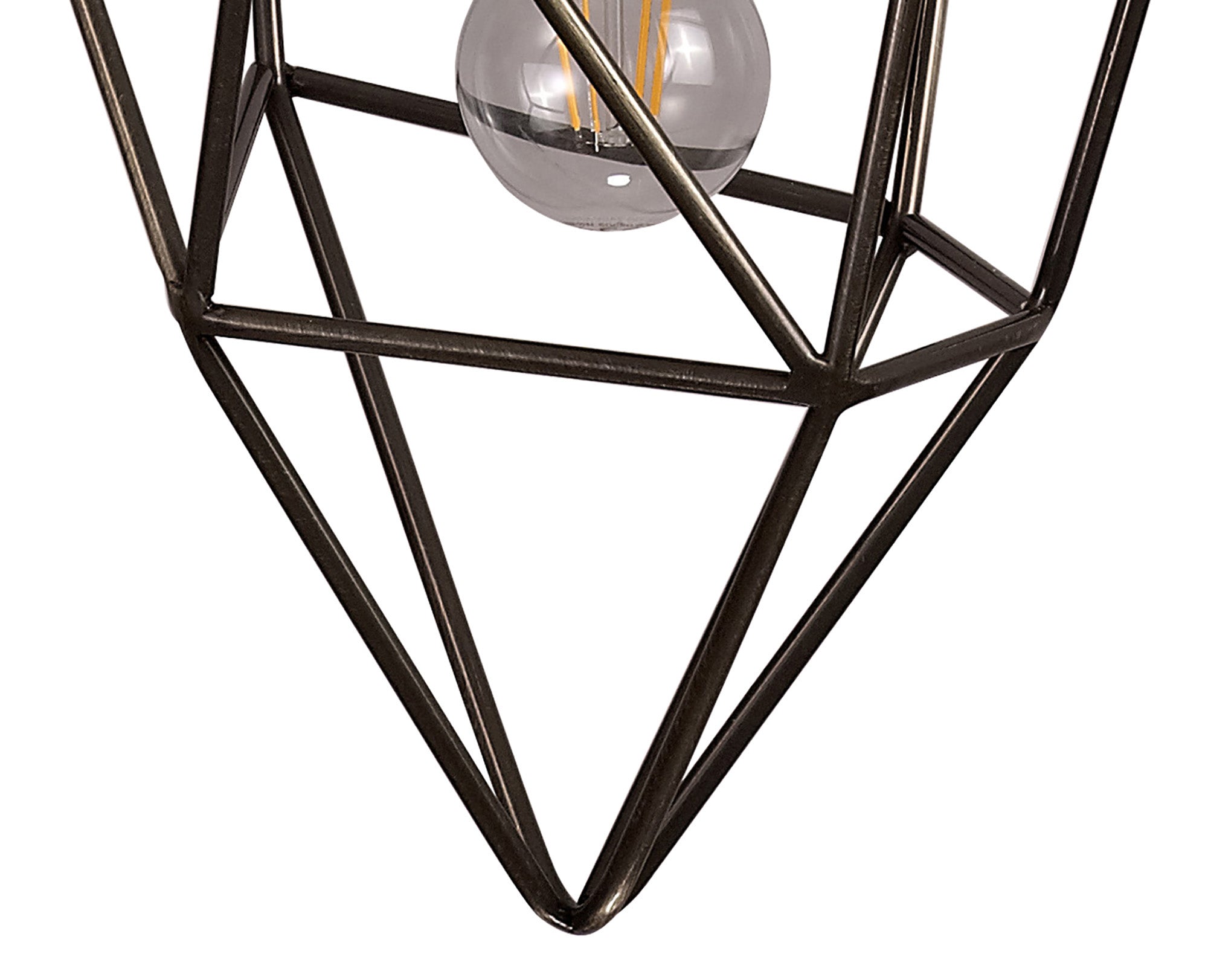 The open areas of the Dobson single pendants form an uninhibited ambient distribution. Numerous different irregular shapes form the metal framework in three high quality colour options producing an overall acorn shape with distinctive narrow angled point. Available in three size these E27 pendants are sure to complement a modern edgy setting.