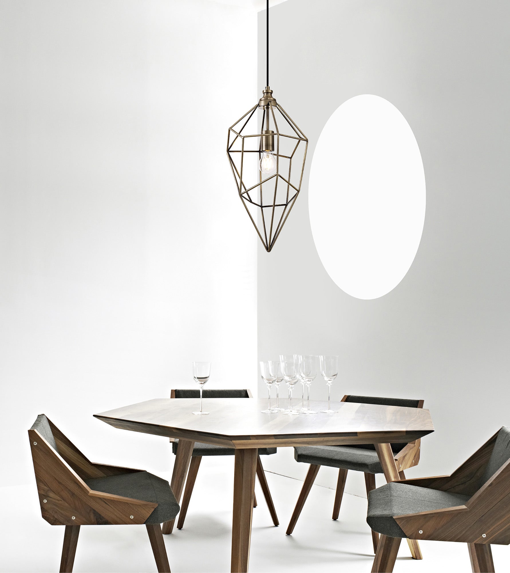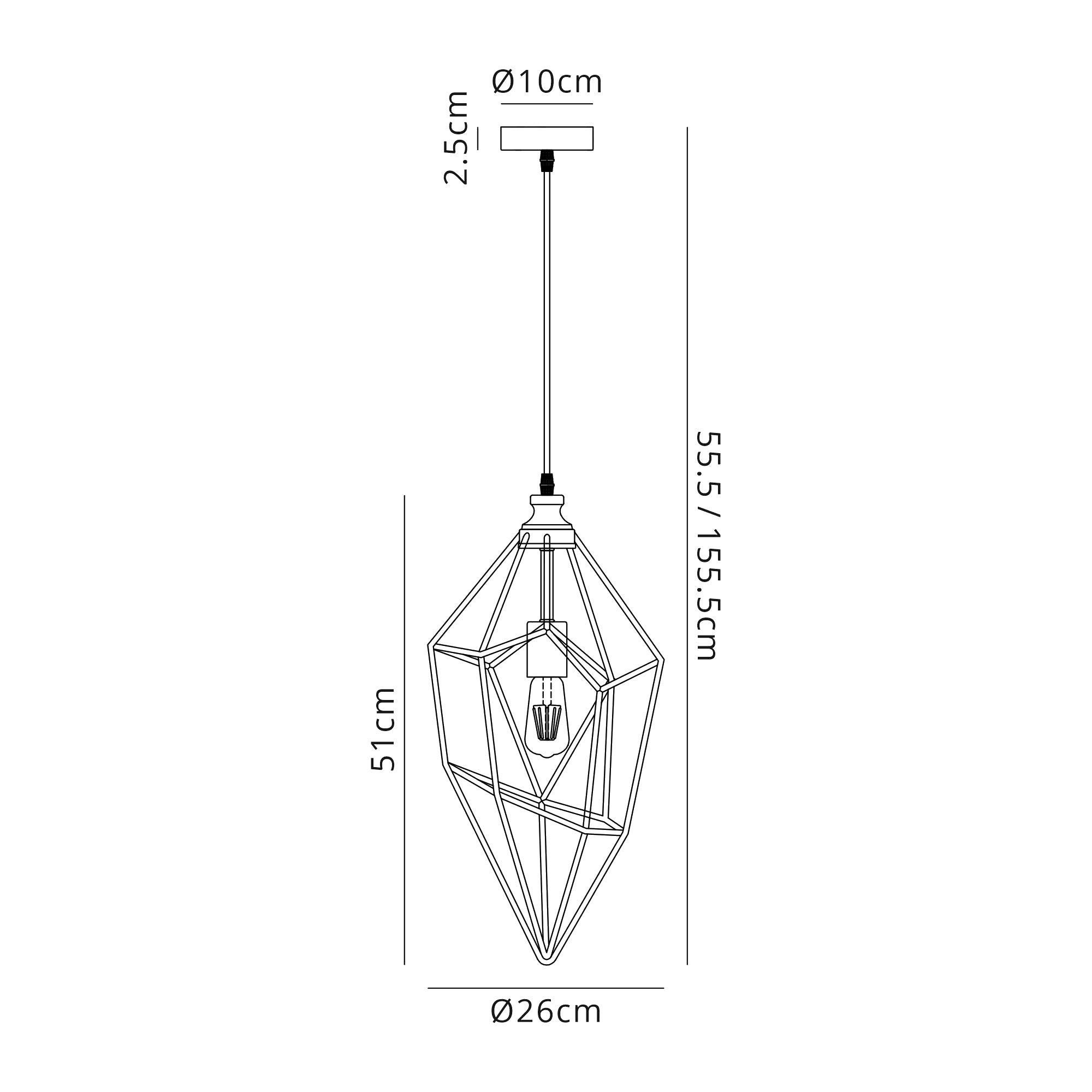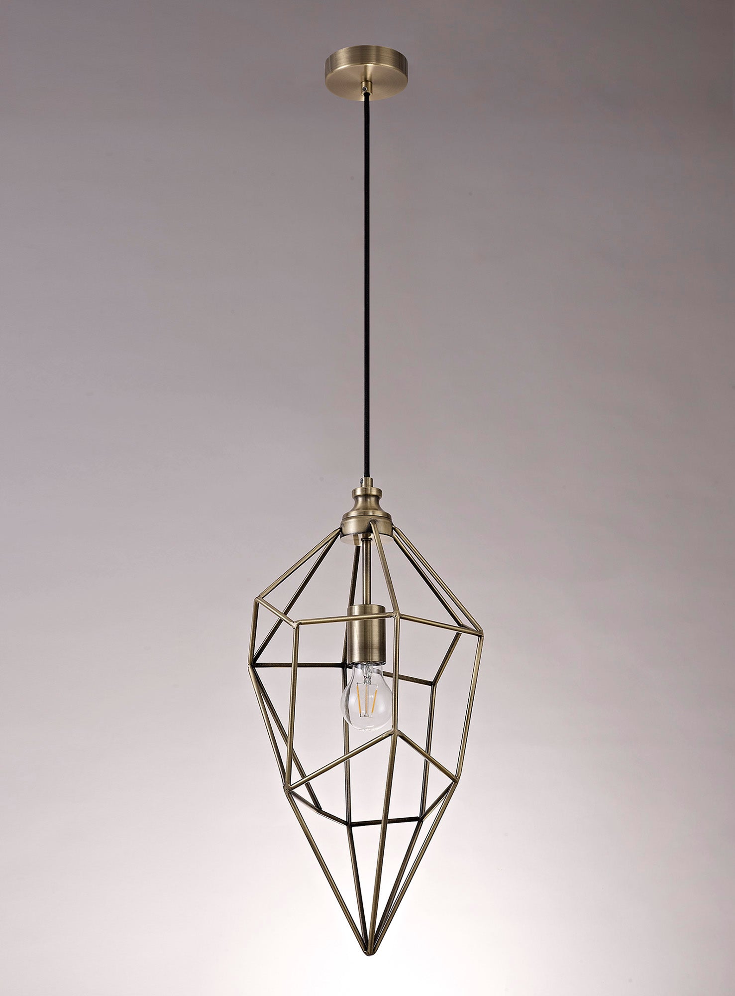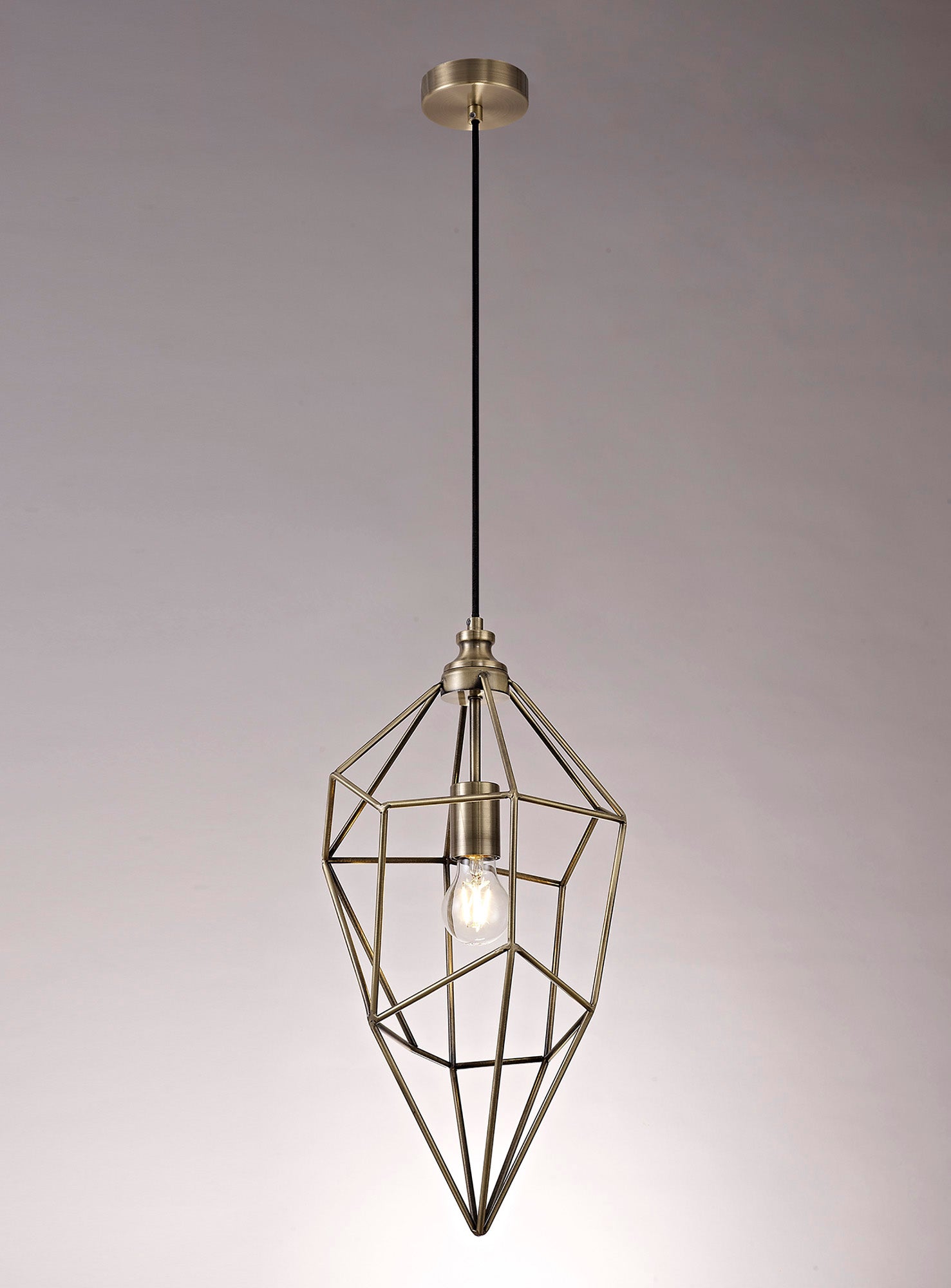 The open areas of the Dobson single pendants form an uninhibited ambient distribution. Numerous different irregular shapes form the metal framework in three high quality colour options producing an overall acorn shape with distinctive narrow angled point. Available in three size these E27 pendants are sure to complement a modern edgy setting.