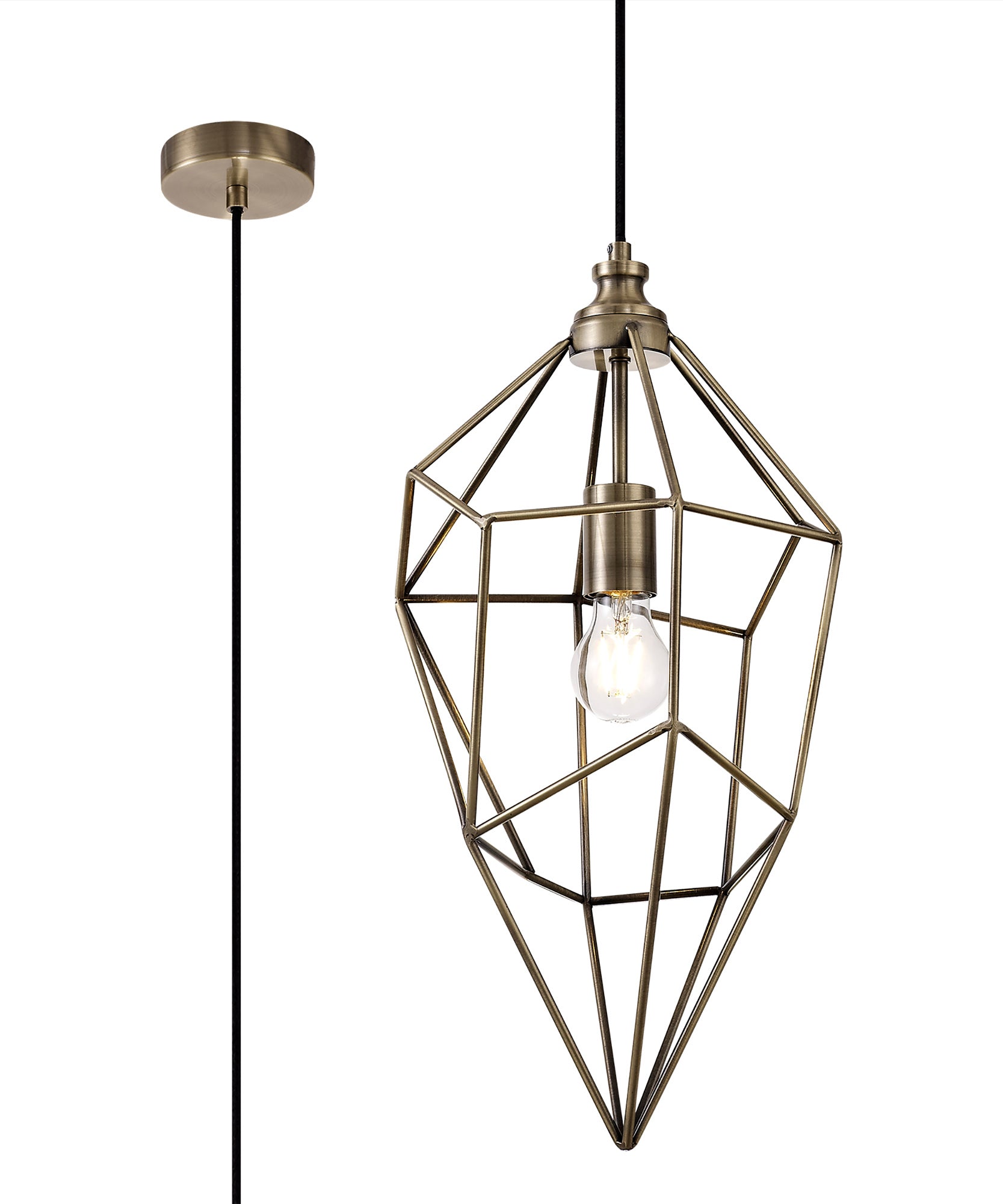 Dobson Large Pendant, 1 x E27, Antique Brass
