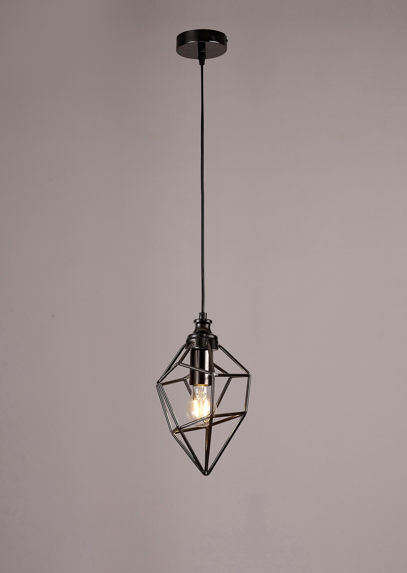The open areas of the Dobson single pendants form an uninhibited ambient distribution. Numerous different irregular shapes form the metal framework in three high quality colour options producing an overall acorn shape with distinctive narrow angled point. Available in three size these E27 pendants are sure to complement a modern edgy setting.