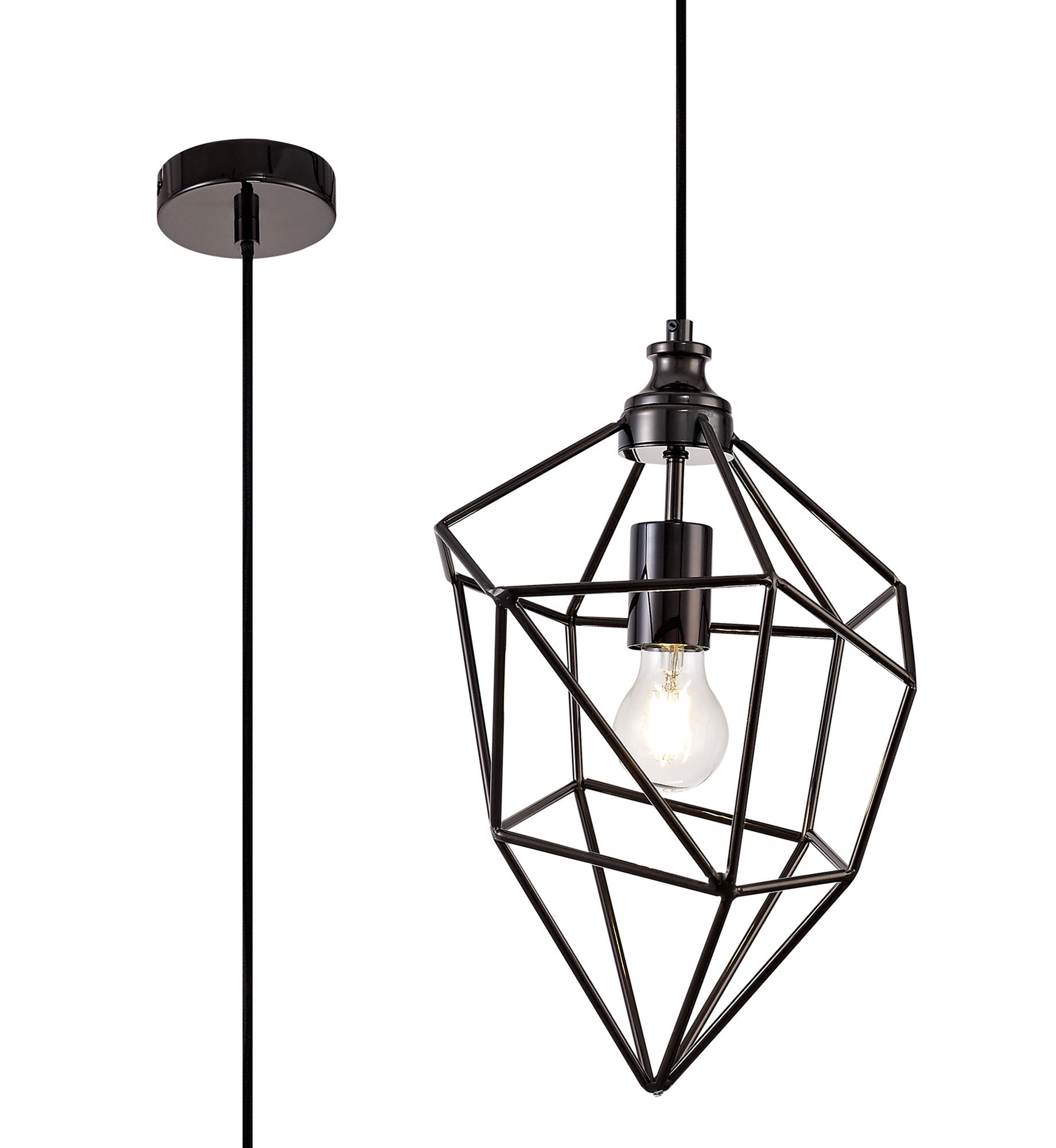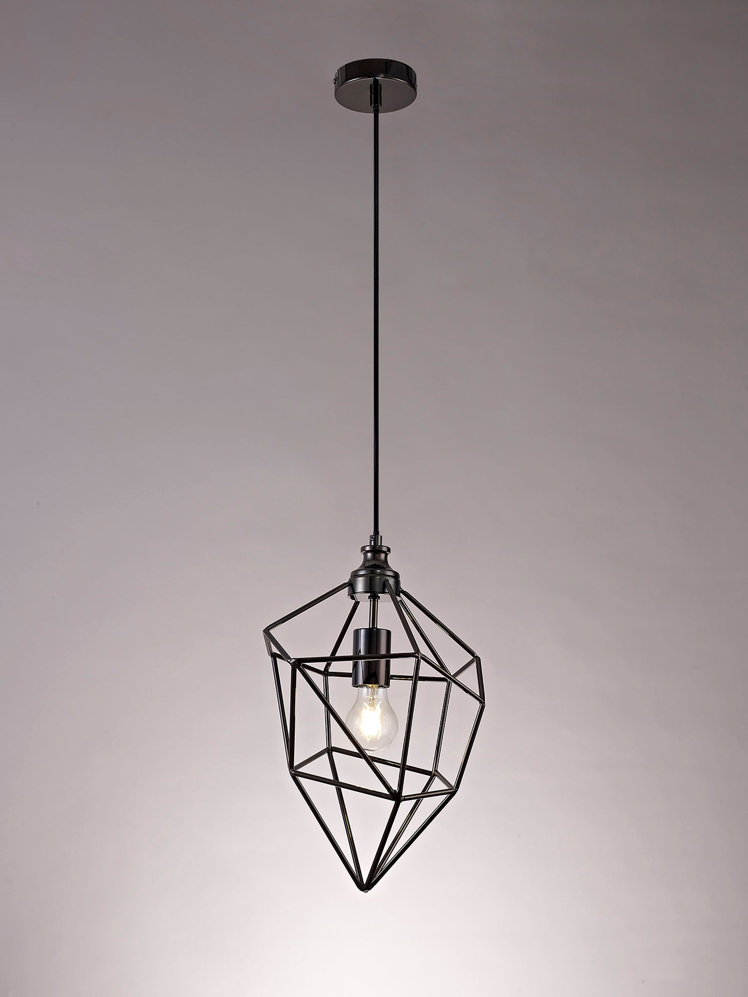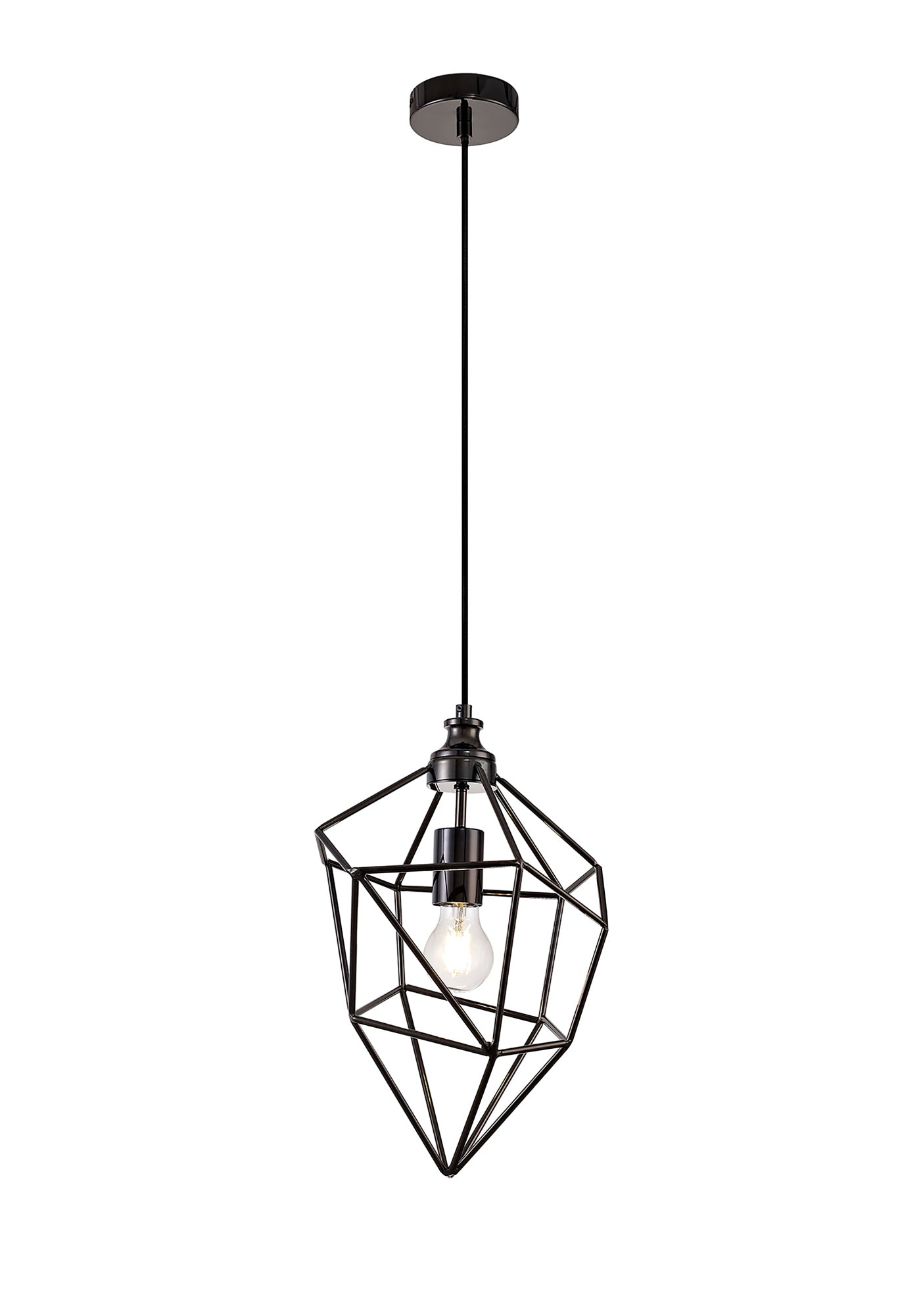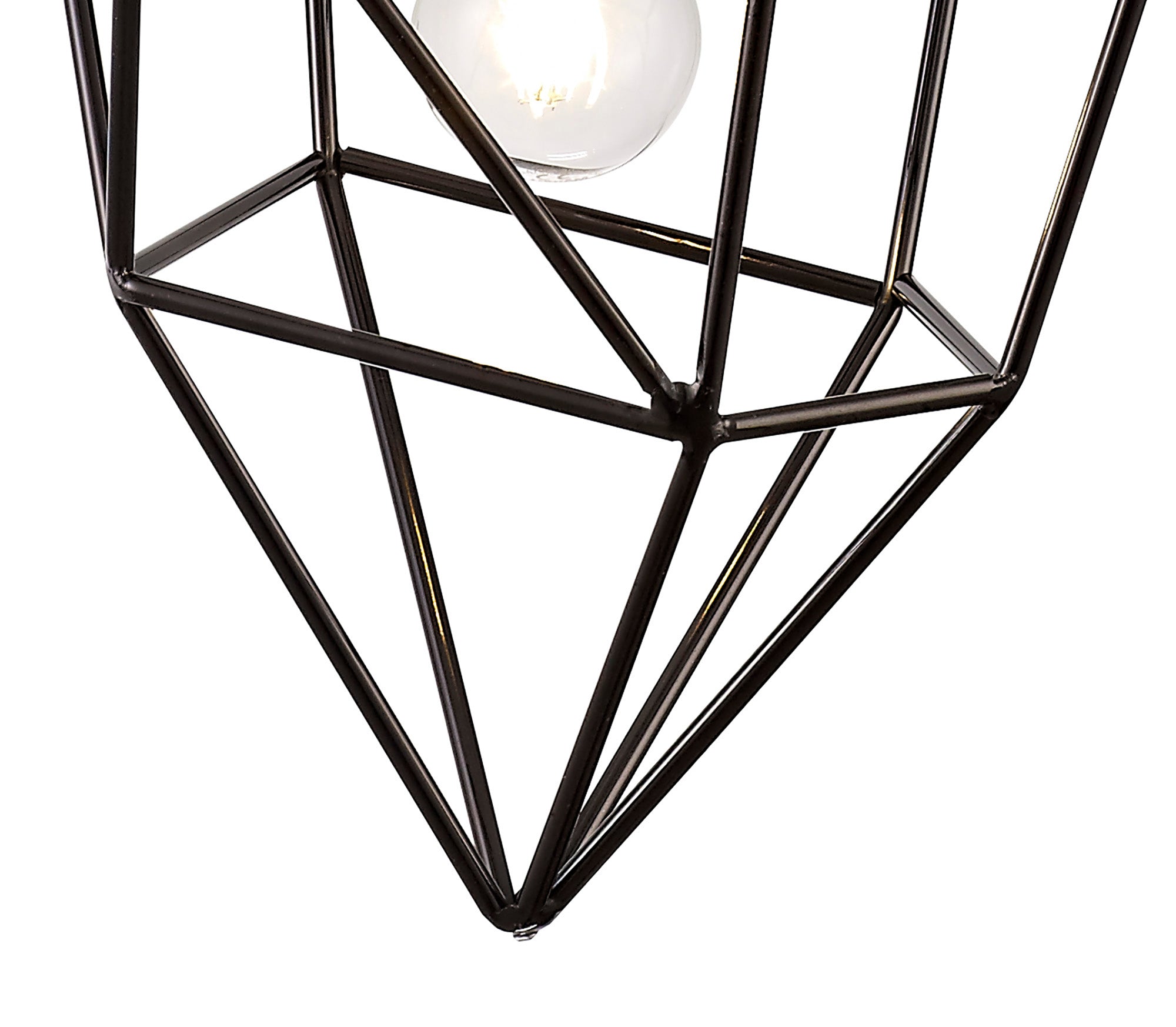 The open areas of the Dobson single pendants form an uninhibited ambient distribution. Numerous different irregular shapes form the metal framework in three high quality colour options producing an overall acorn shape with distinctive narrow angled point. Available in three size these E27 pendants are sure to complement a modern edgy setting.