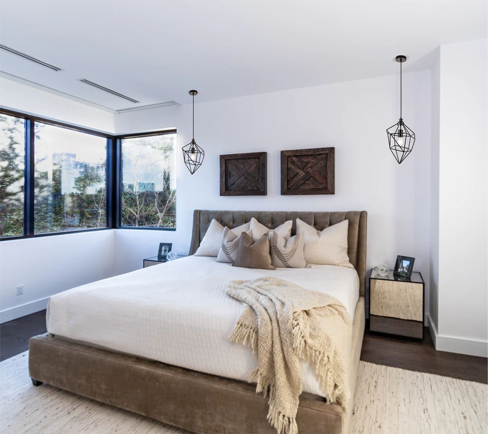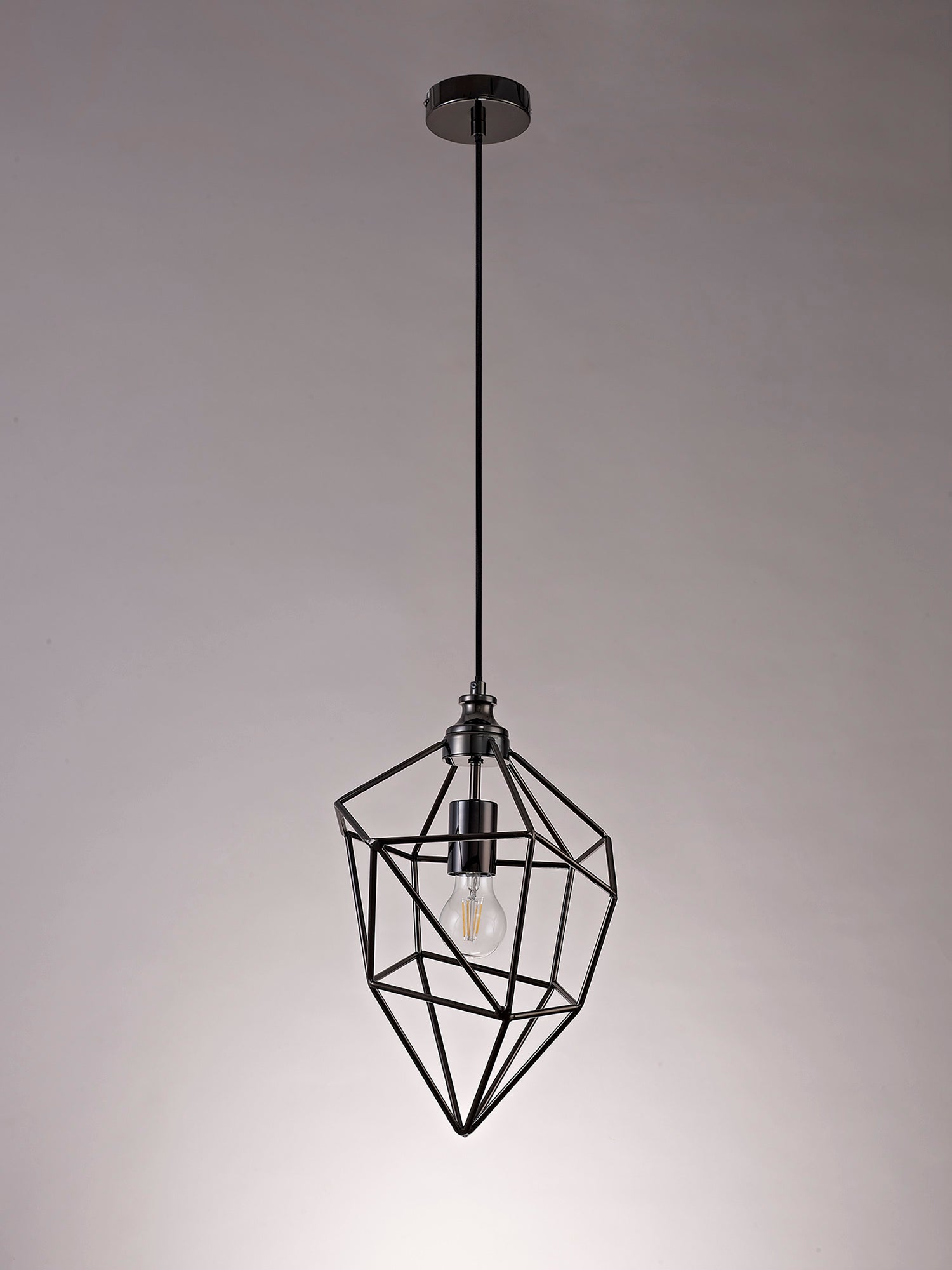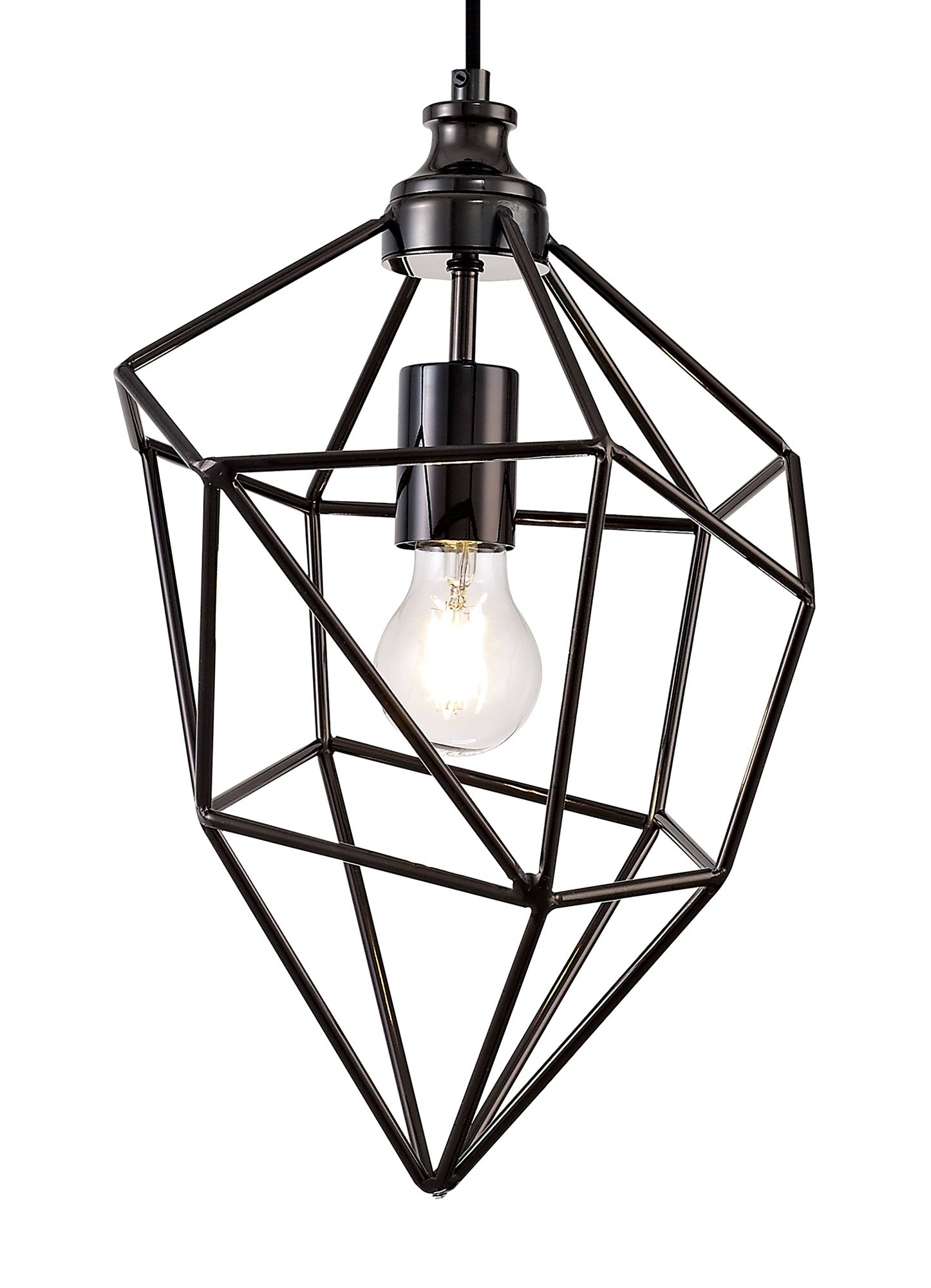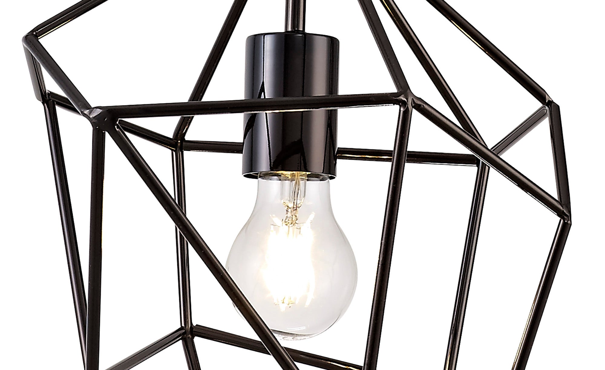 The open areas of the Dobson single pendants form an uninhibited ambient distribution. Numerous different irregular shapes form the metal framework in three high quality colour options producing an overall acorn shape with distinctive narrow angled point. Available in three size these E27 pendants are sure to complement a modern edgy setting.
