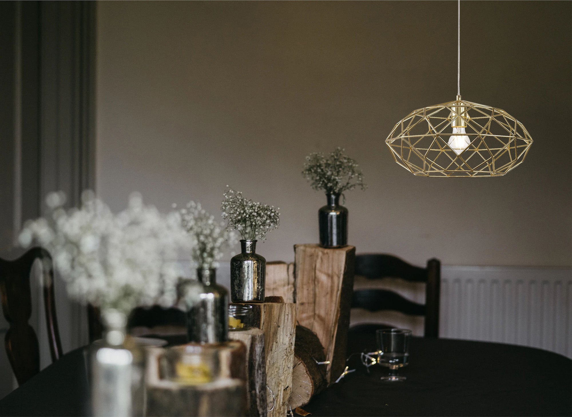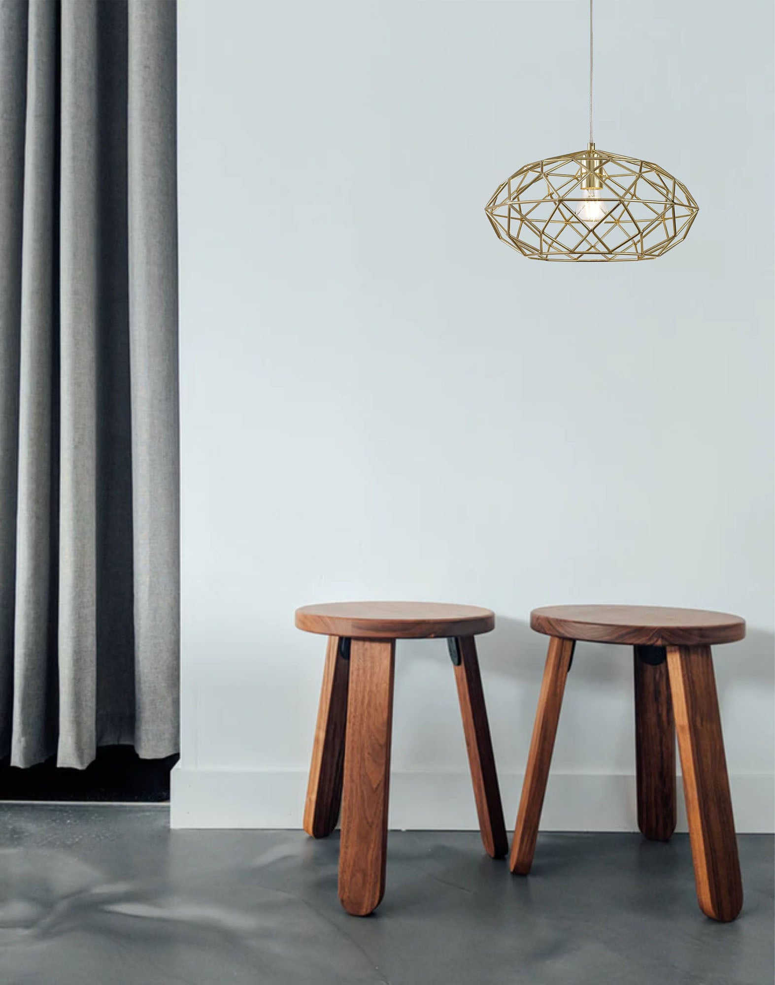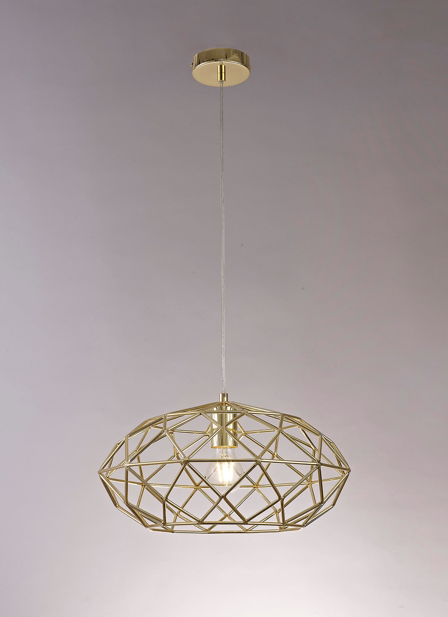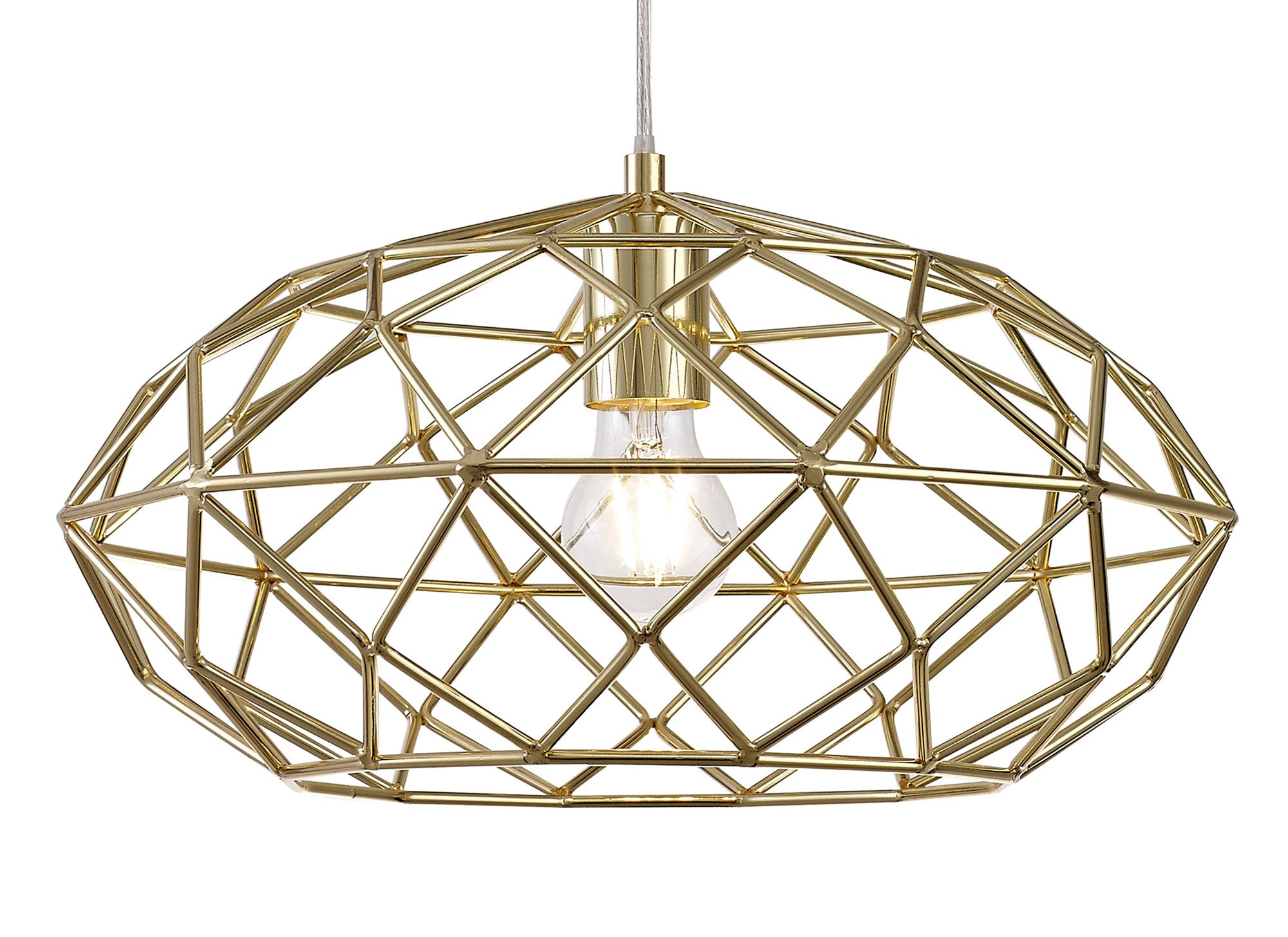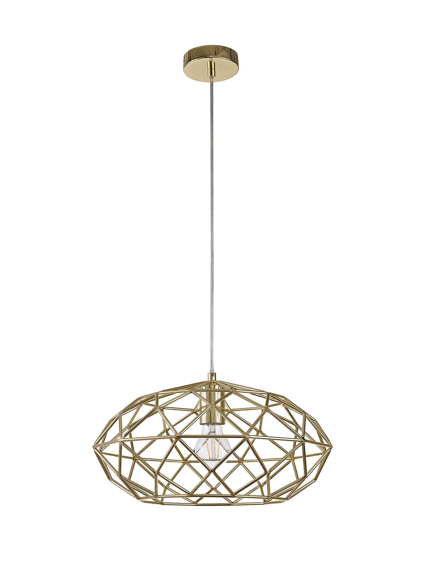 The Trimond collection is comprised of a trio of traditional lights, two pendants and one flush ceiling, each with their own unique shape. A body of open triangular and diamond shapes are tiled together to create a prismatic optical illusion around the singular E27 lampholders. A traditional polished brass finish ensures Trimond can be used to enhance the character and eye-catching design of a rustic of contemporary setting with optimum illumination.