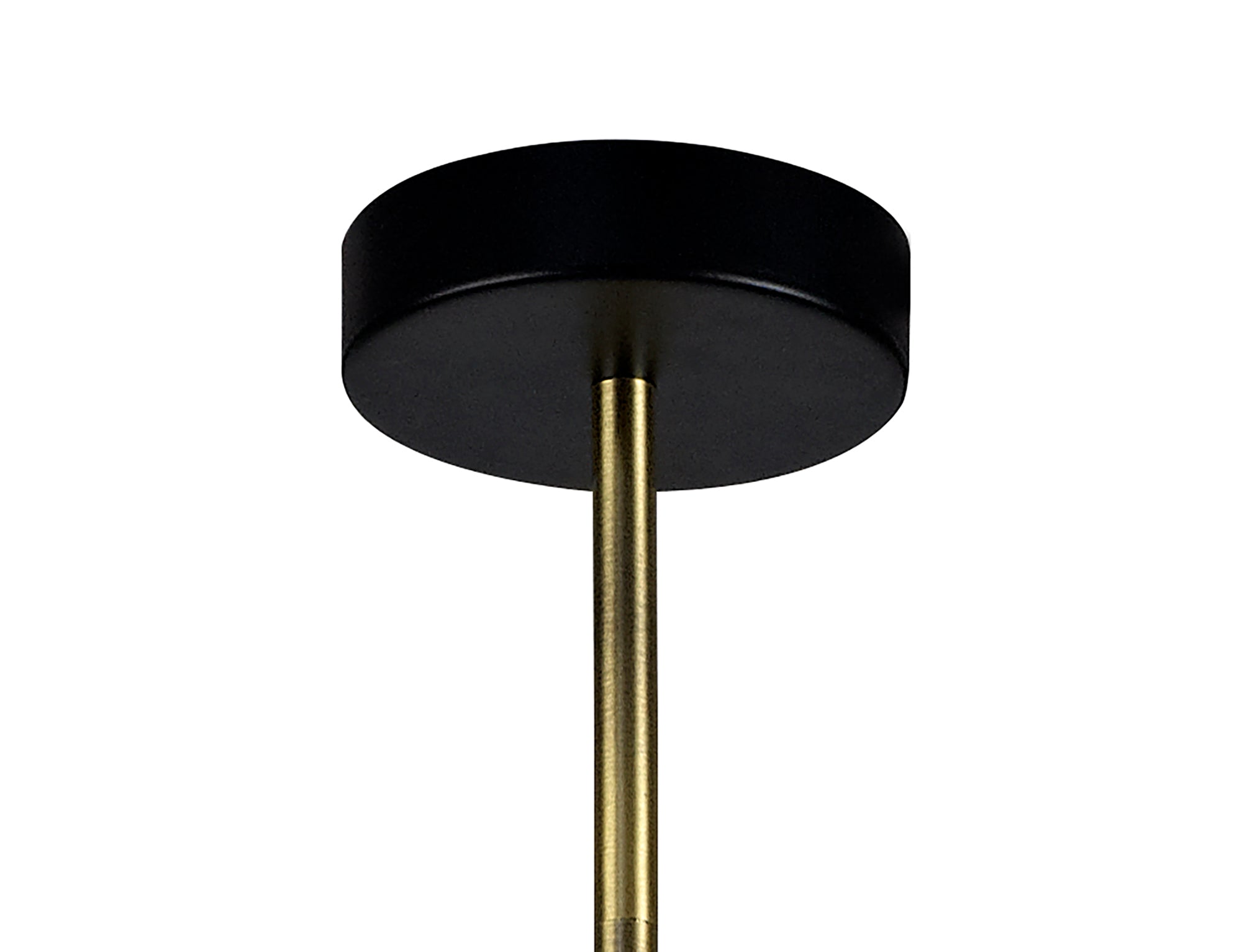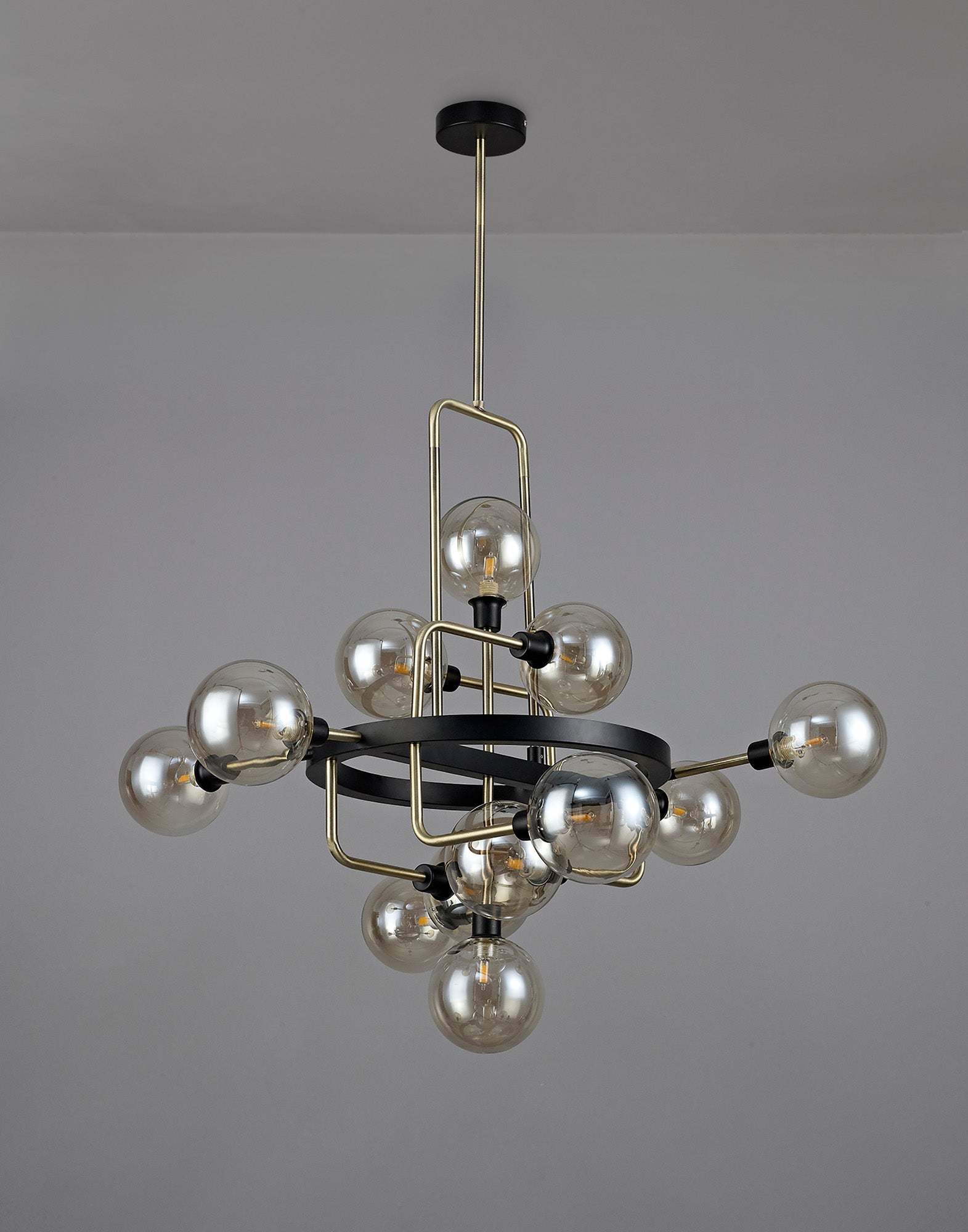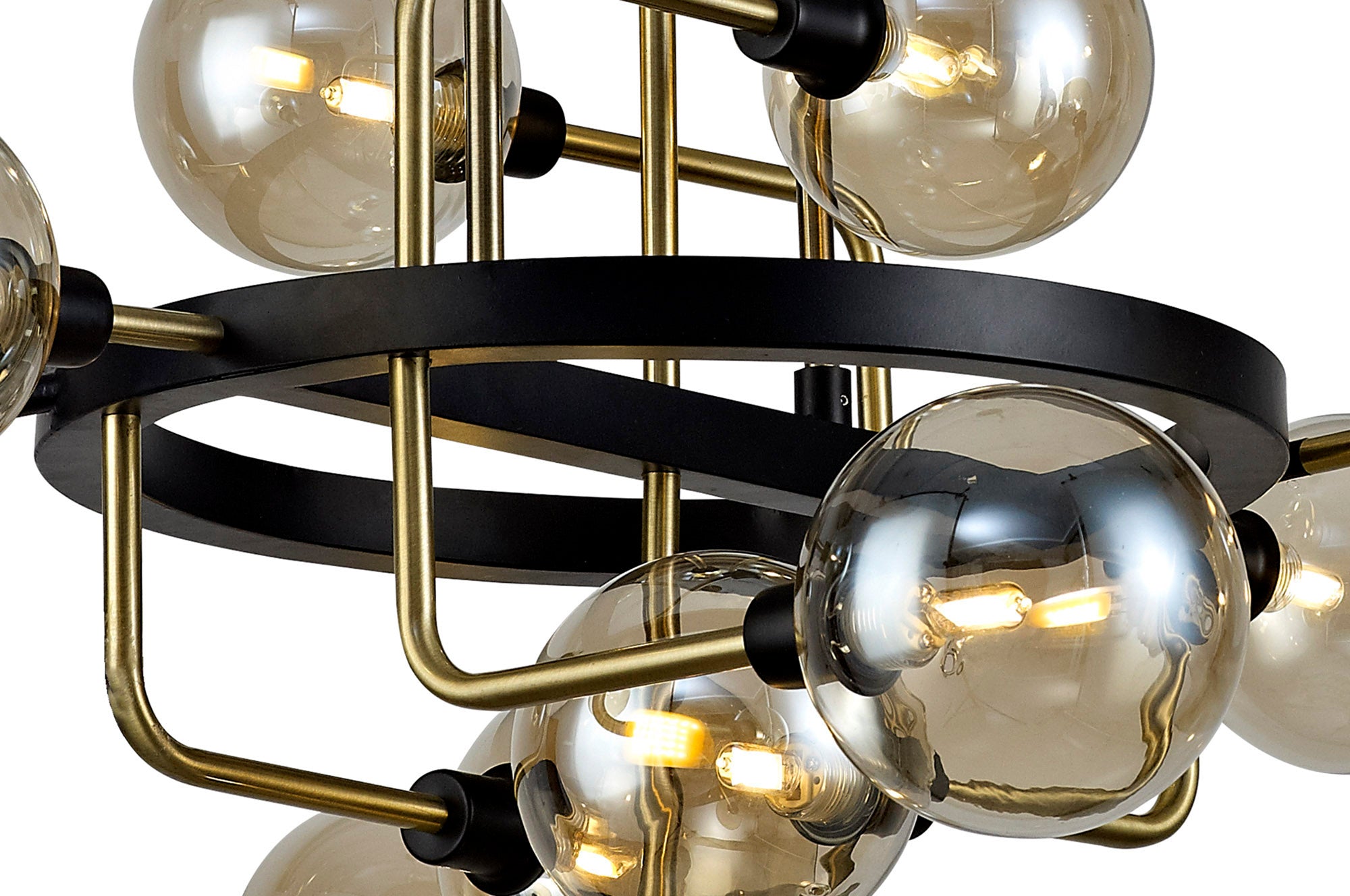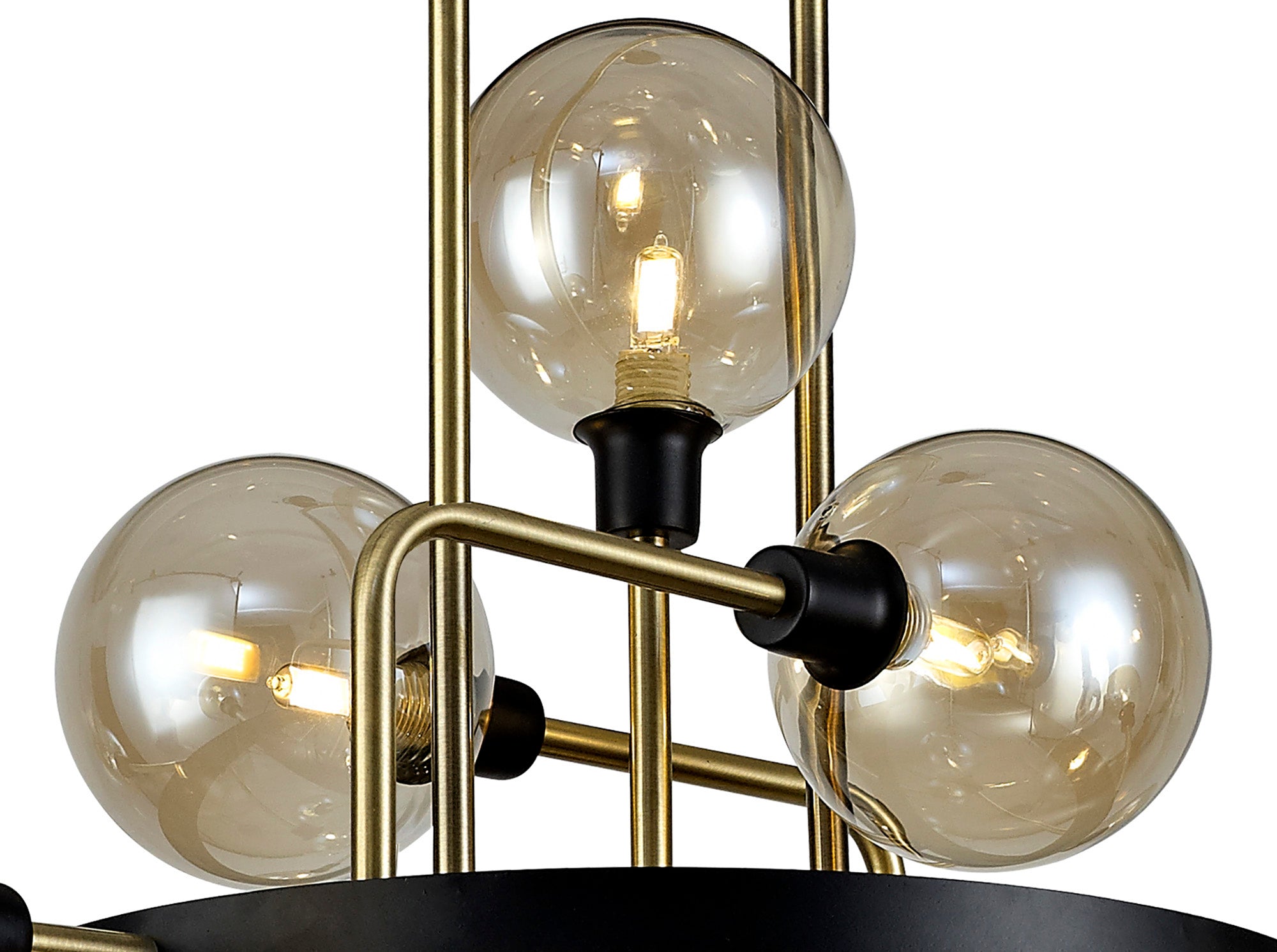 Denon Fixed Pendant, 12 Light G9, Matt Black/Antique Brass/Cognac Glass