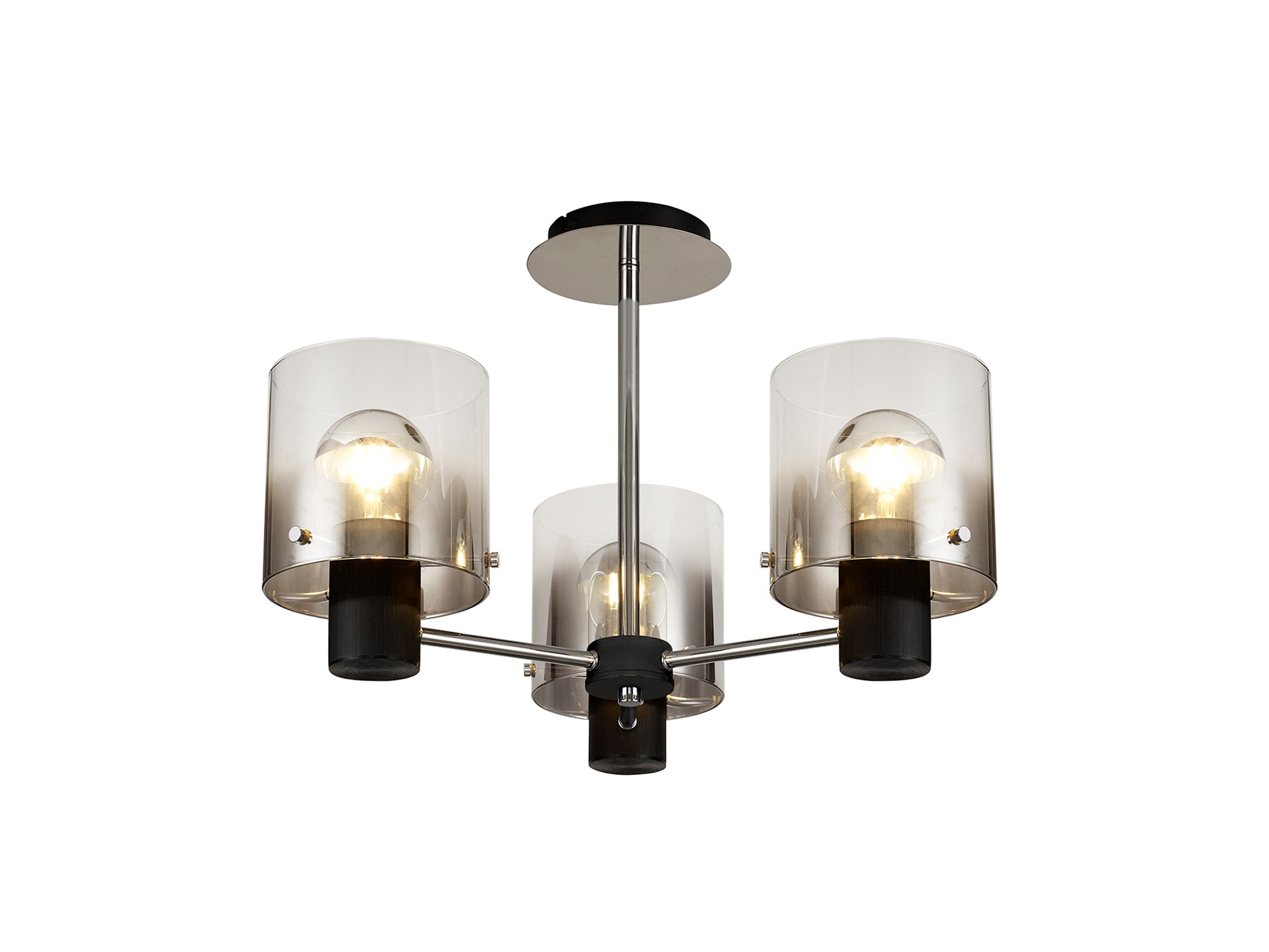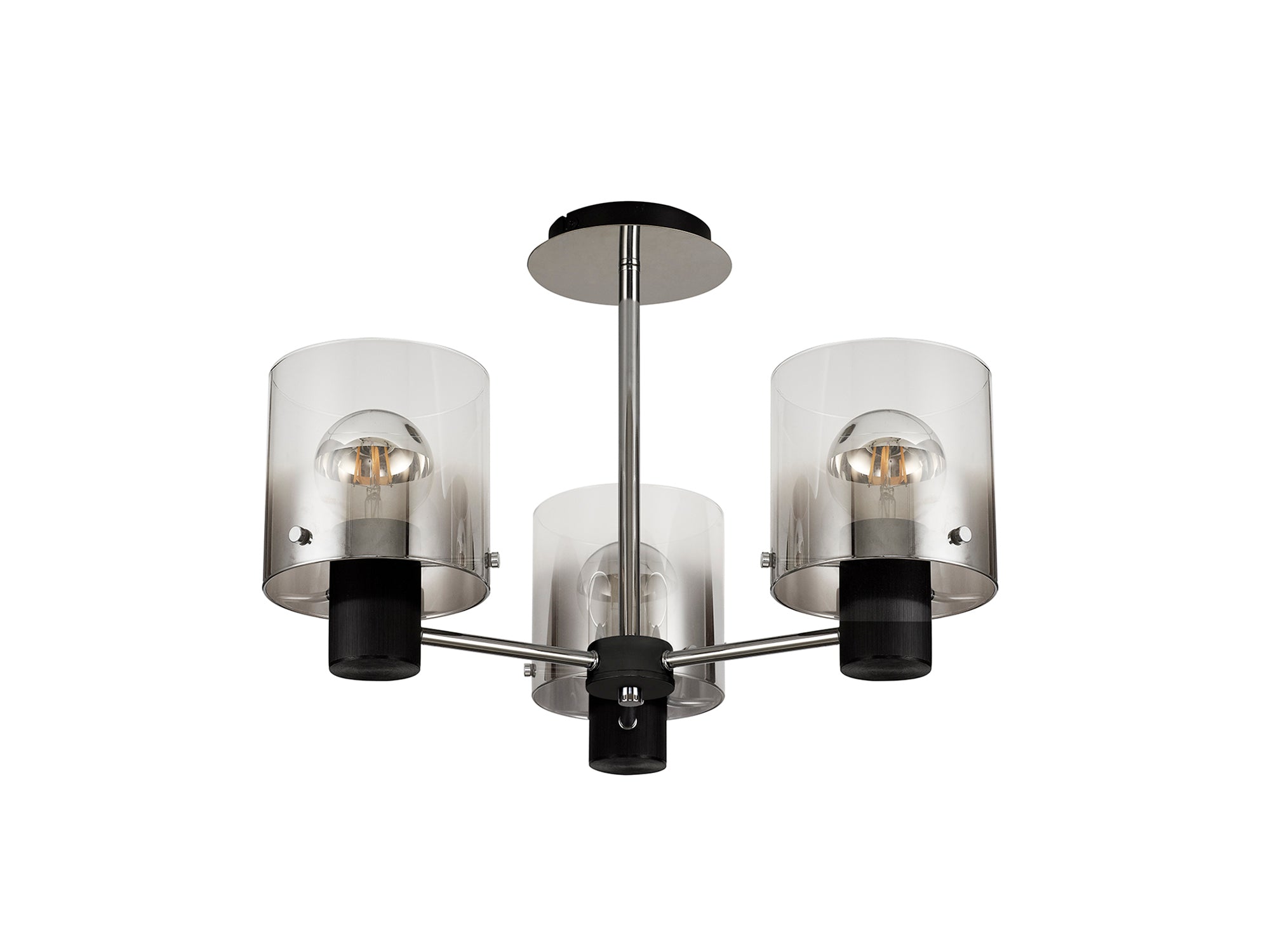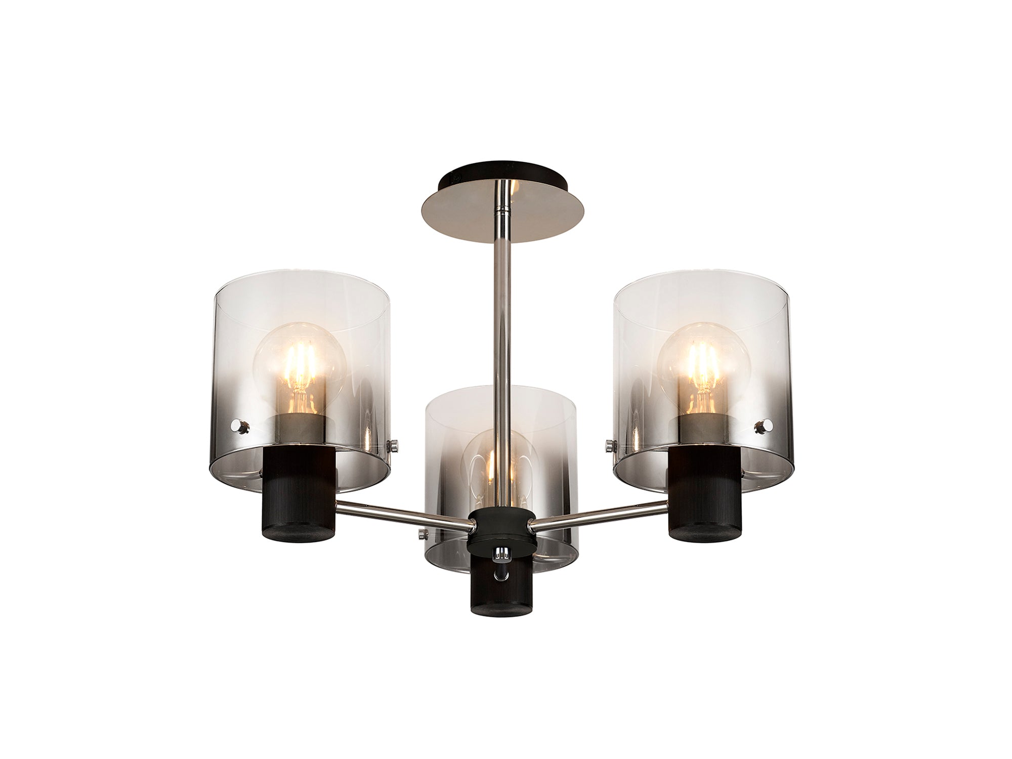 Lois 3 Light Black & Chrome Smoked Glass Semi Flush Pendant Light LO184013