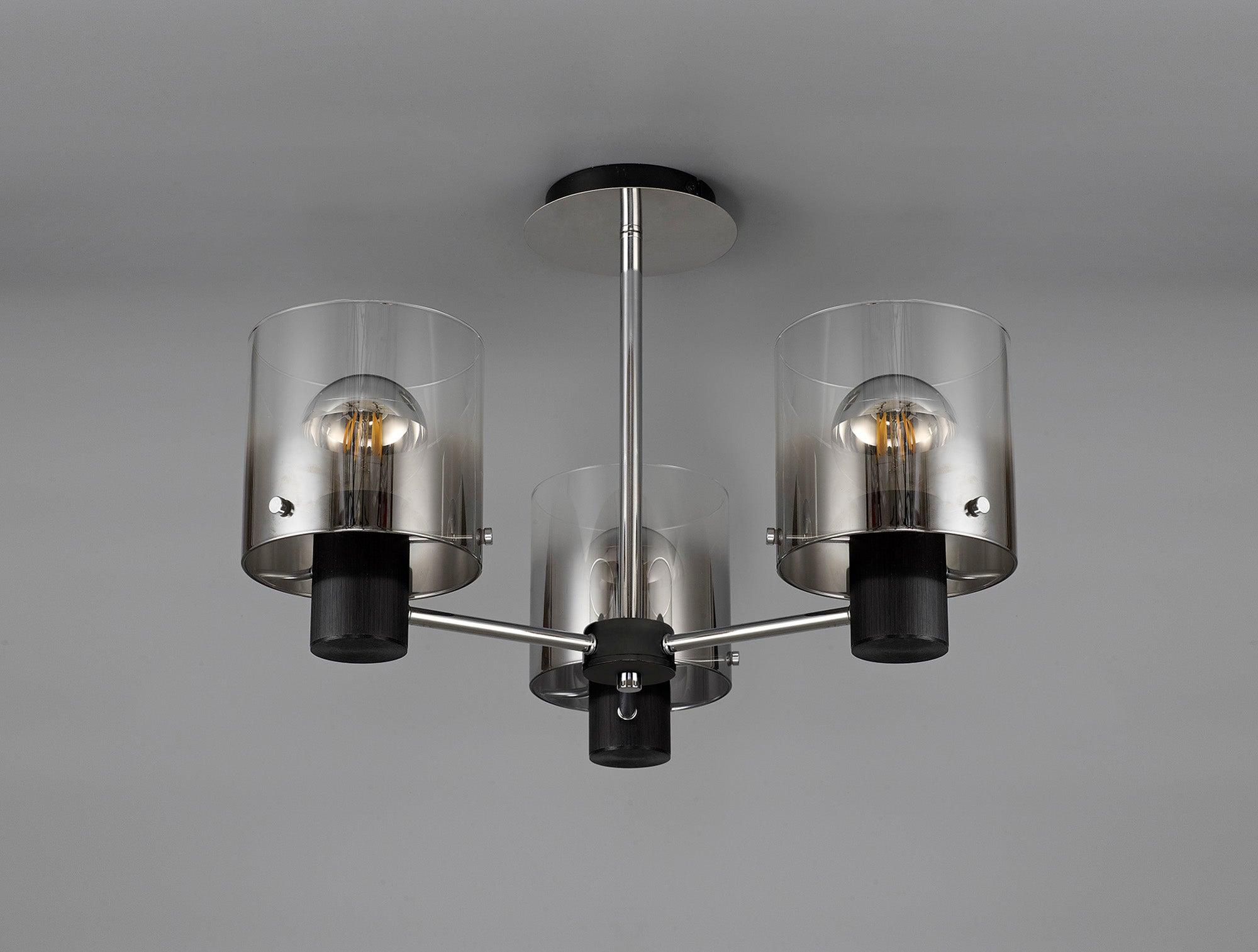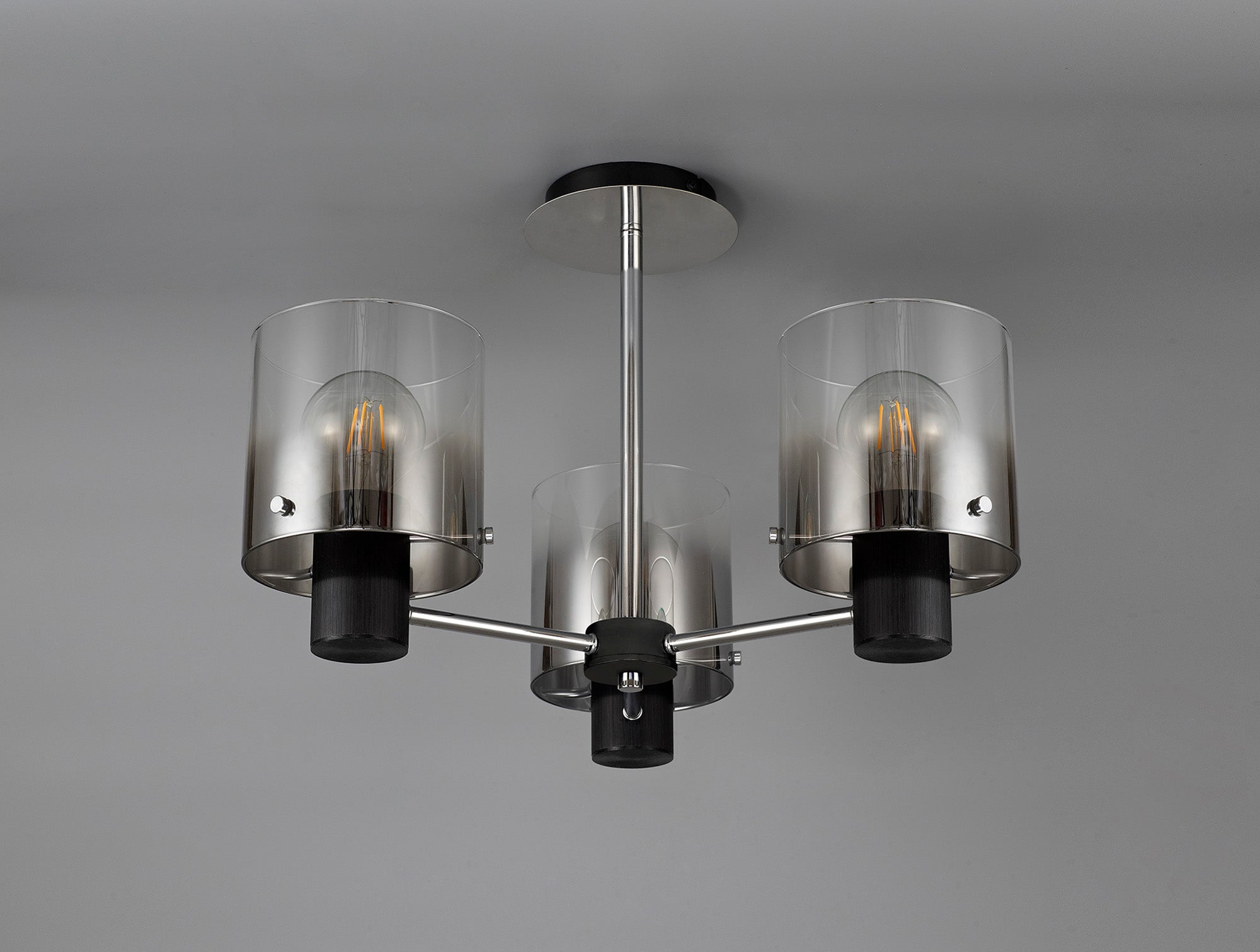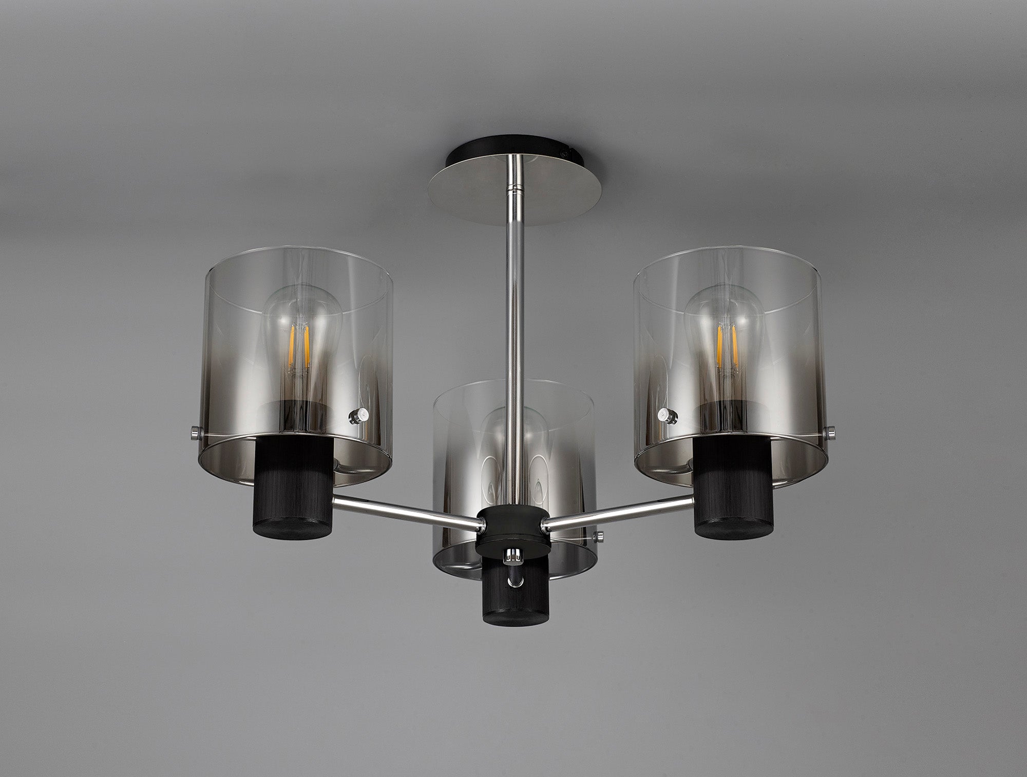 Lois 3 Light Black & Chrome Smoked Glass Semi Flush Pendant Light LO184013