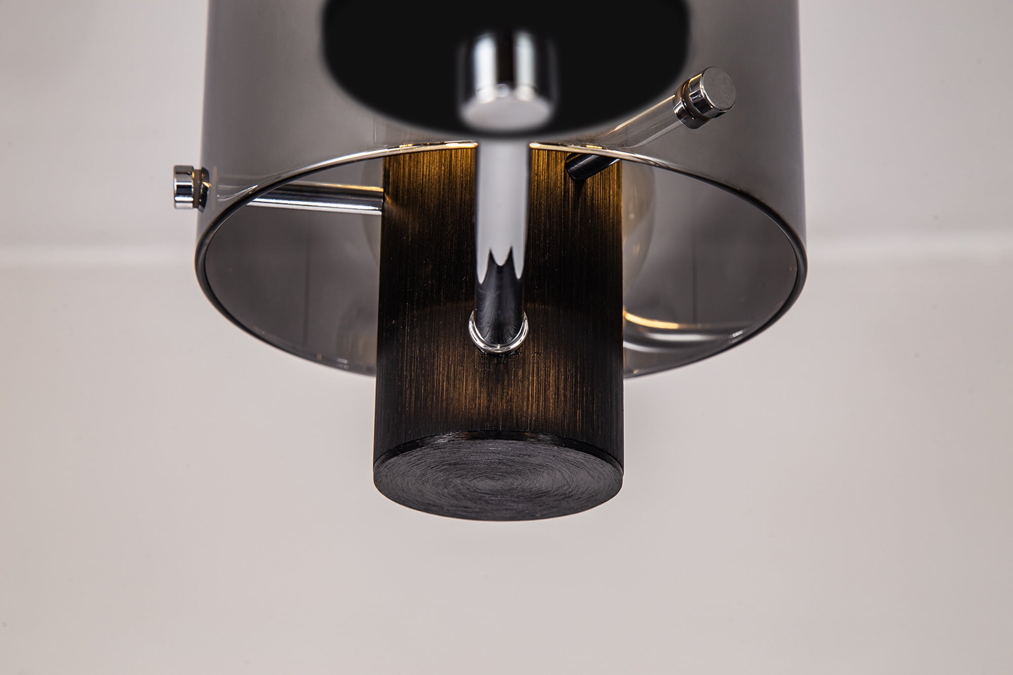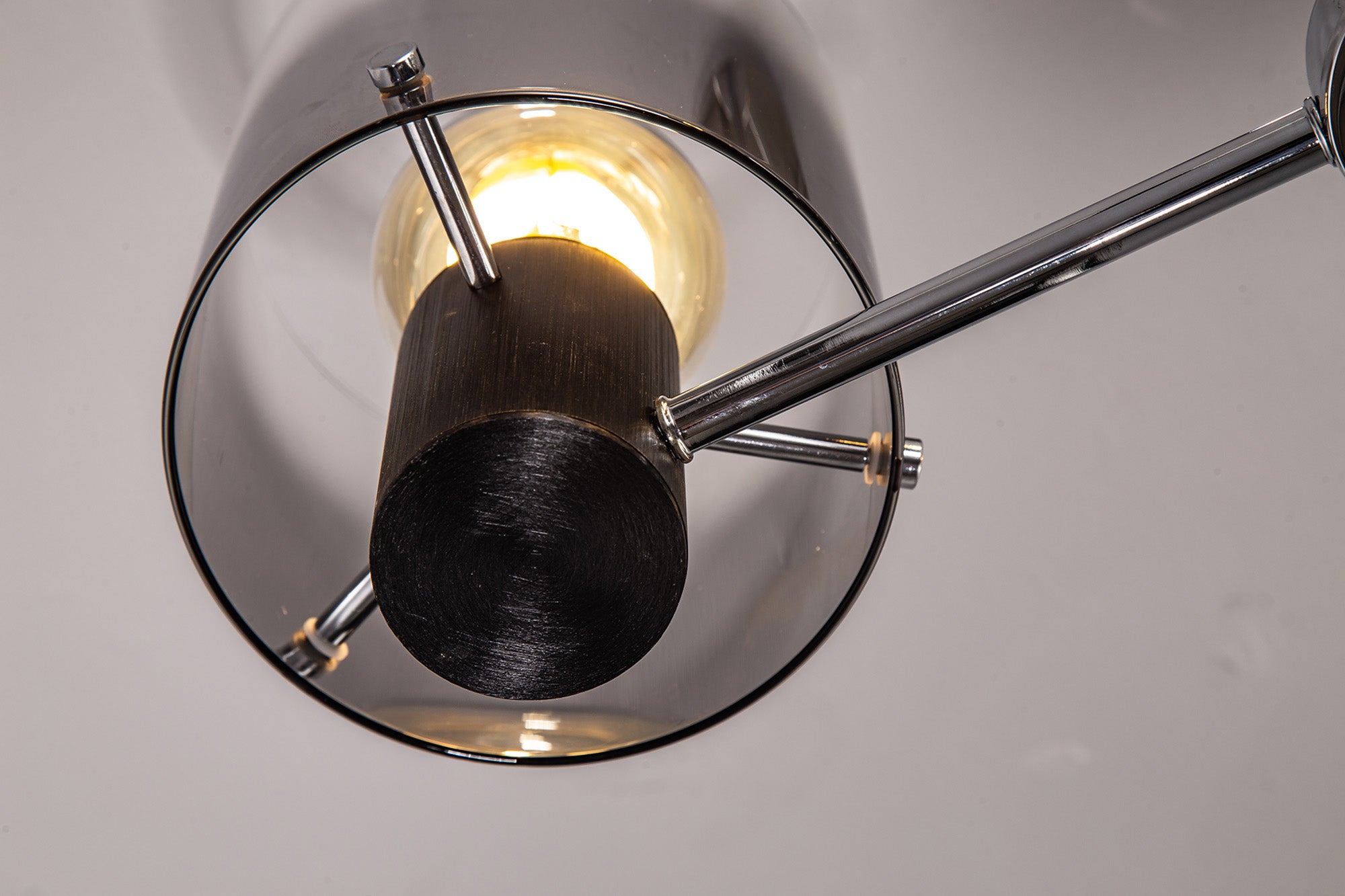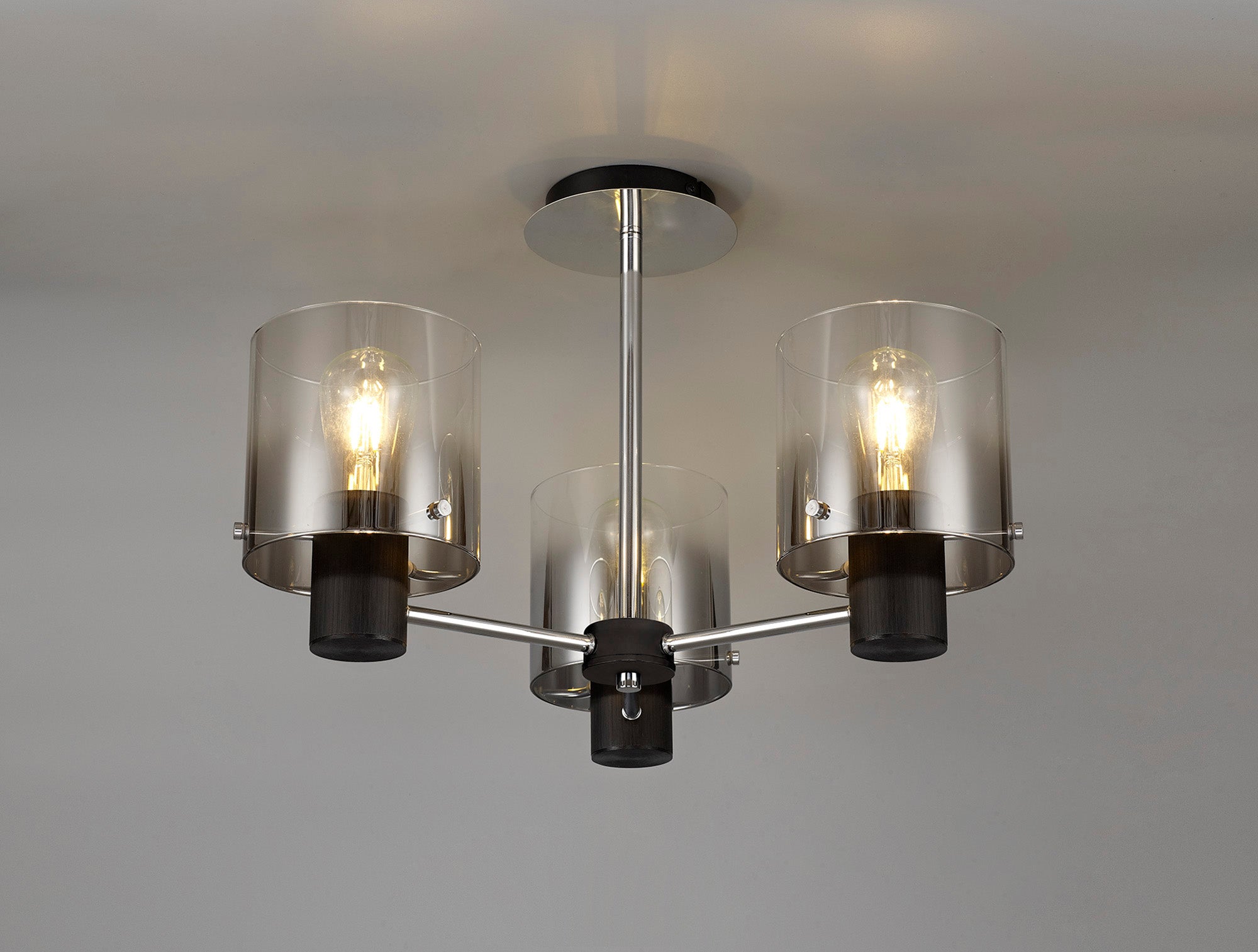 The LO184013 Semi Flush Pendant Light from Lois offers a stylish combination of black and chrome with smoked glass for a refined look. This light has three bulbs for optimal illumination.