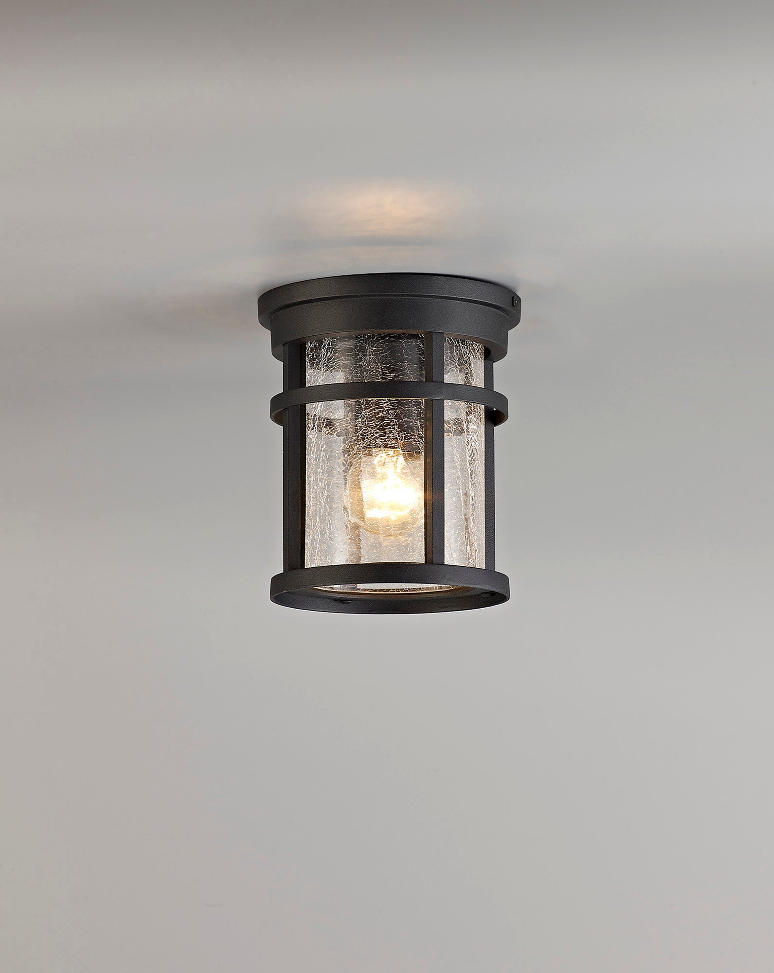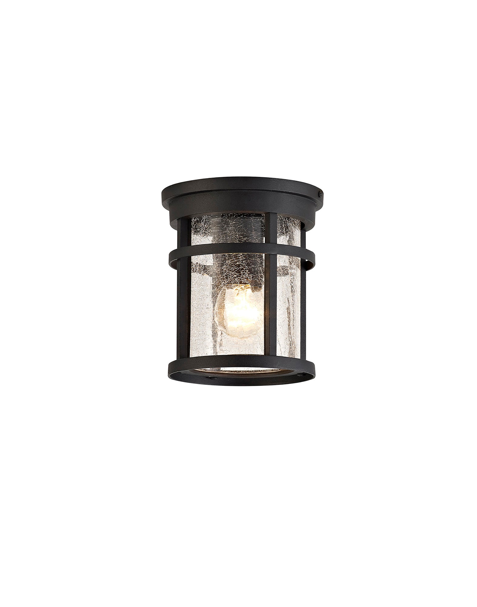 Elliot Outdoor Ceiling, 1 x E27, Black/Clear Crackled Glass, IP54, 2yrs Warranty LO173193