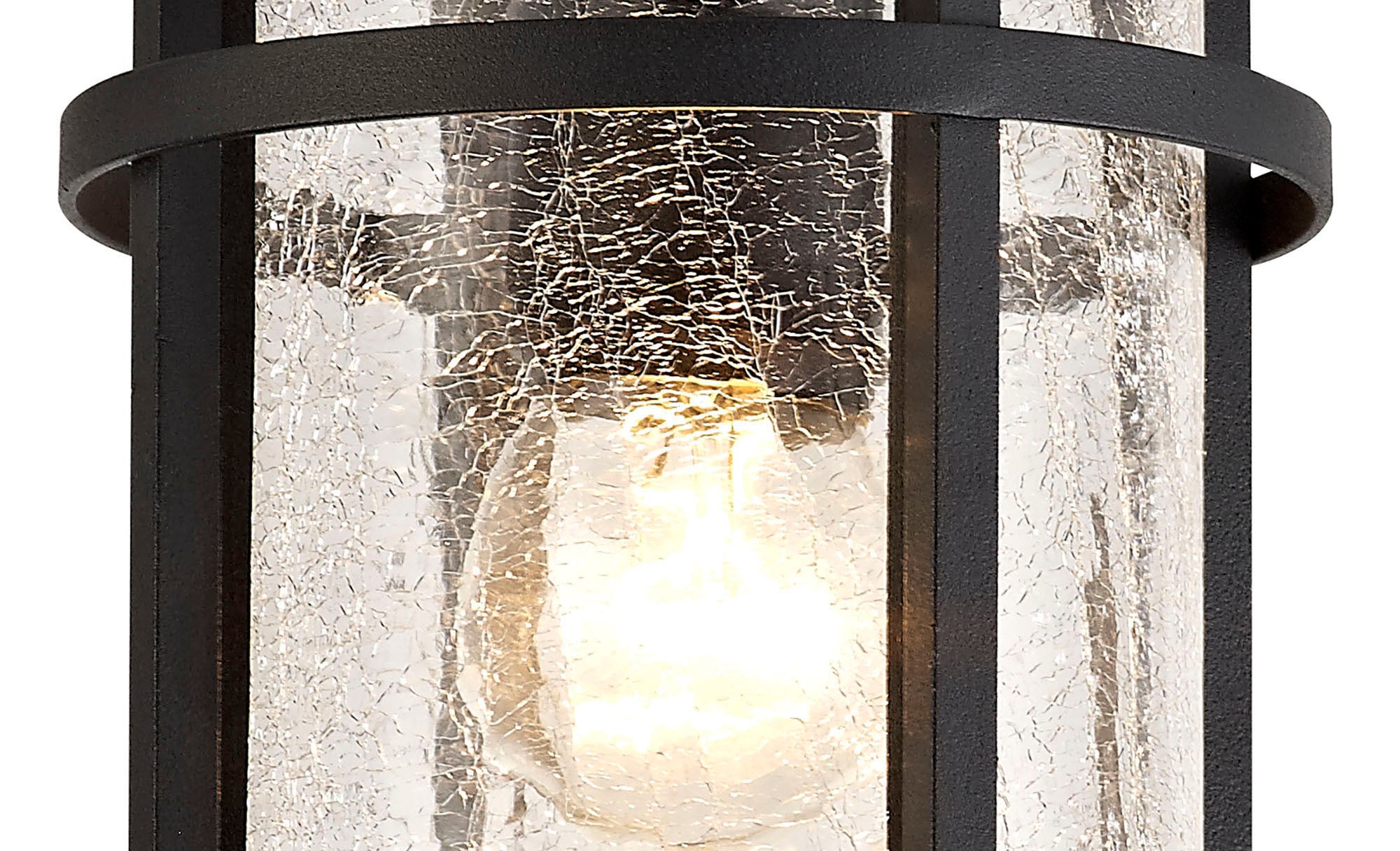 The most captivating feature of this IP54 outdoor collection is the crackled effect of the clear glass embedded into the black iron framework. This distressed feature offers a unique filtration of light from the E27 lampholder resulting in an attractive visual. The replicated lantern concept is seamlessly offset against the rustic glass to amplify an antique traditional presence ideal for gurdens and outdoor seating areas.