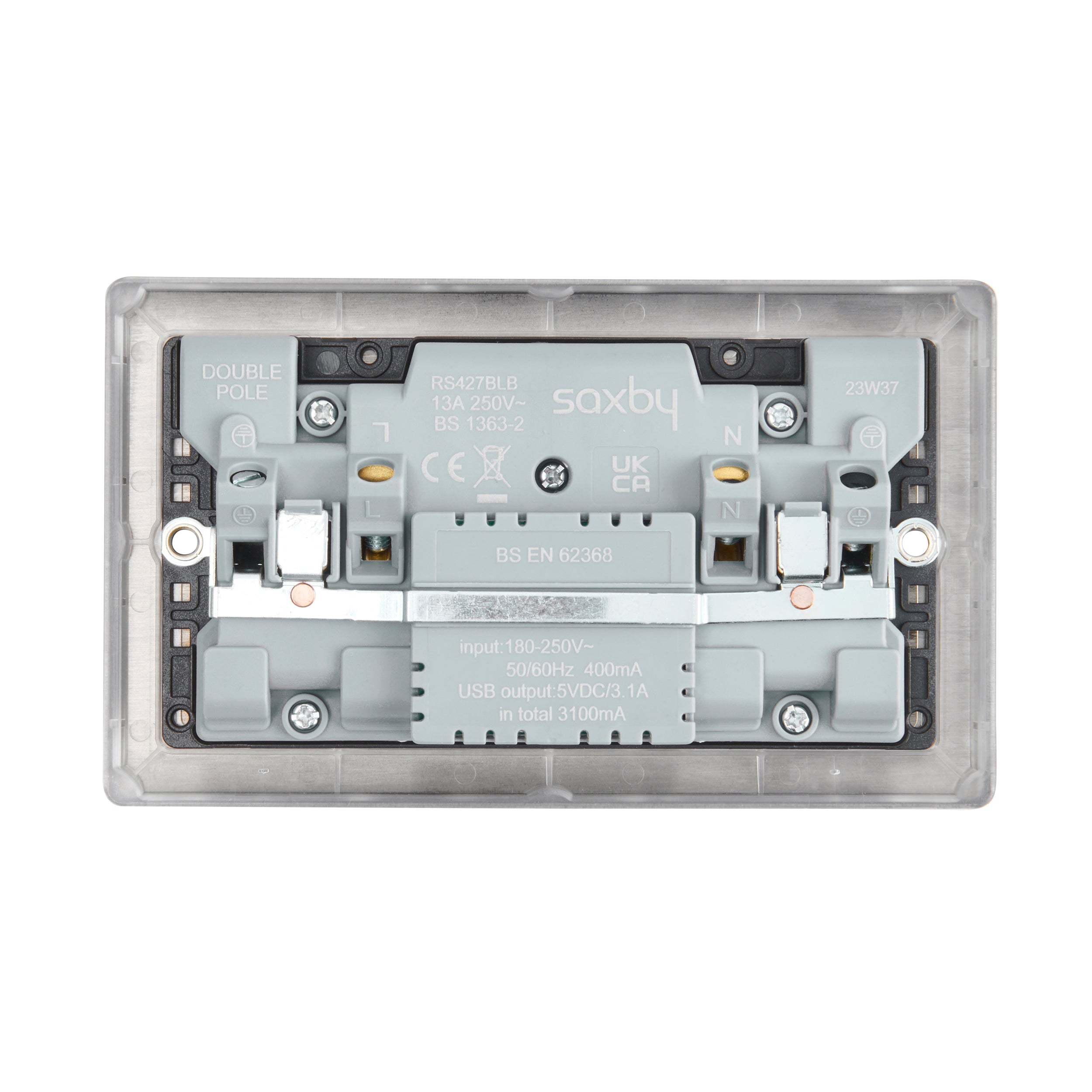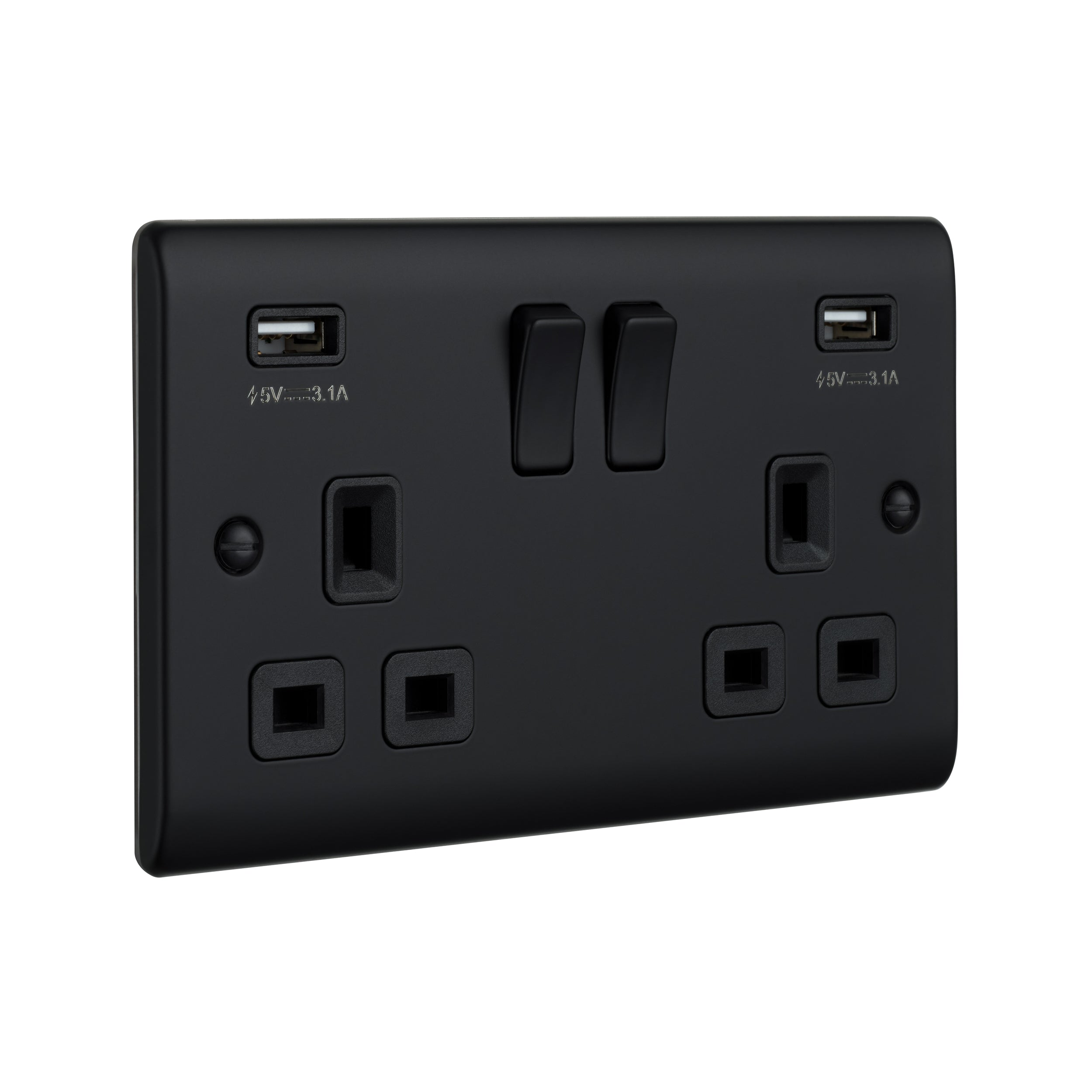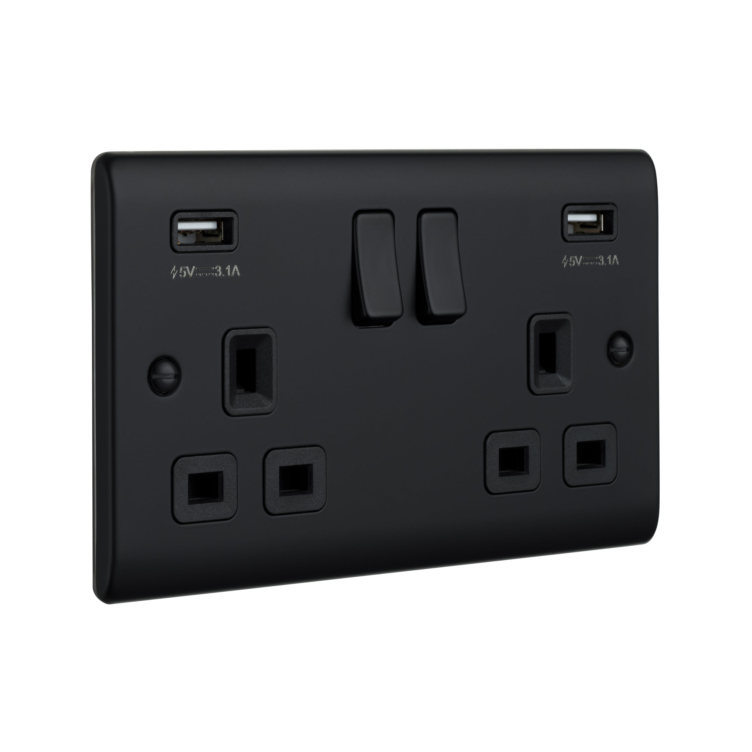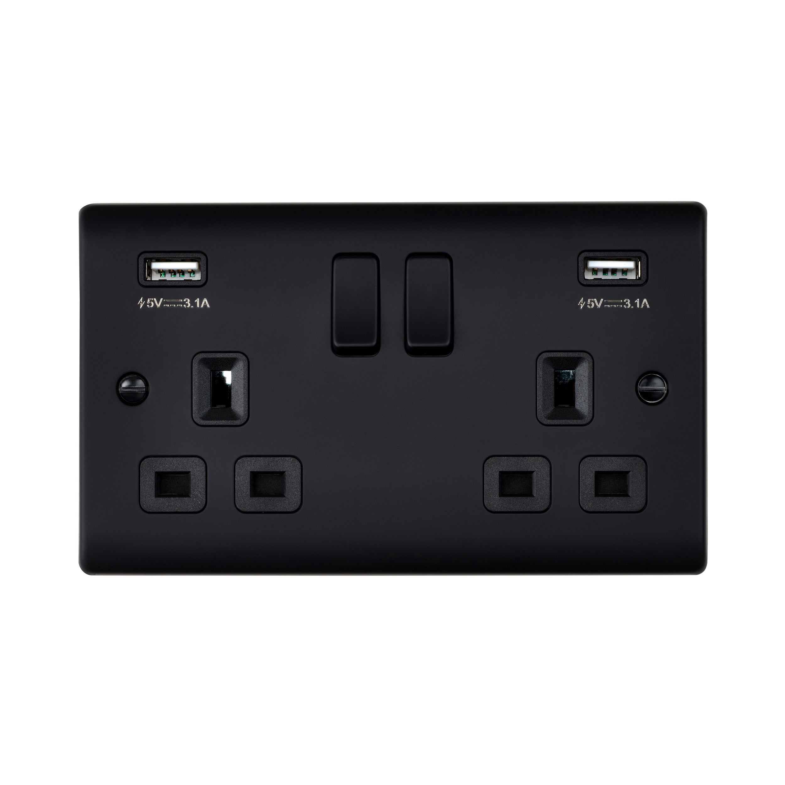 Saxby Raised Screwed 13A 2G DP Switched Socket with twin 5V USB - Matt Black With Black Insert RS423BLB