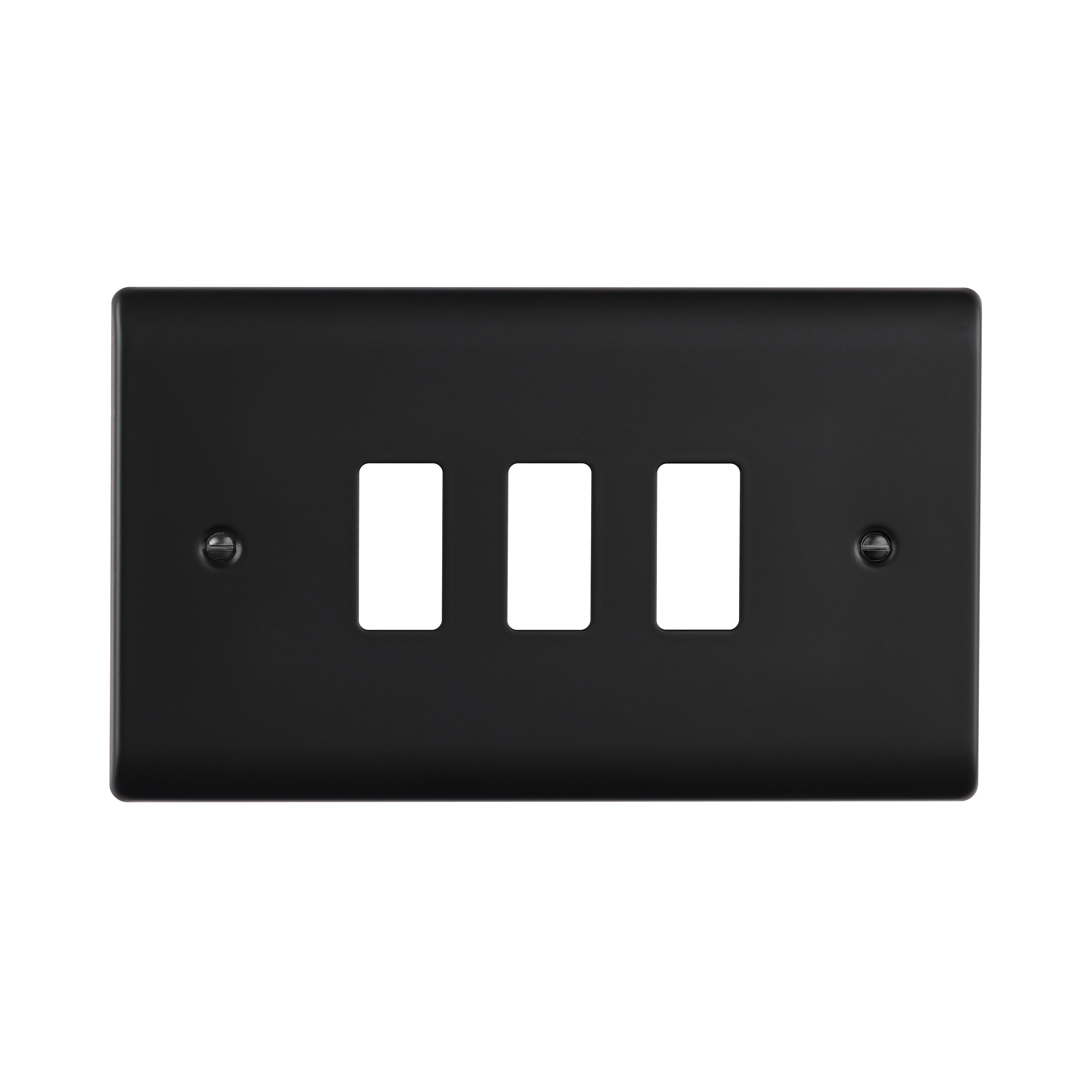 Saxby Raised Screwed 3G Grid Front Plate - Matt Black RSGFP3BL