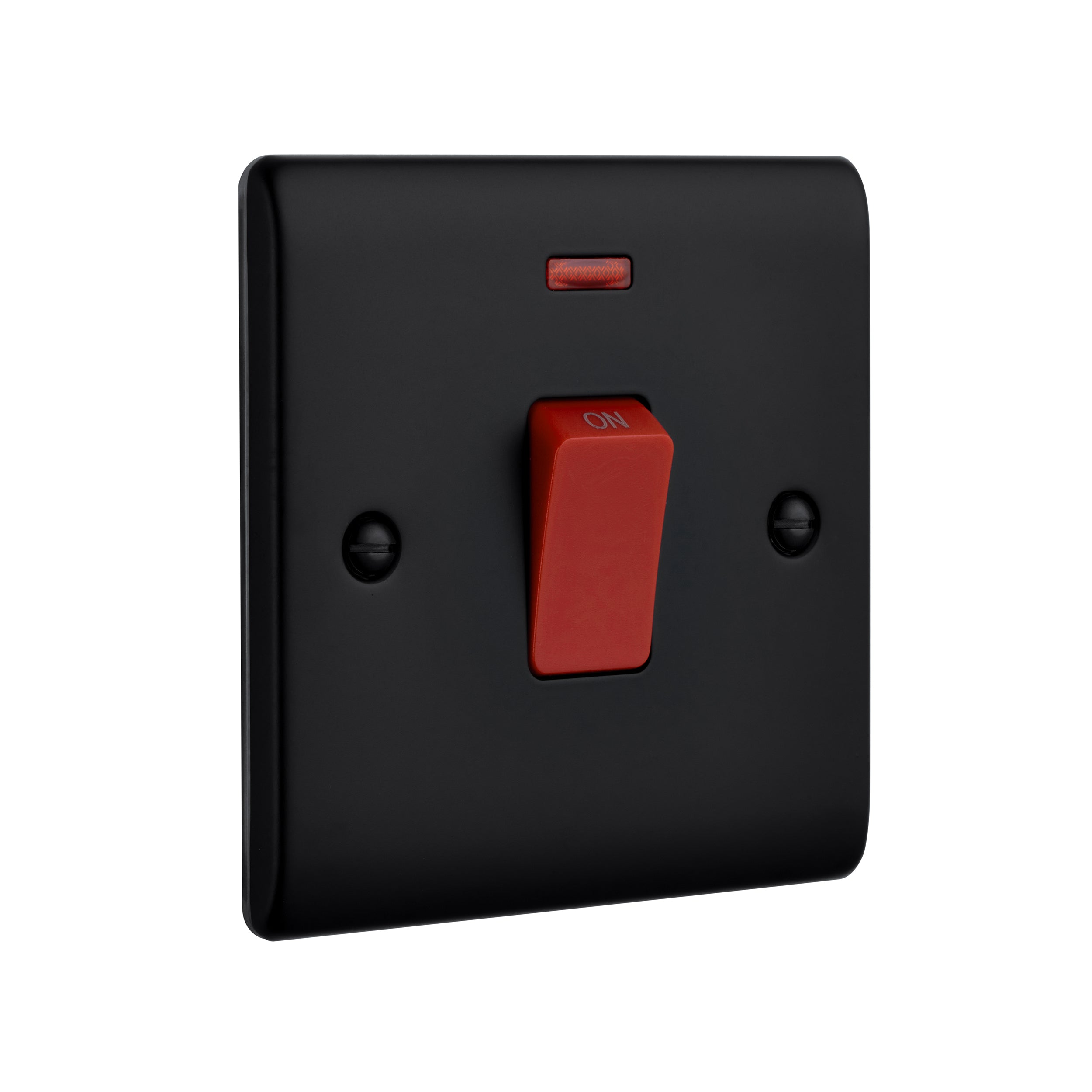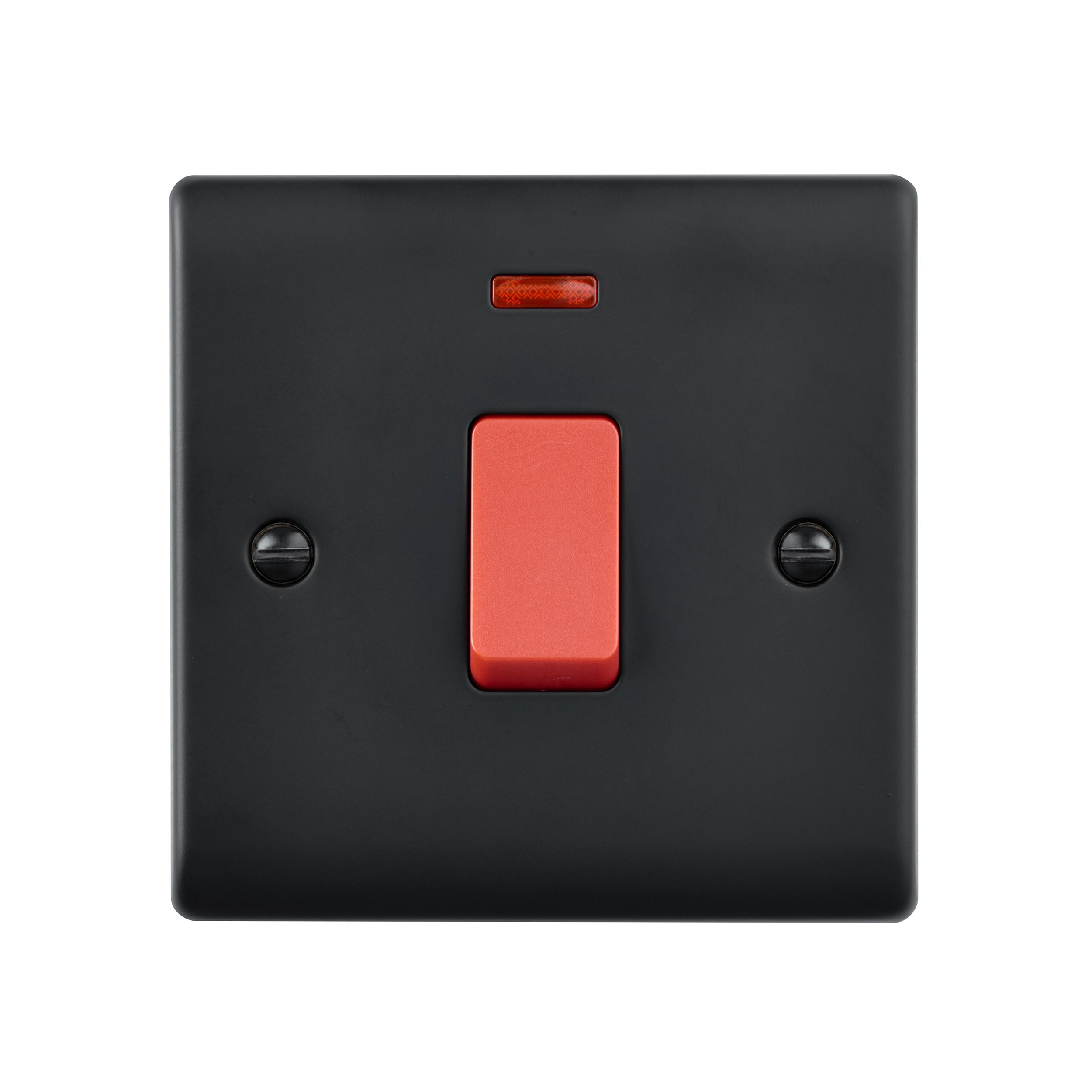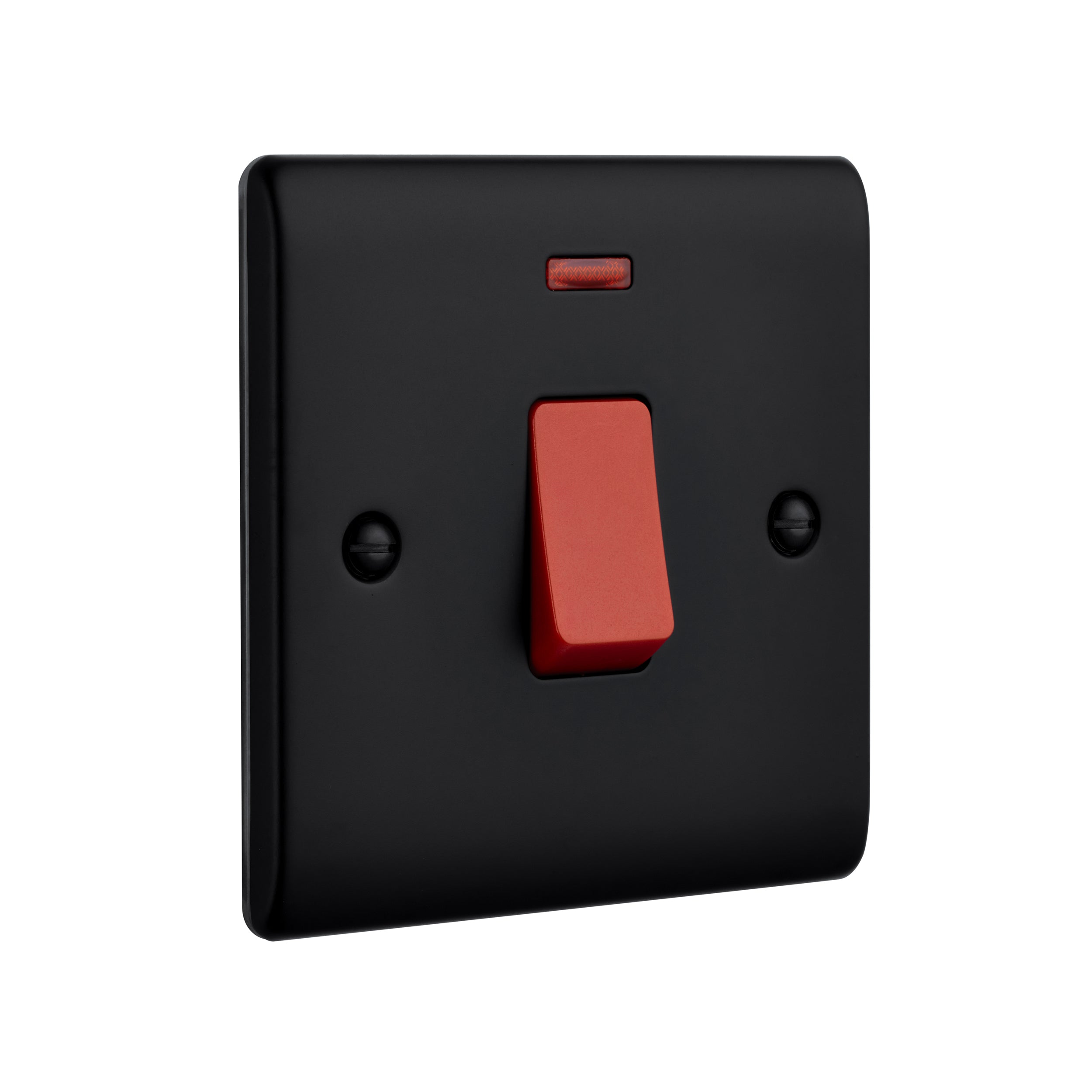 Saxby Raised Screwed 45A 1G DP Switch with Neon - Matt Black RS553BL