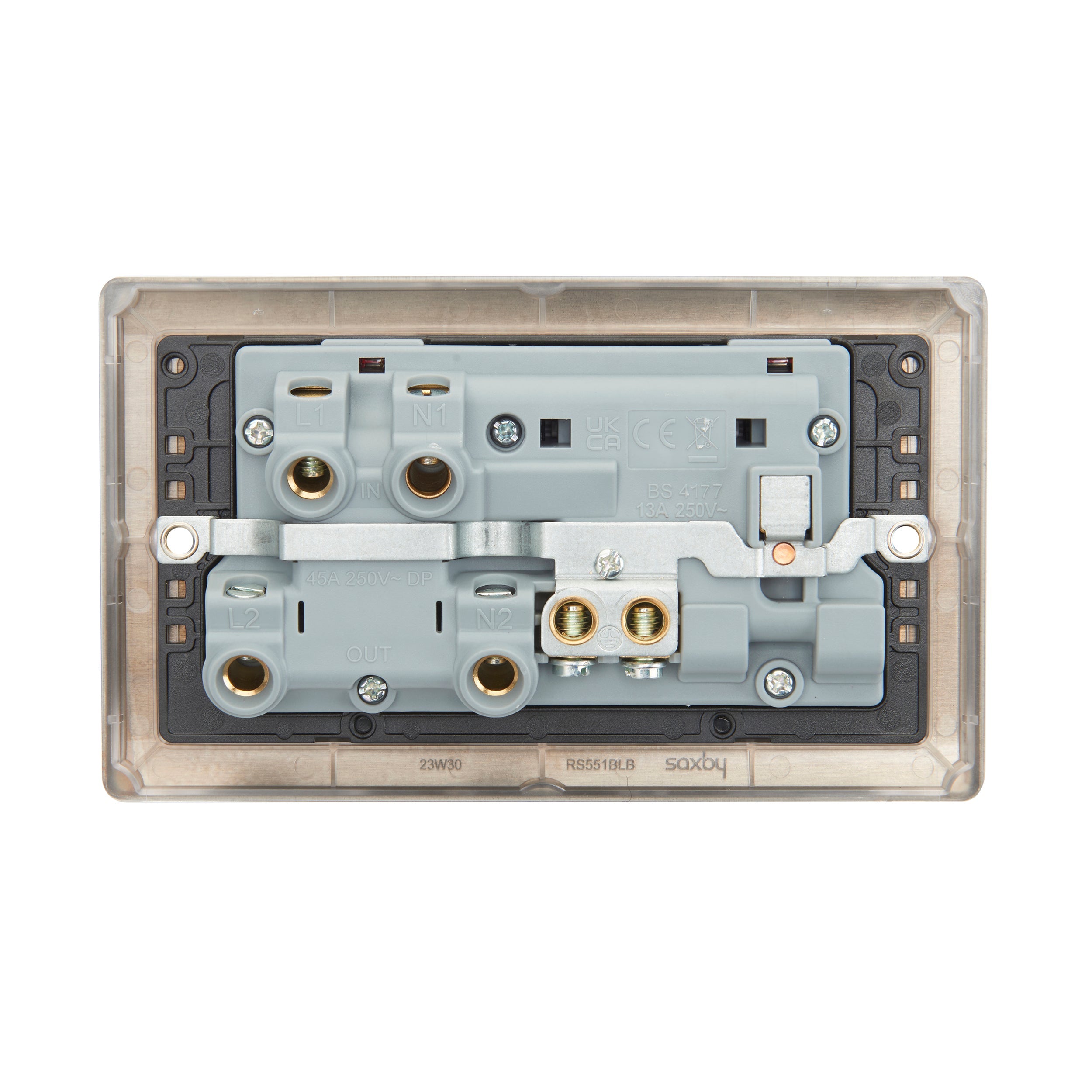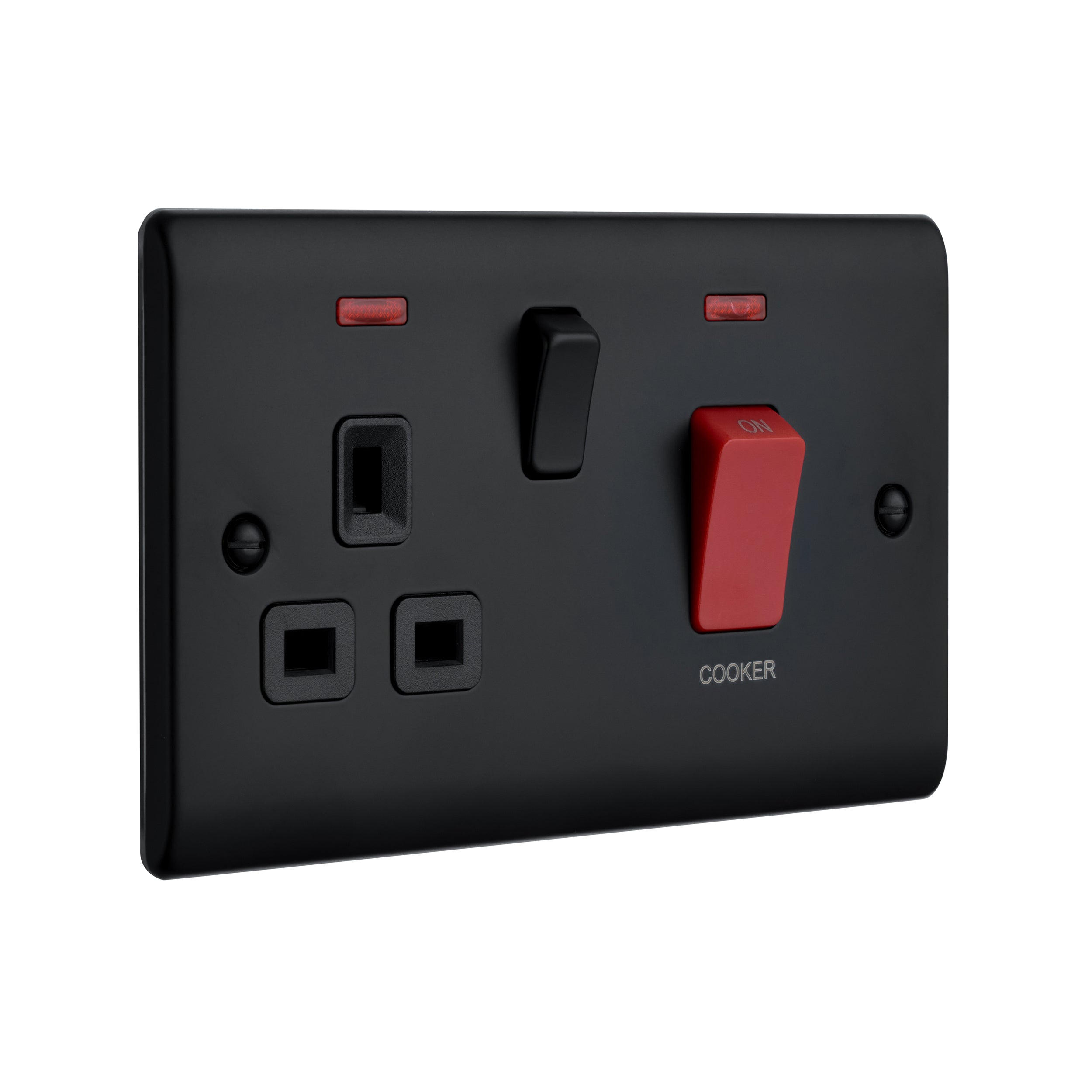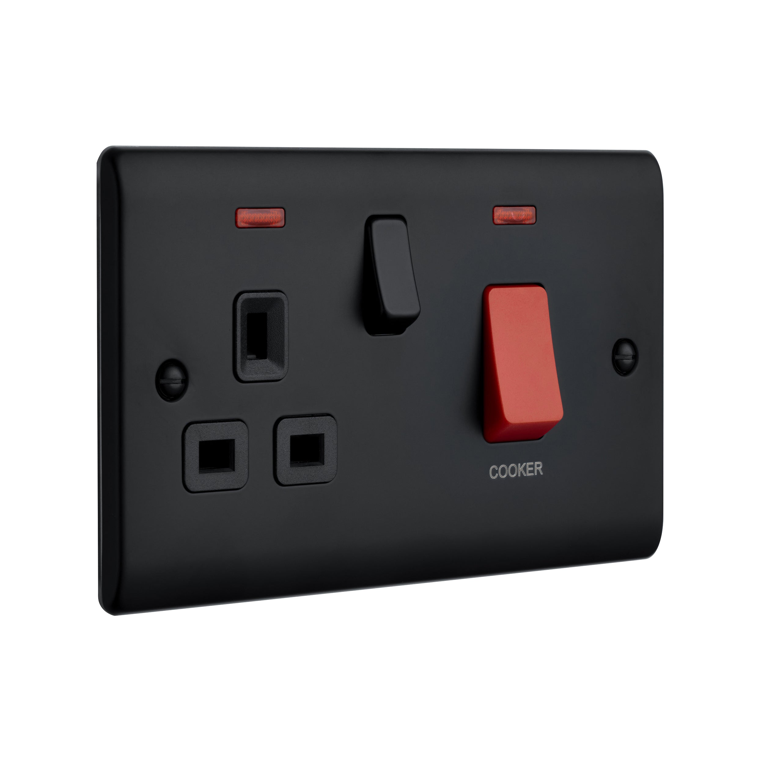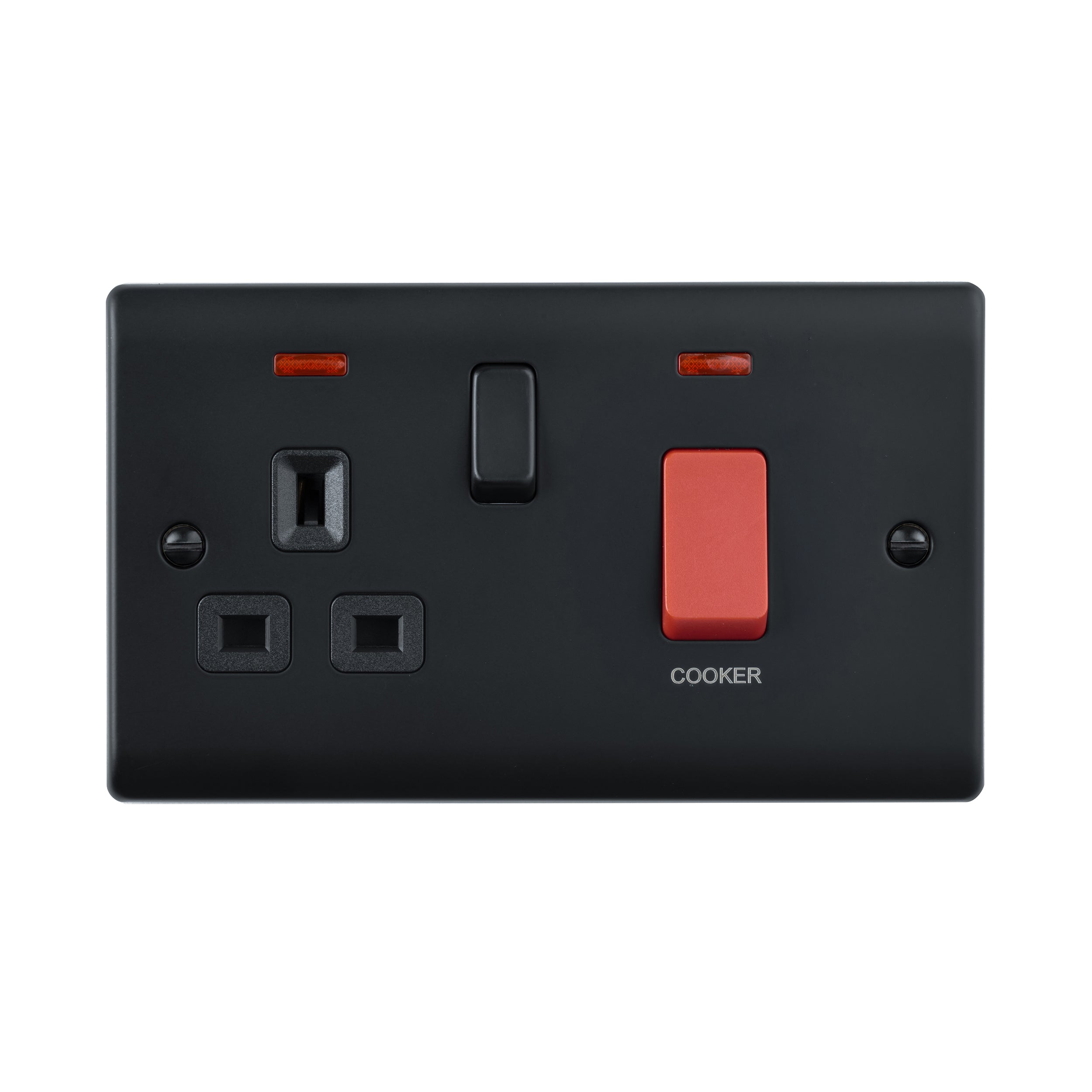 Saxby Raised Screwed 45A DP Cooker Switch with 13A Socket with Neon - Matt Black With Black Insert RS551BLB