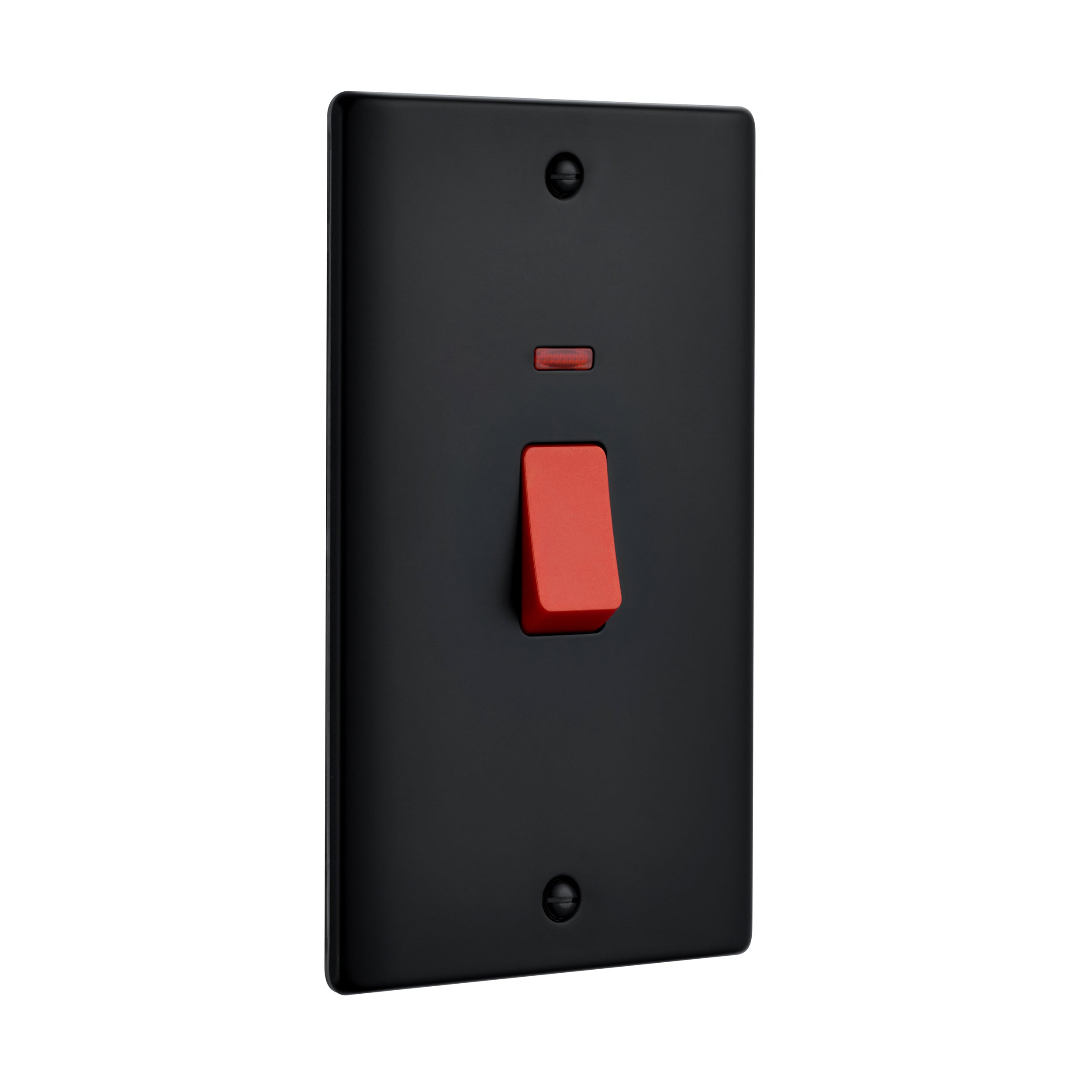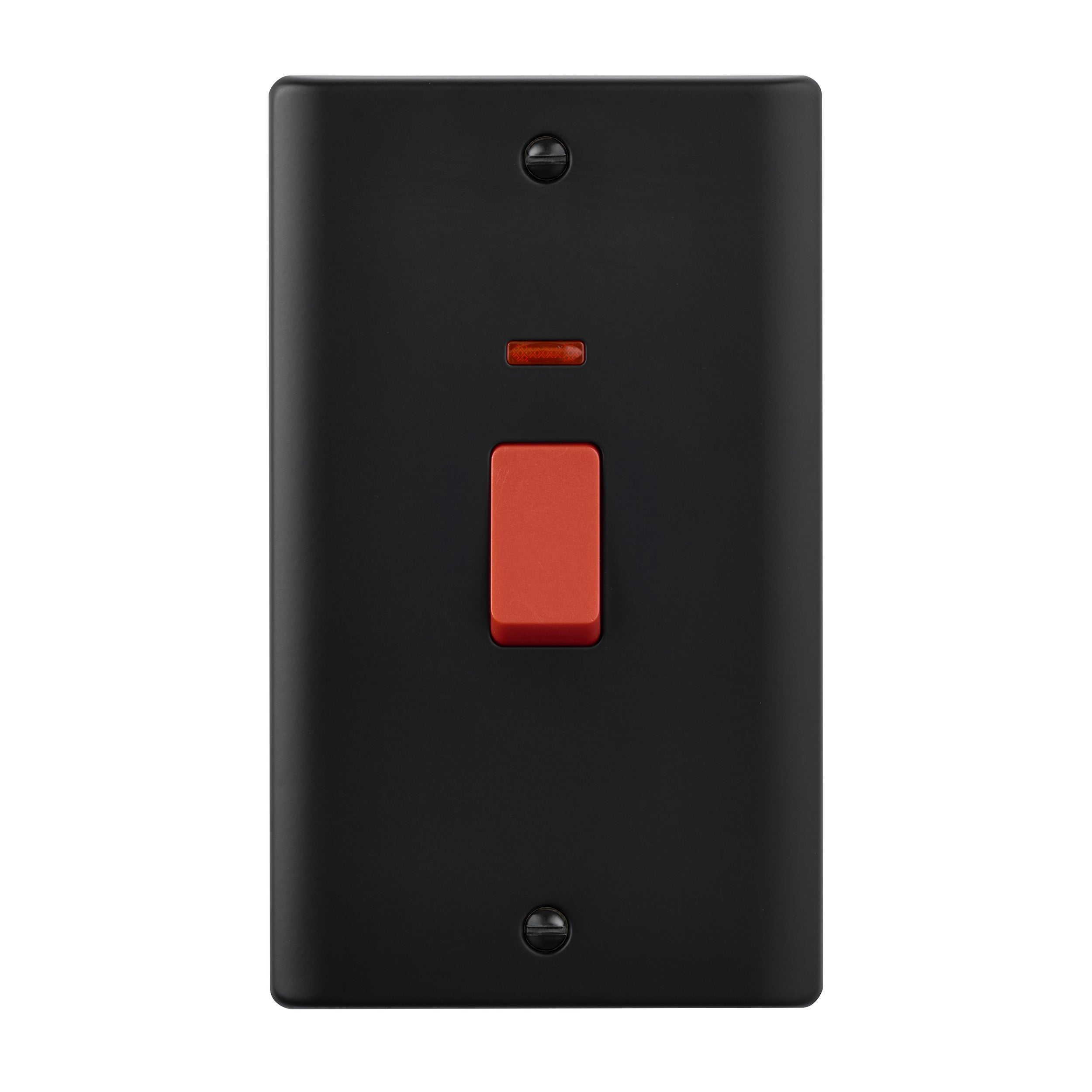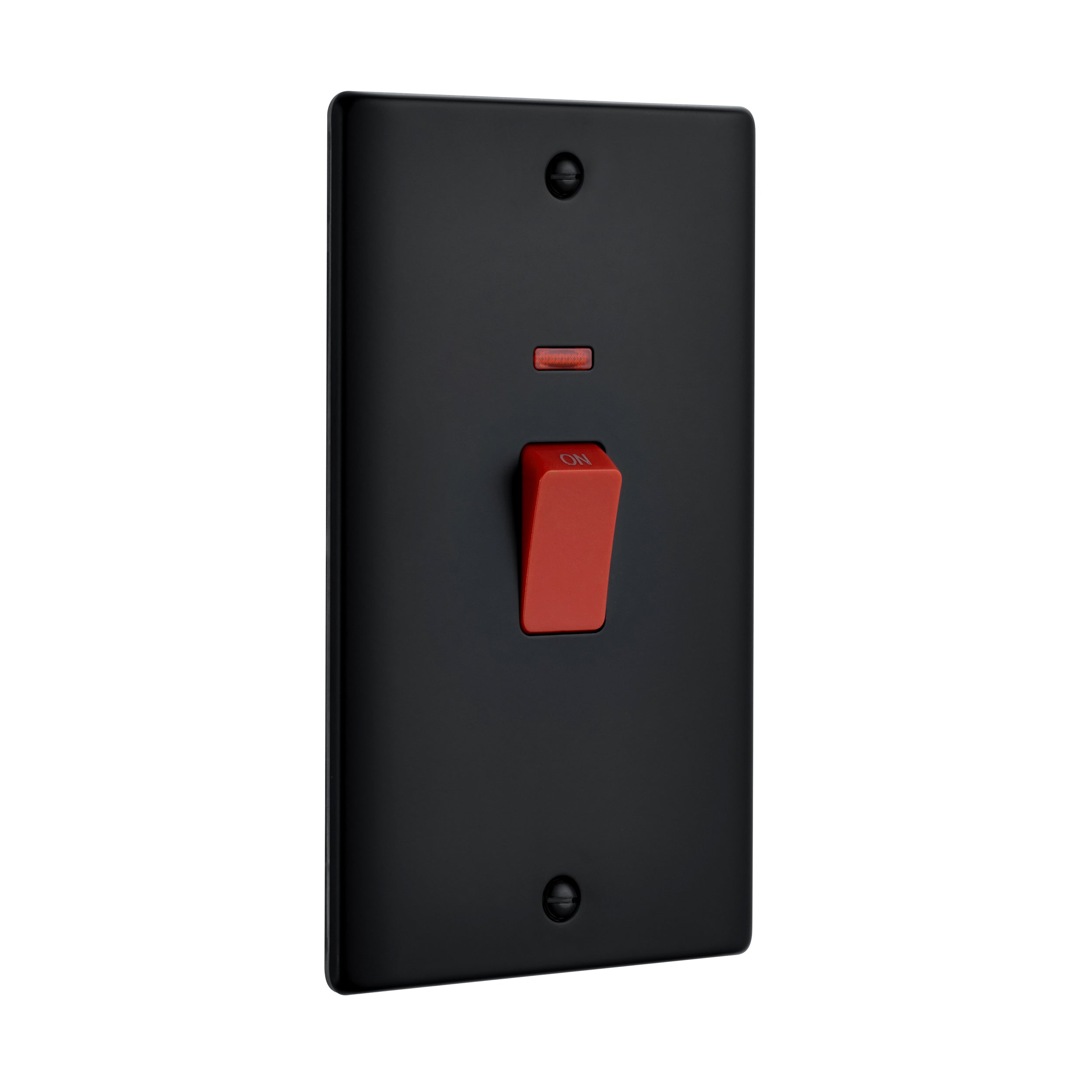 Saxby Raised Screwed 45A Large Plate DP Switch with Neon - Matt Black RS555BL