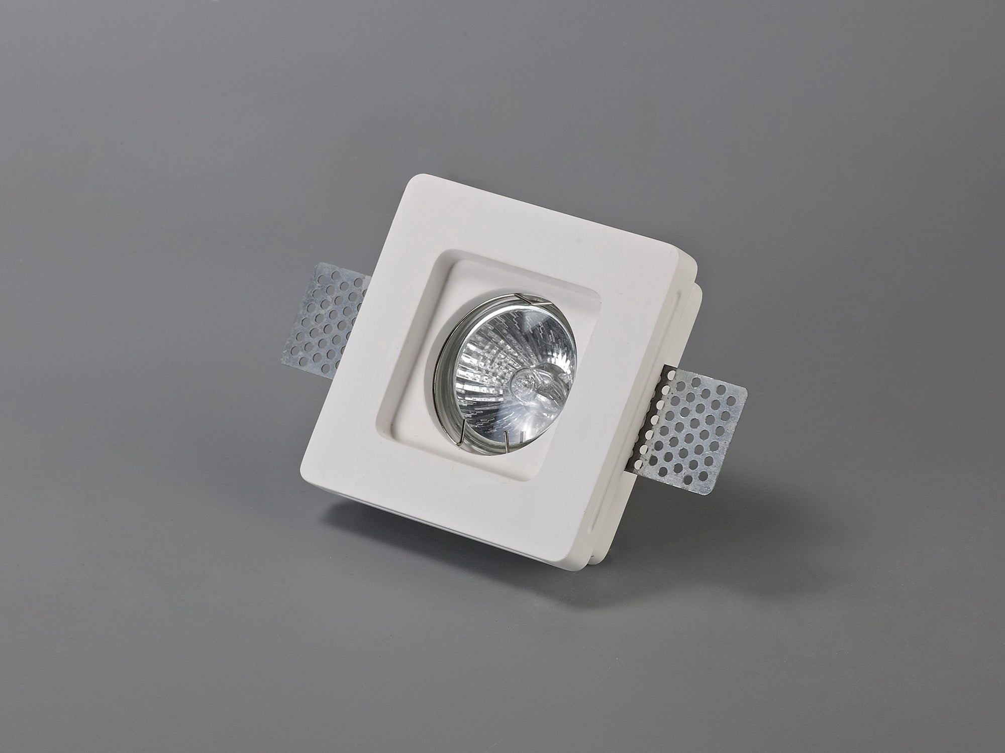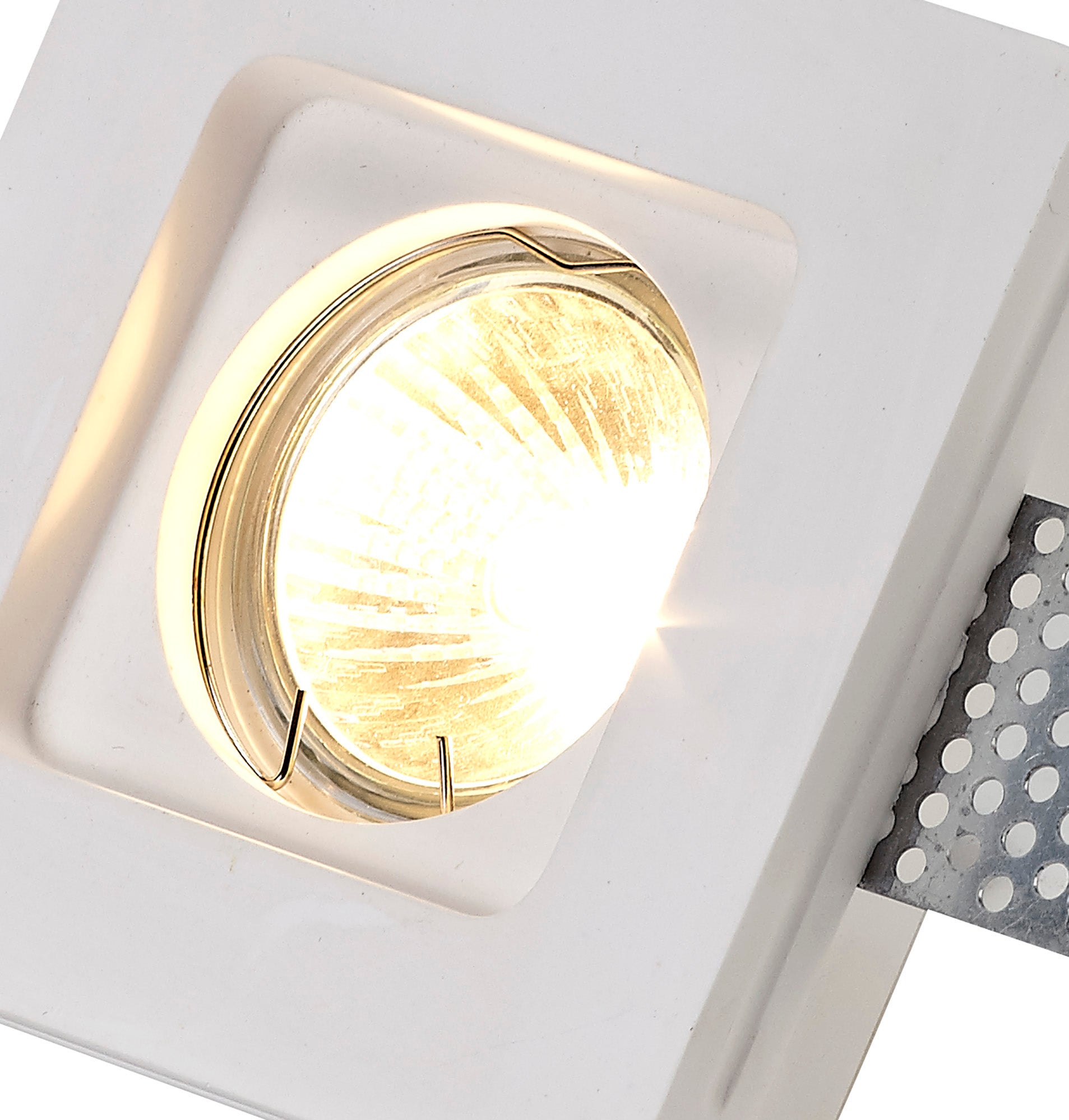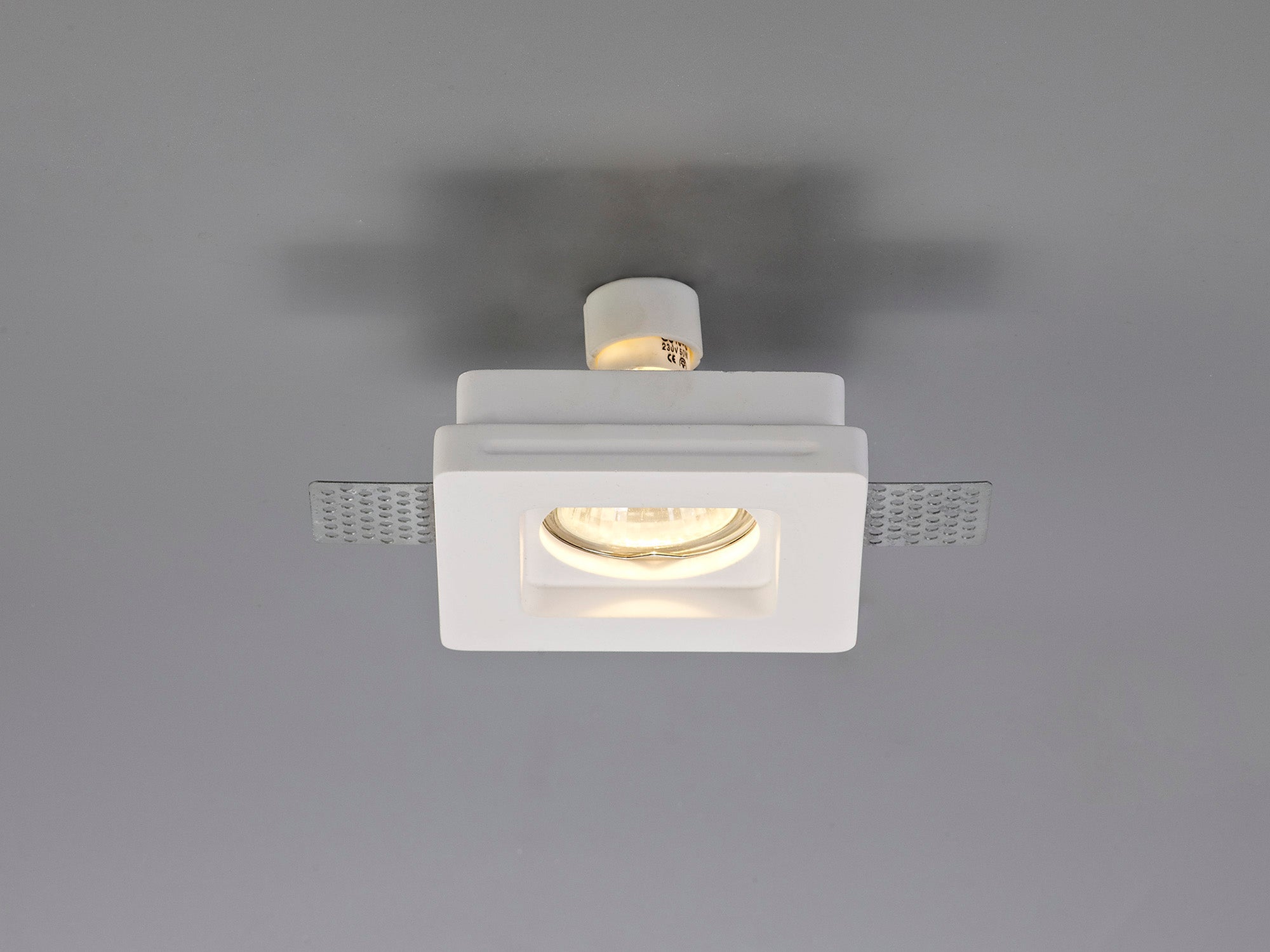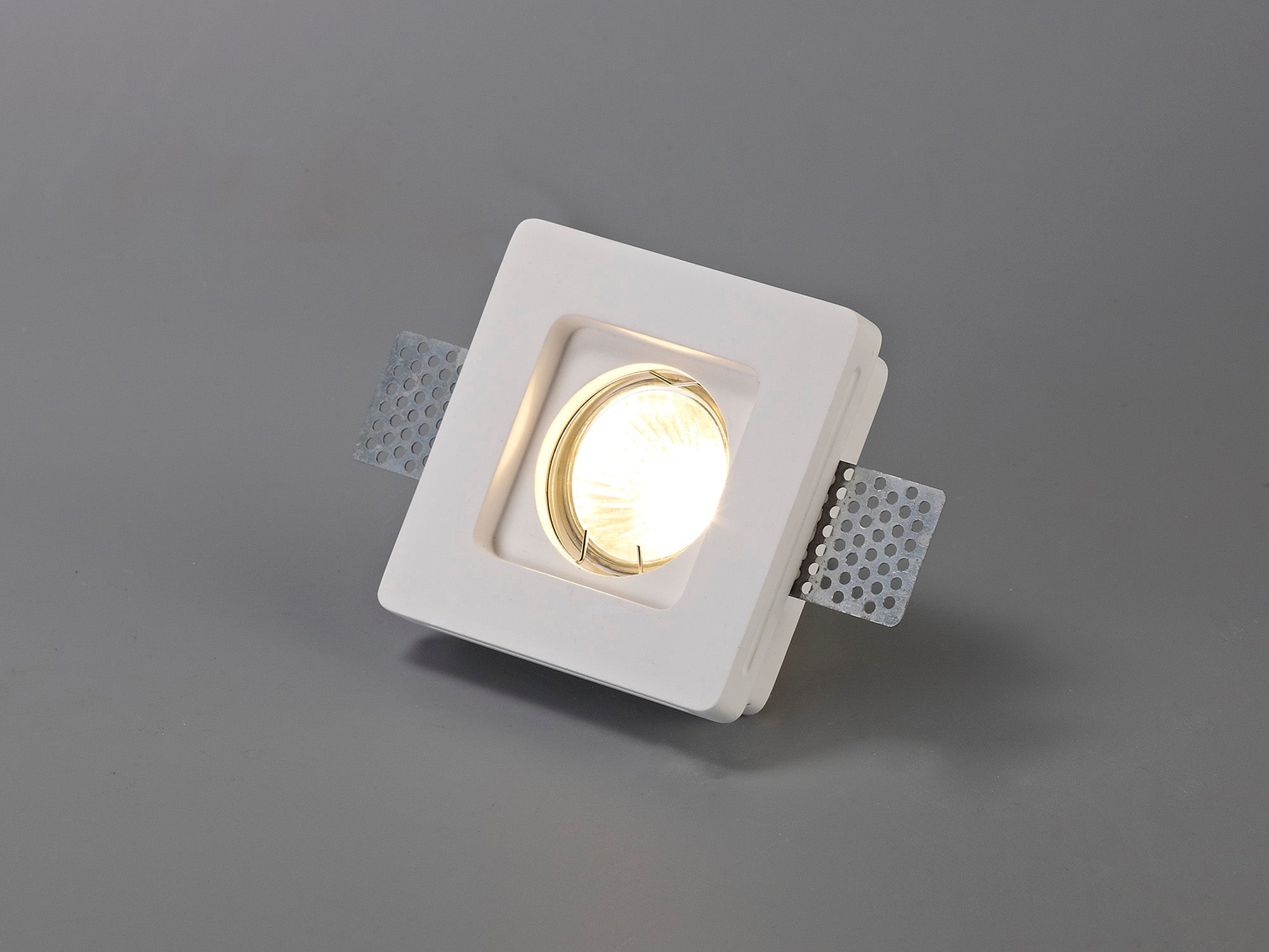 Plastin Square Stepped Recessed Spotlight, GU10, White Paintable Gypsum, Cut Out: L:103mmxW:103mm