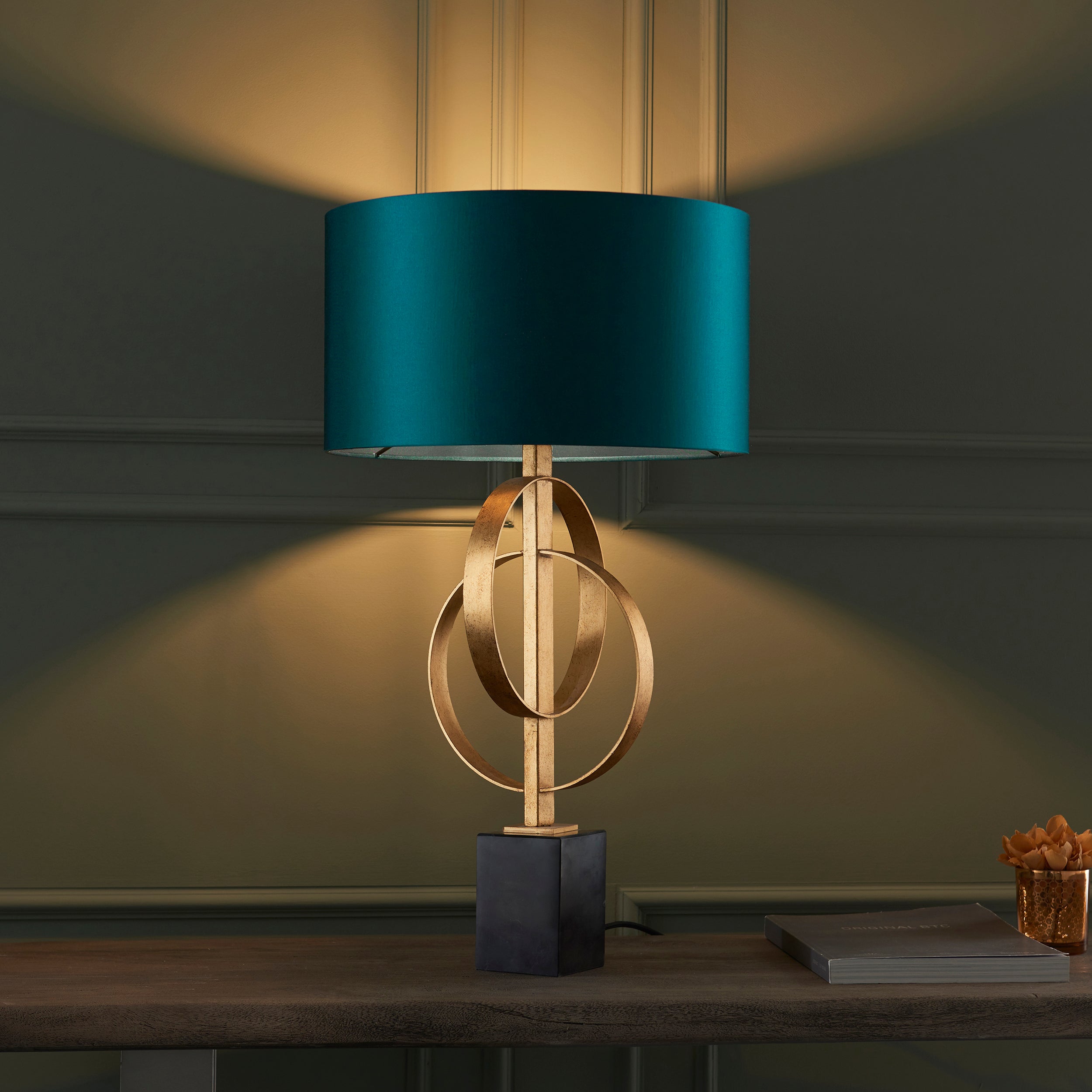 Lightologist Antique gold leaf & teal satin fabric Base & shade Table Light WIN1395221