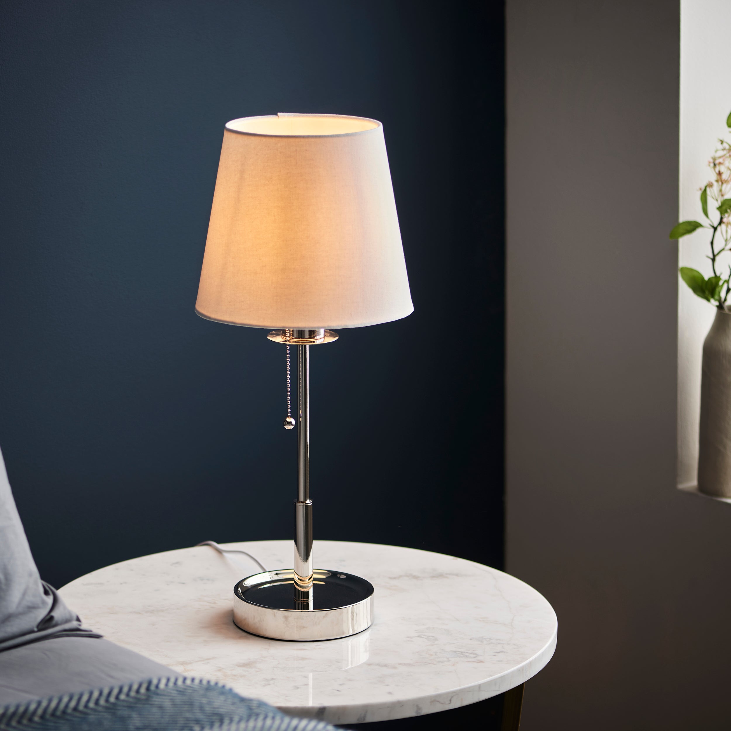 Lightologist Bright nickel plate & vintage white fabric Base & shade Table Light WIN1399596