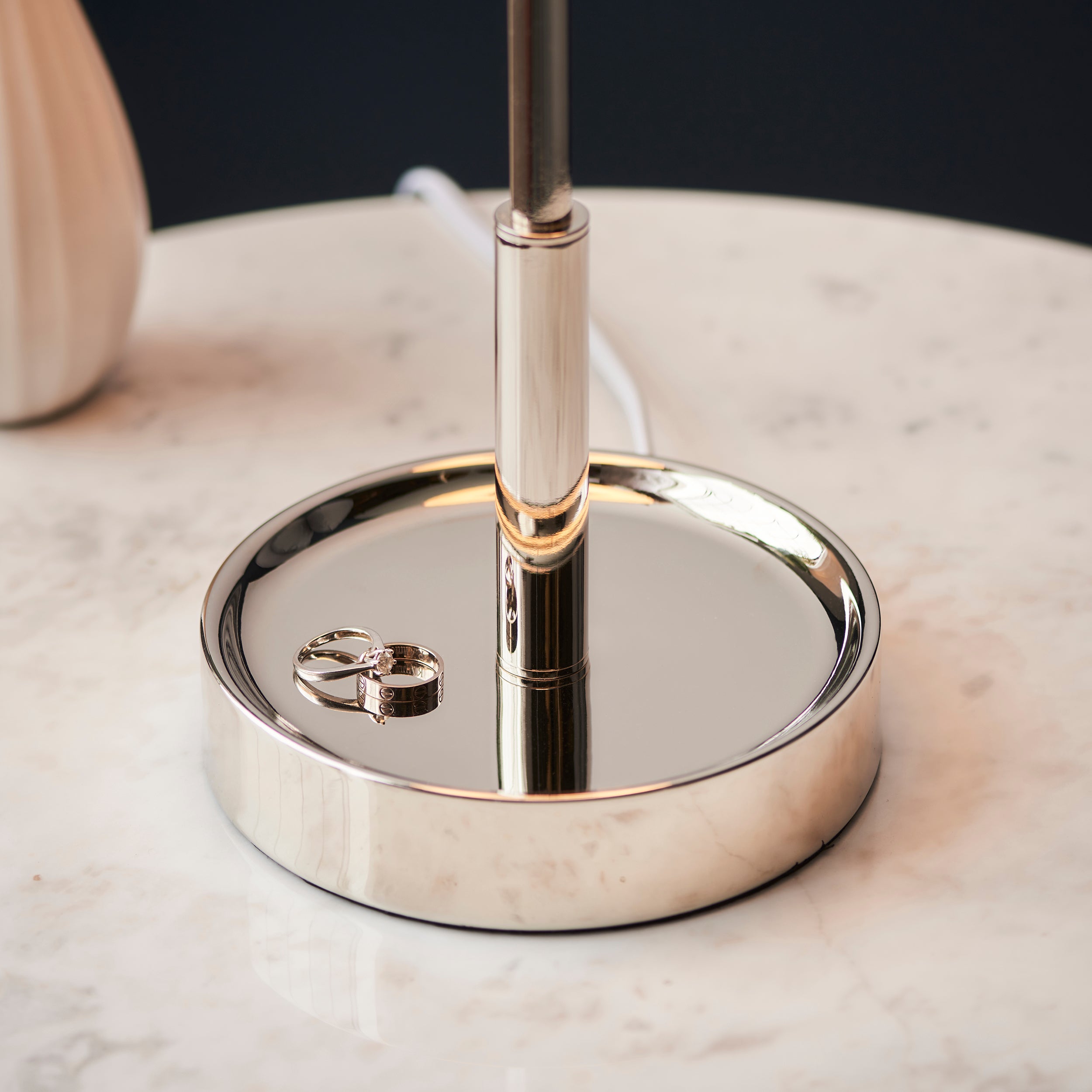 Lightologist Bright nickel plate & vintage white fabric Base & shade Table Light