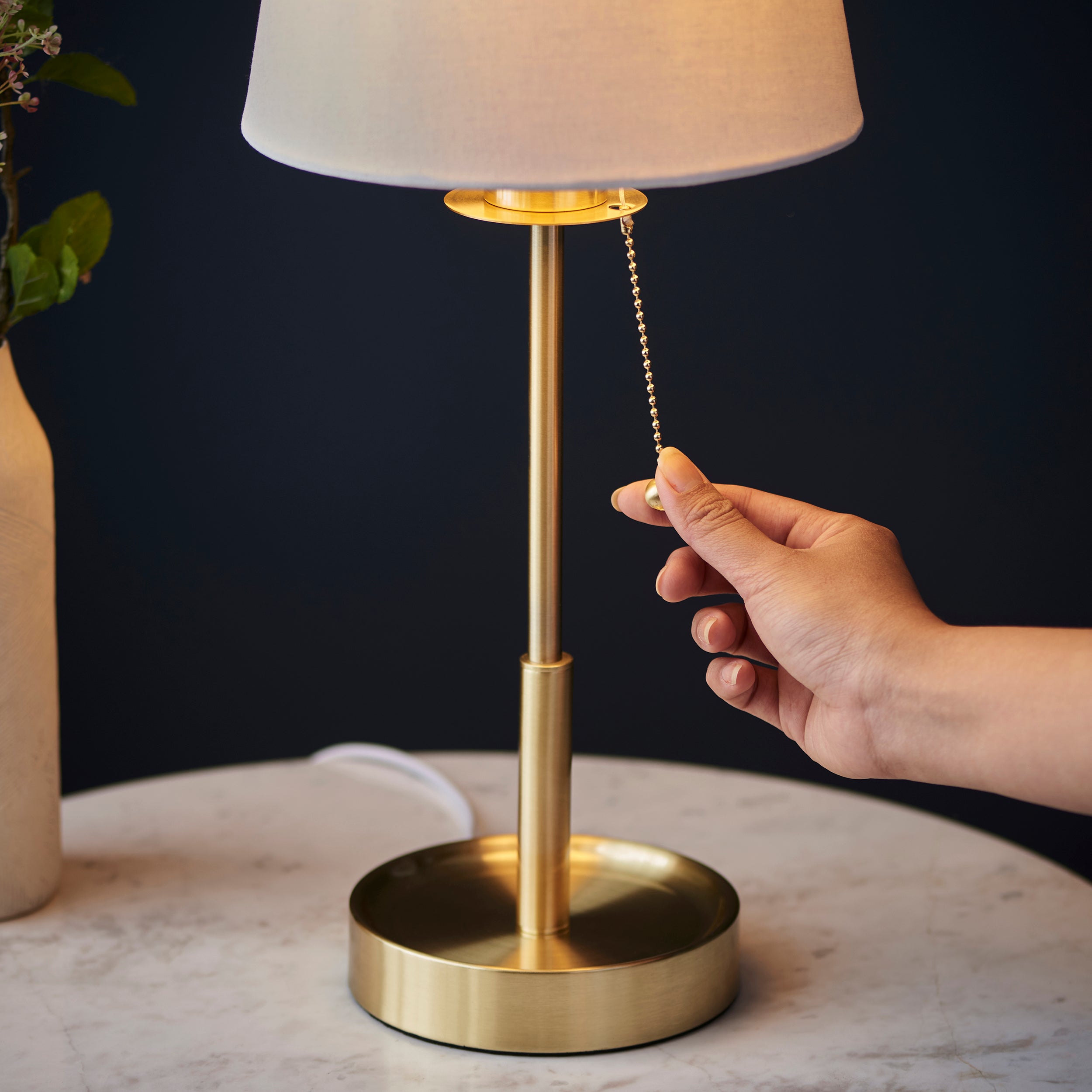 Lightologist Satin brass plate & vintage white fabric Base & shade Table Light
