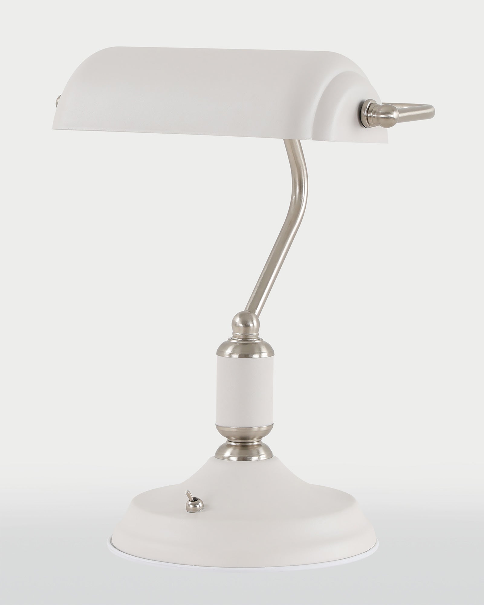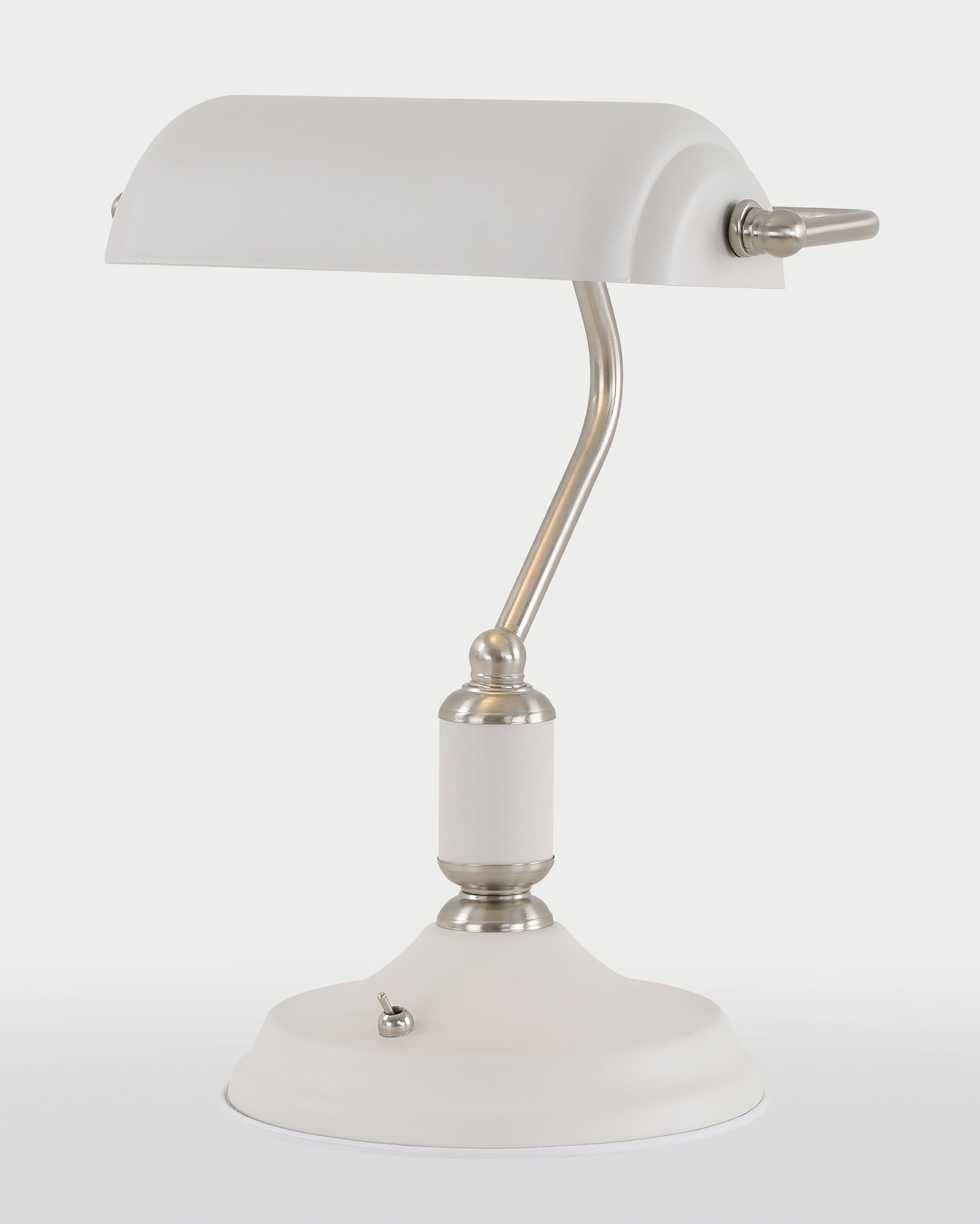 Banker Table Lamp 1 Light With Toggle Switch, Satin Nickel/Sand White