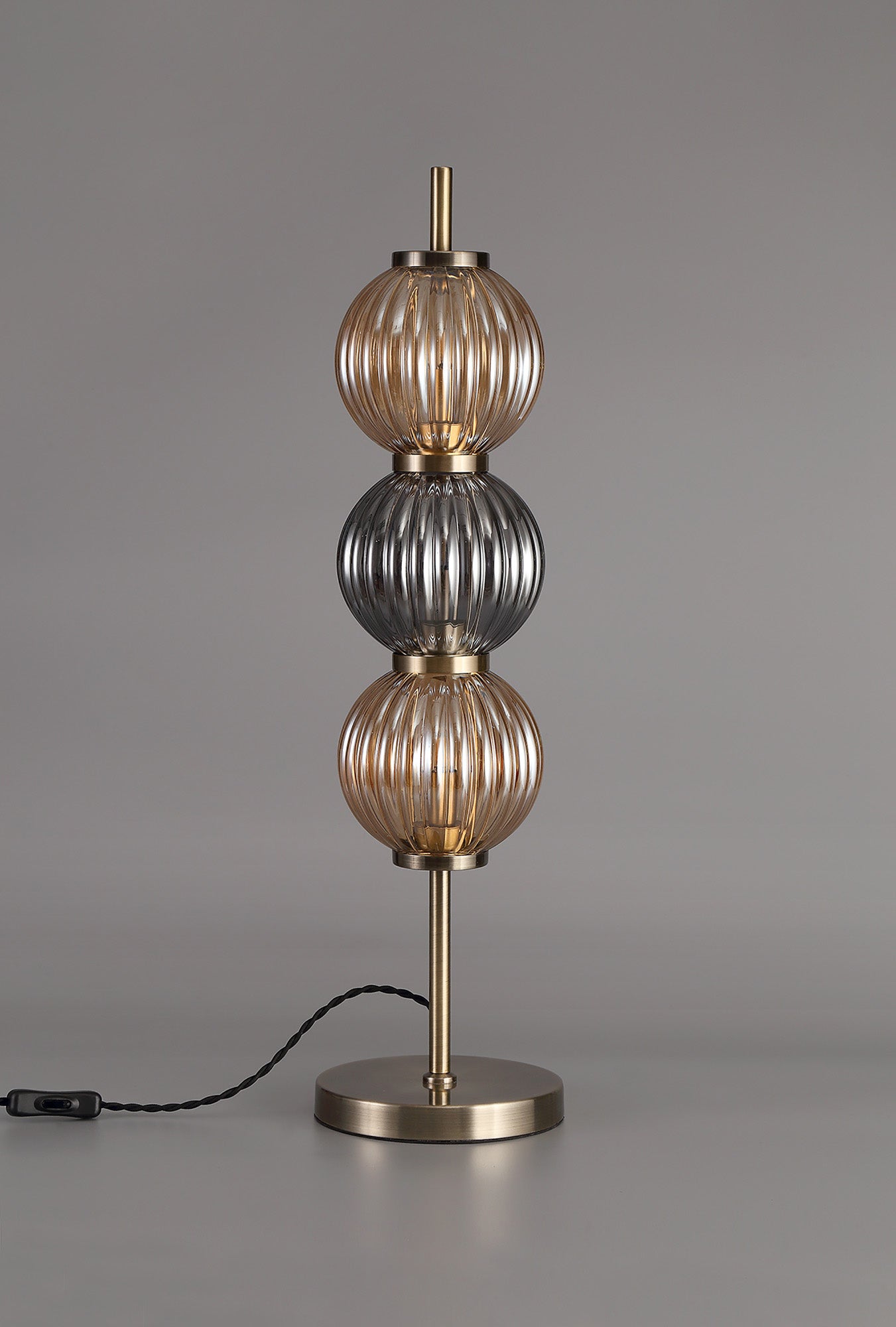Lightologist Farra Table Lamp, 3 x G9, Antique Brass/Smoked & Amber Glass LO174463