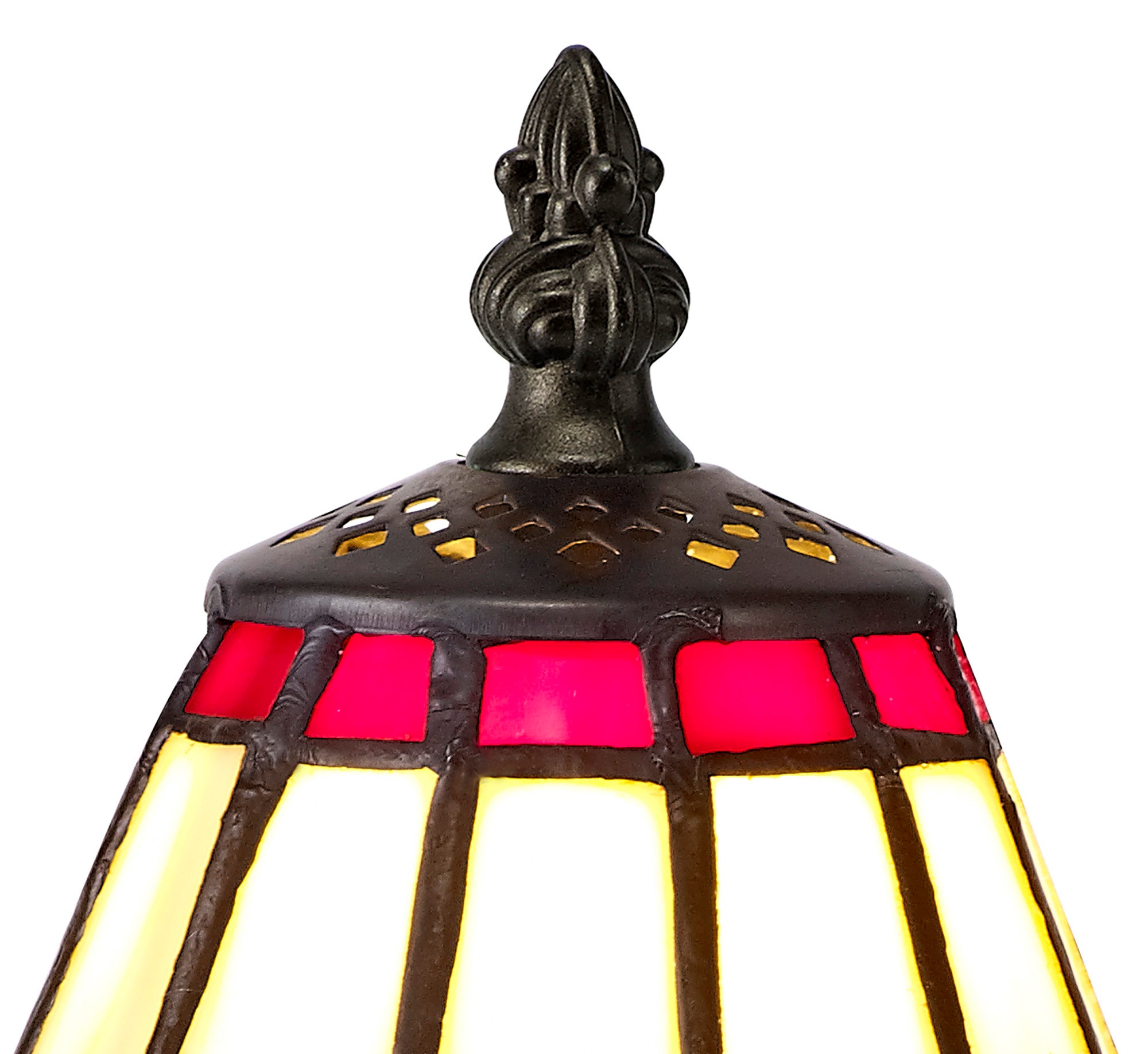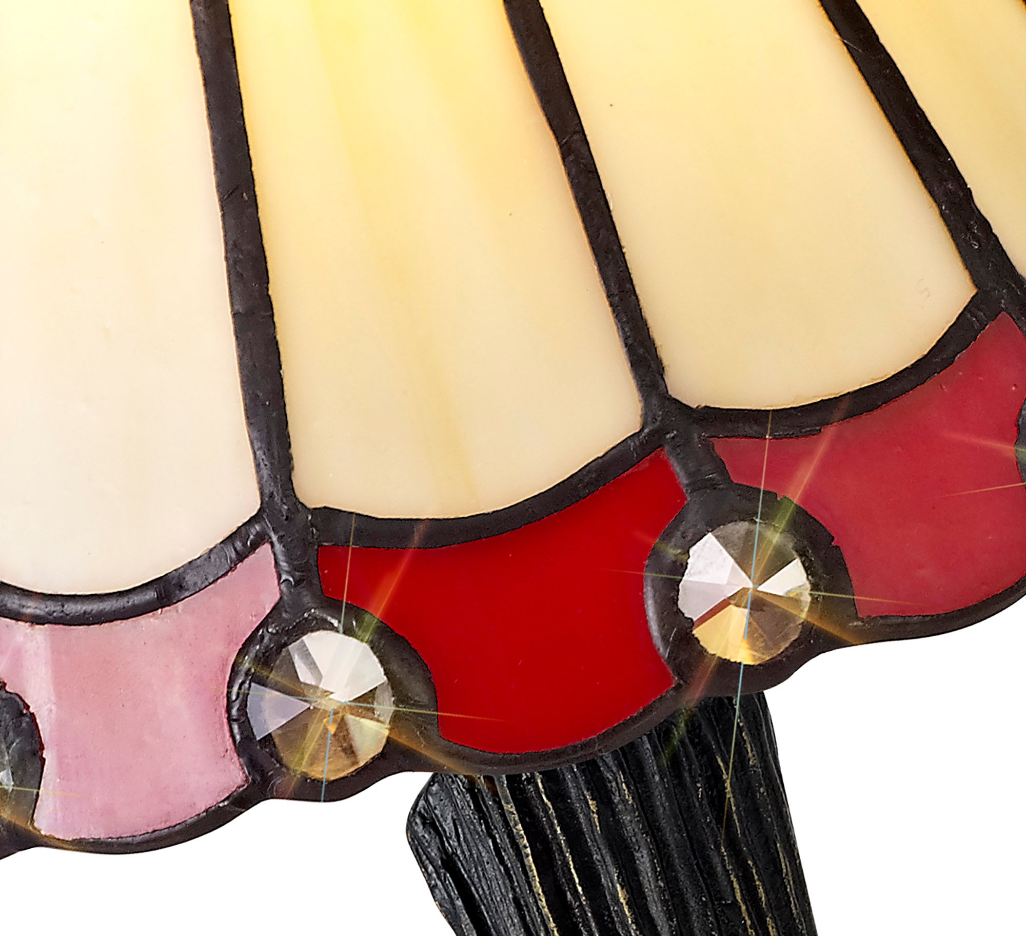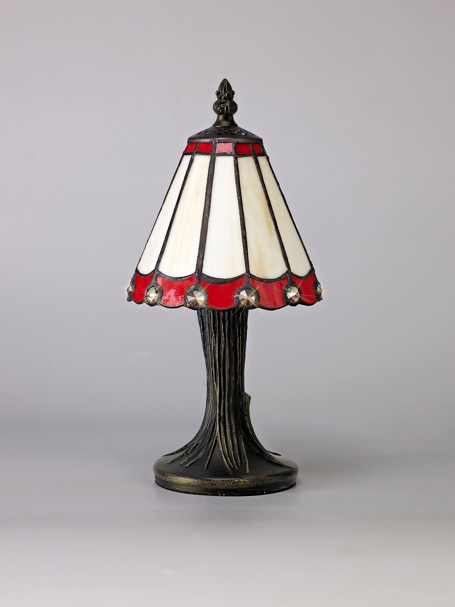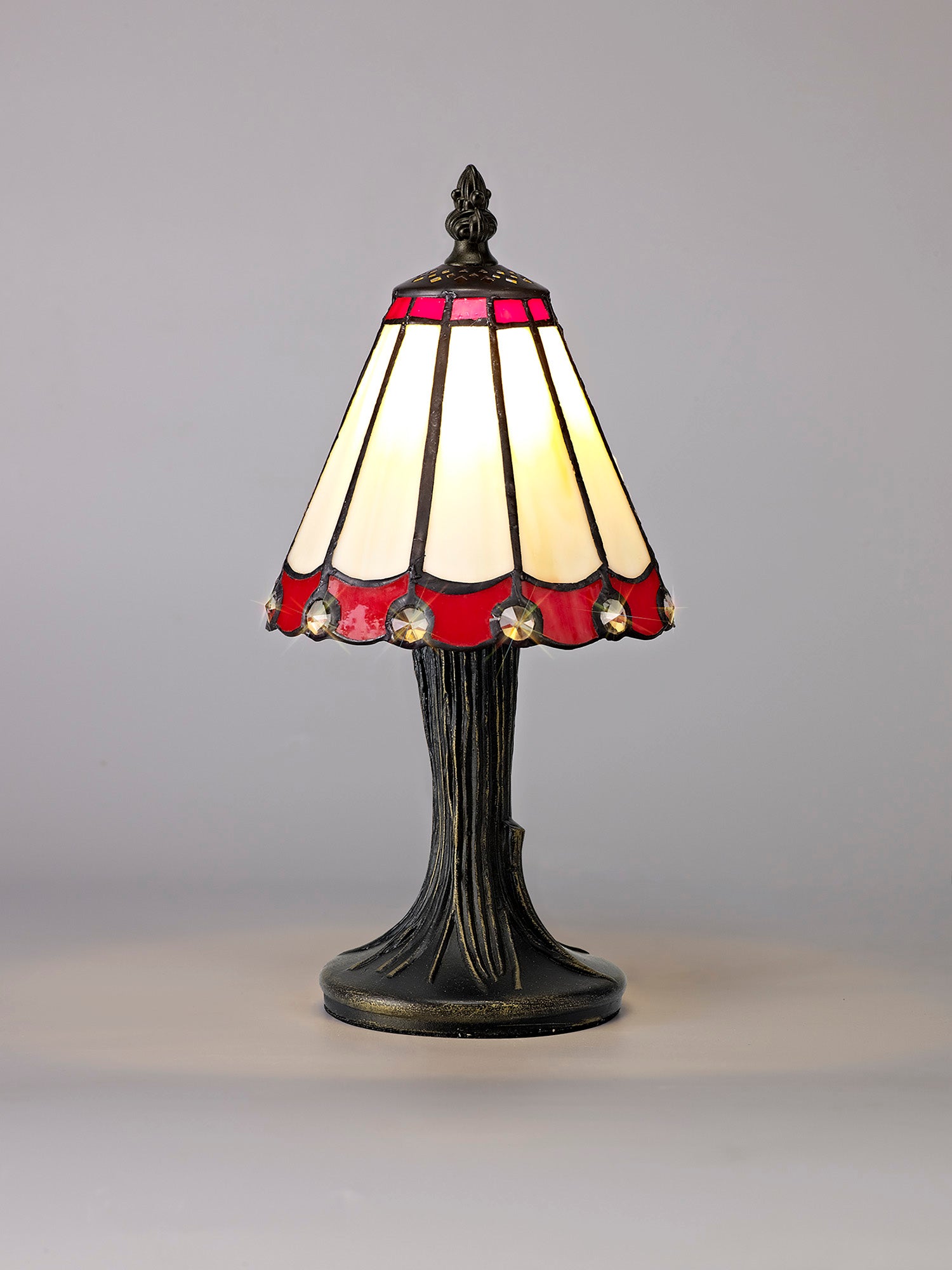 Umbrella Tiffany Table Lamp, 1 x E14, Crealm/Red/Clear Crystal Shade