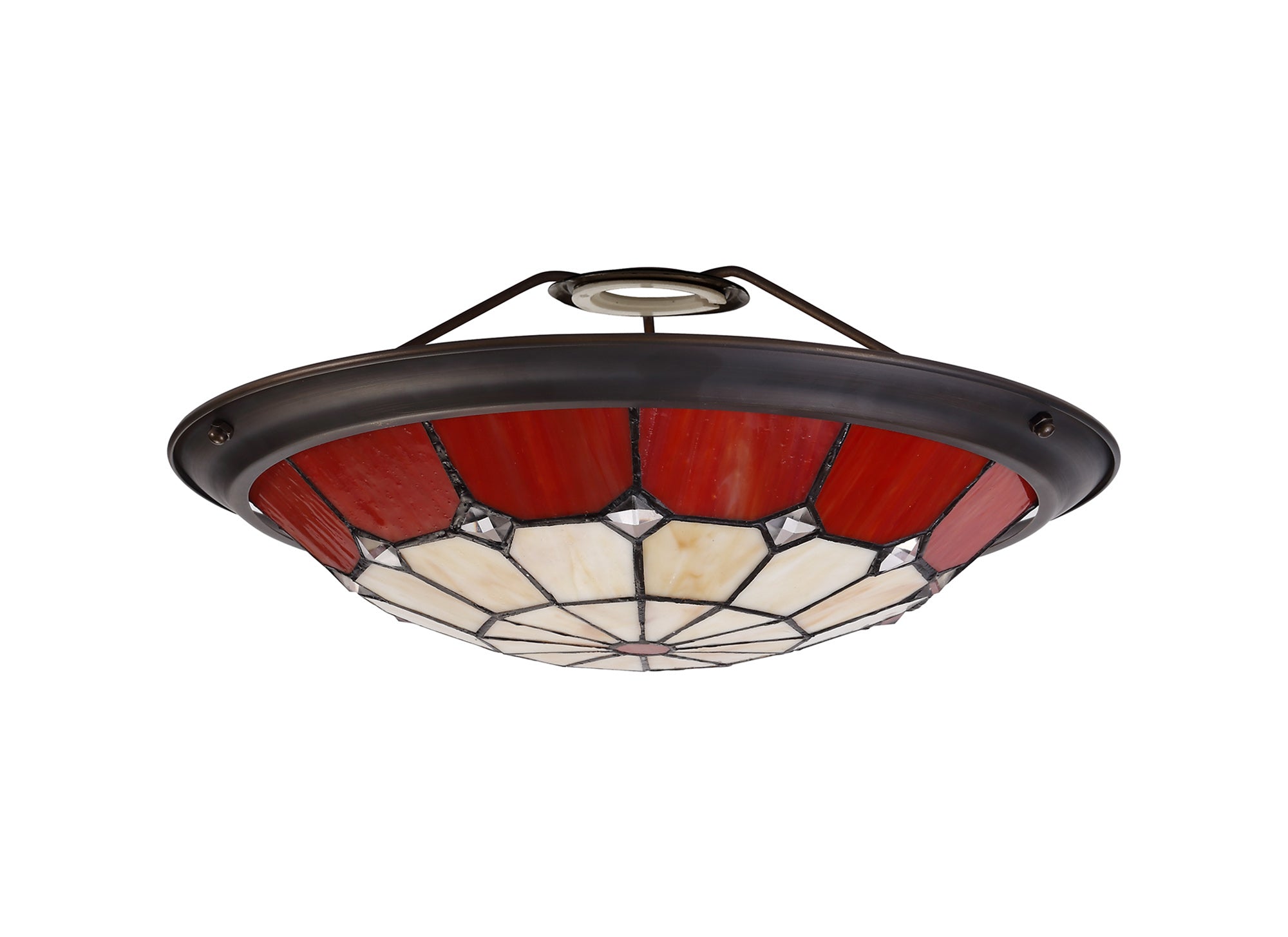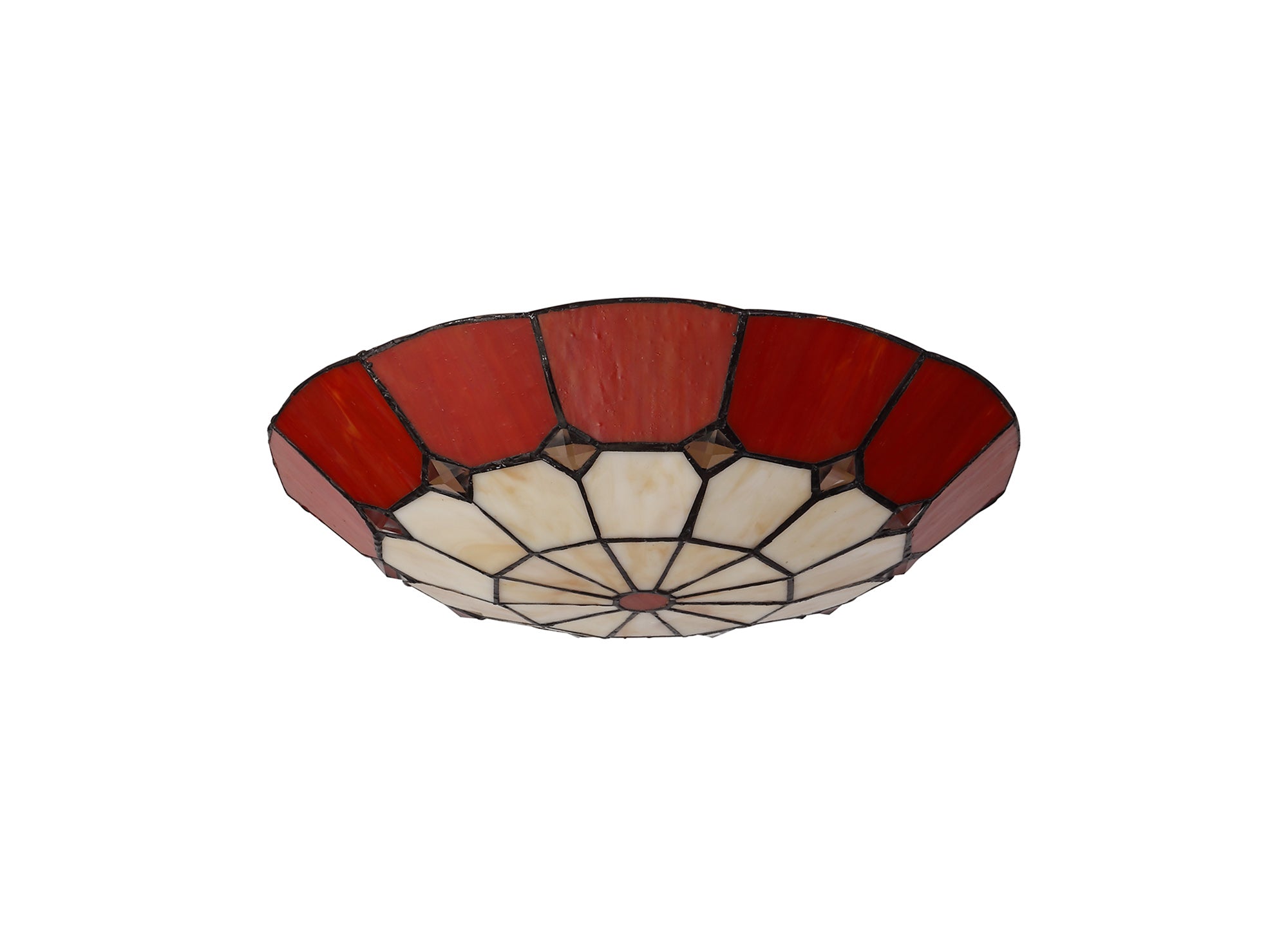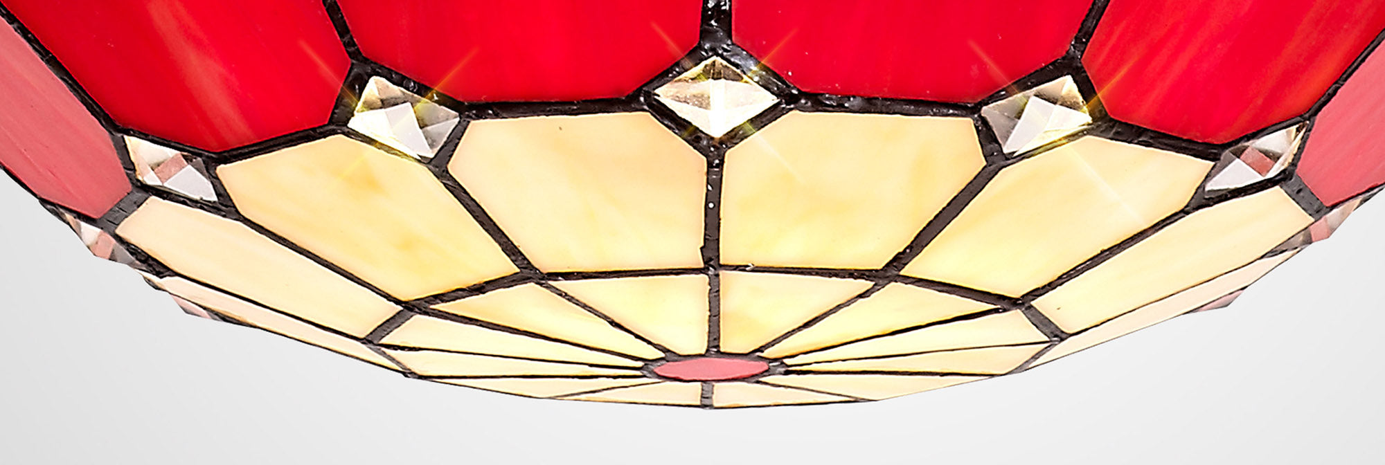 Austiffany, Tiffany 35cm Non-electric Uplighter Shade, Crealm/Red/Clear Crystal Centre/Aged Antique Brass Trim