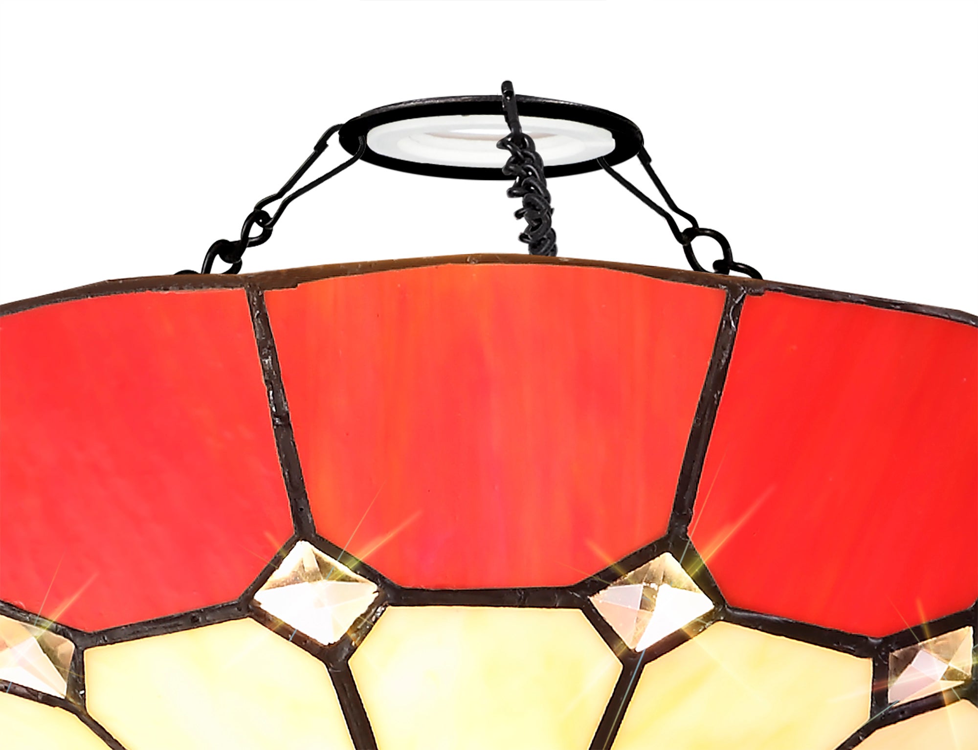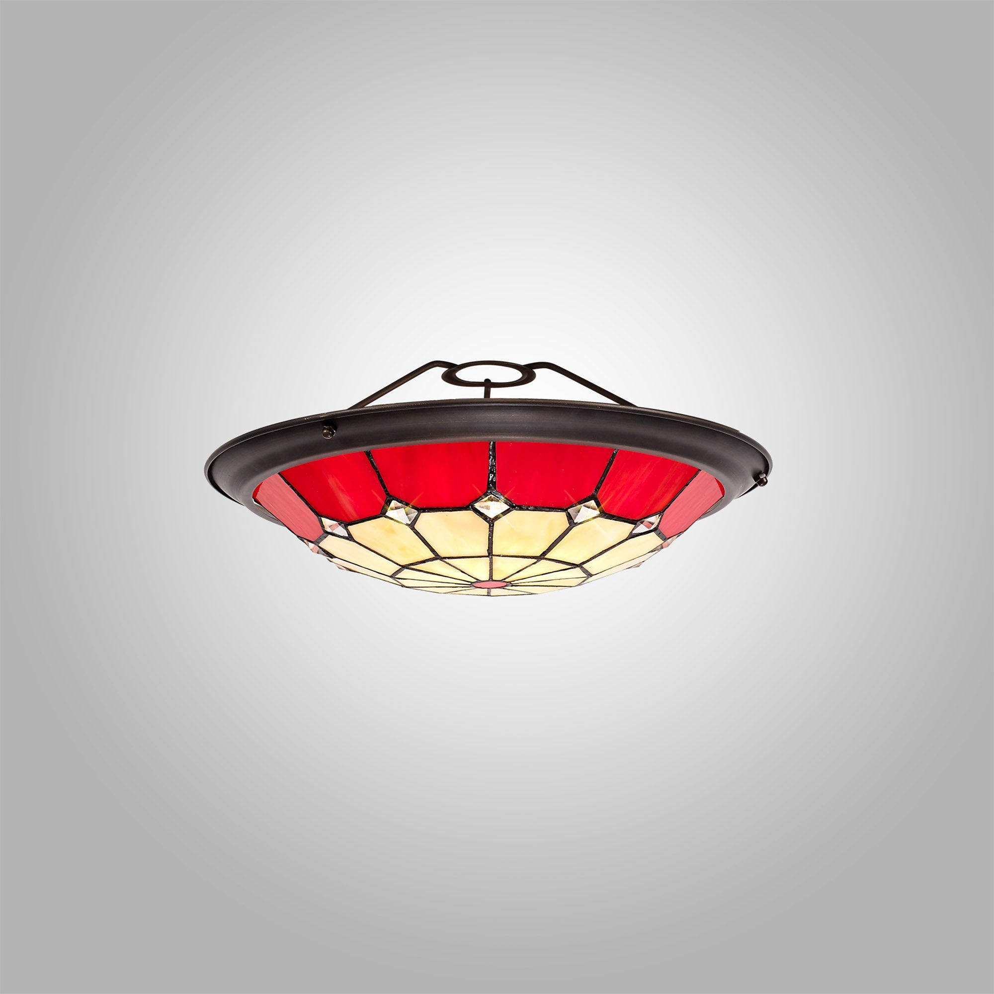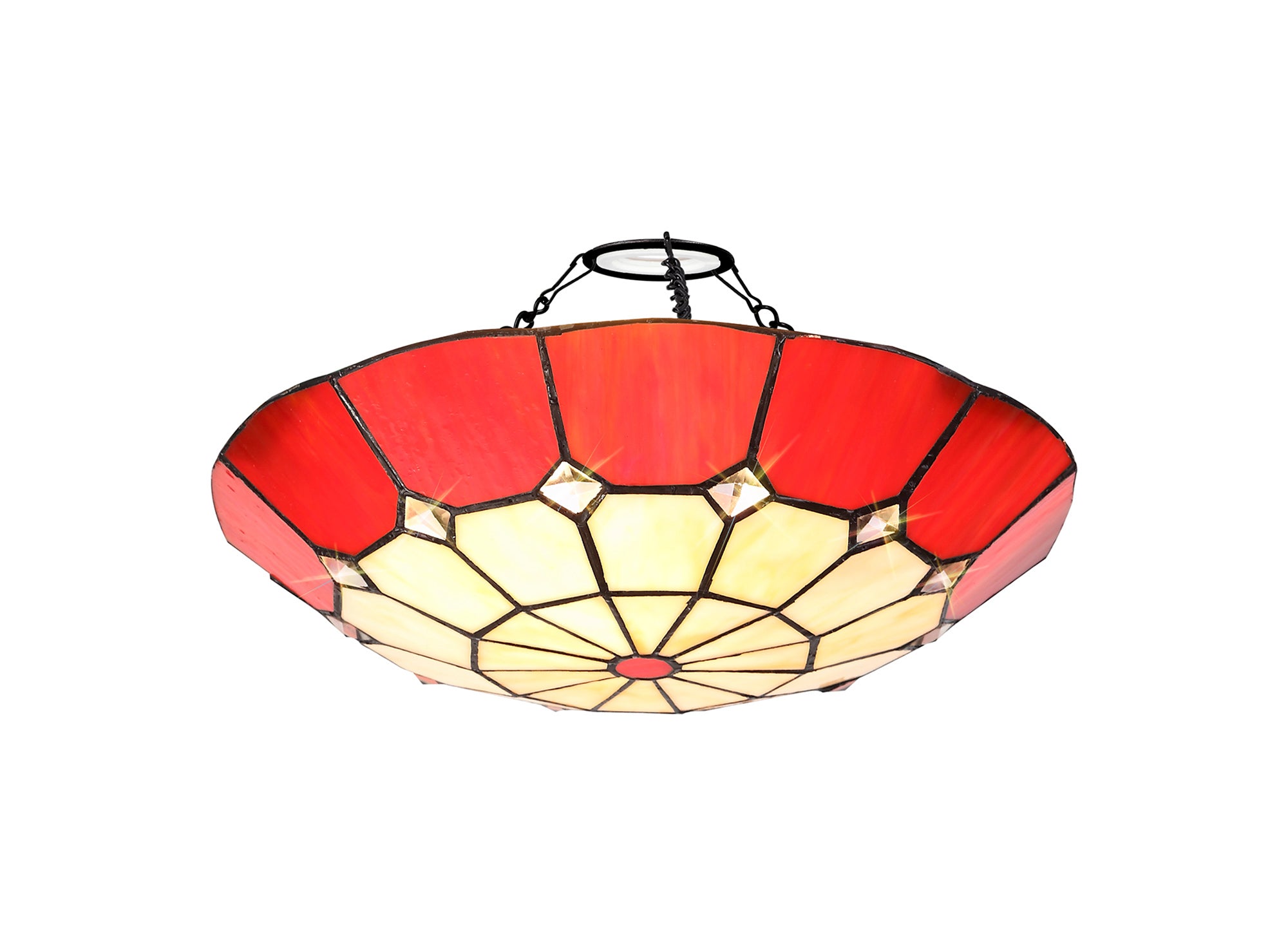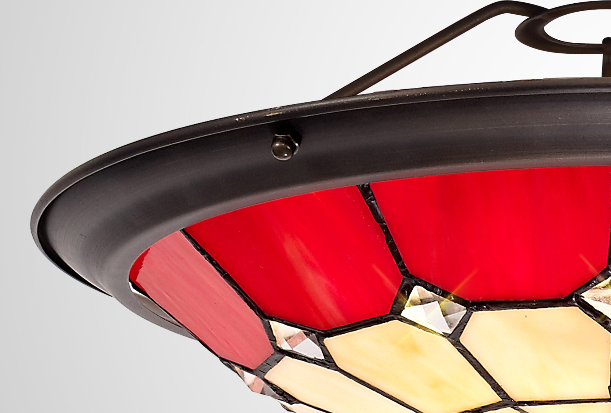 Austiffany, Tiffany 35cm Non-electric Uplighter Shade, Crealm/Red/Clear Crystal Centre/Aged Antique Brass Trim