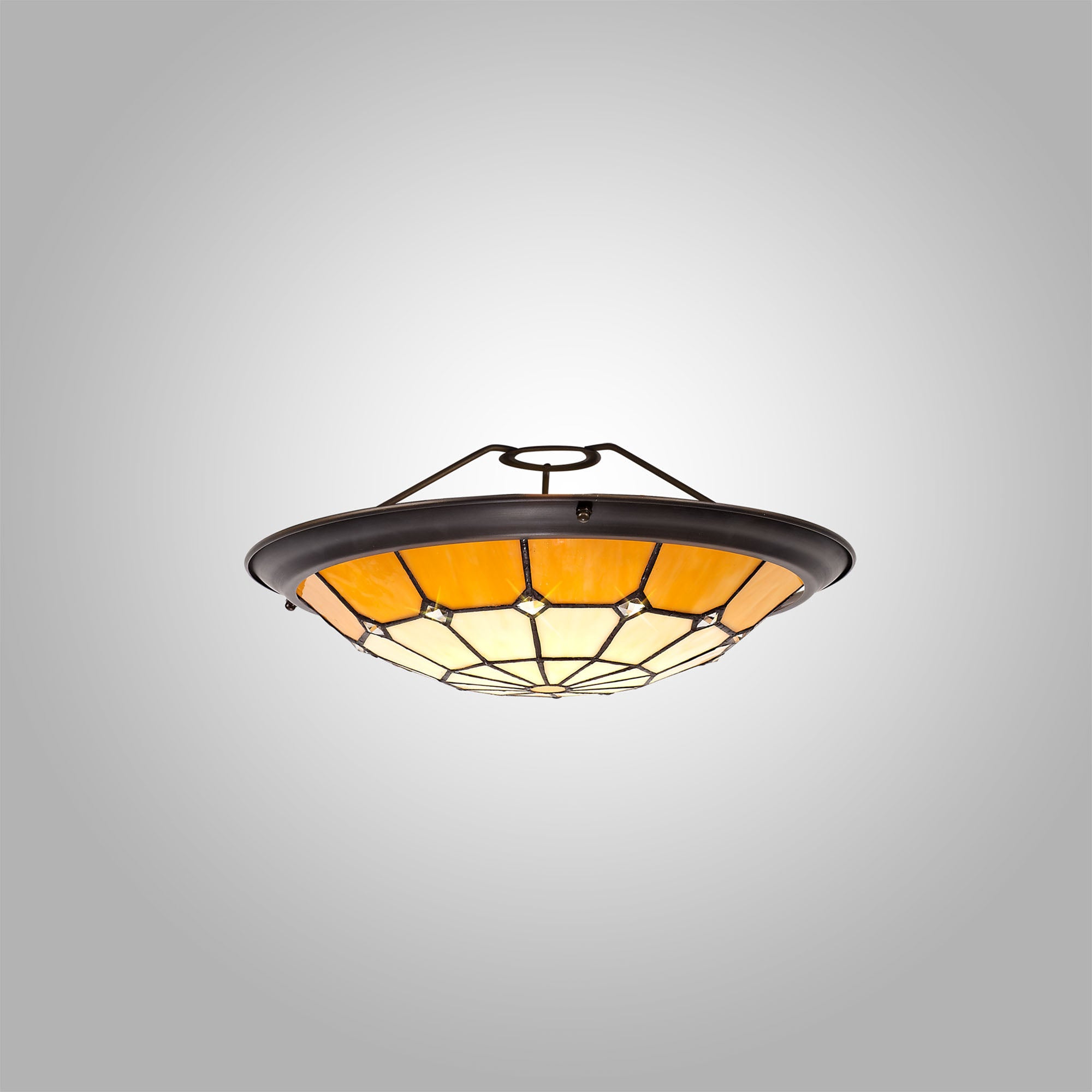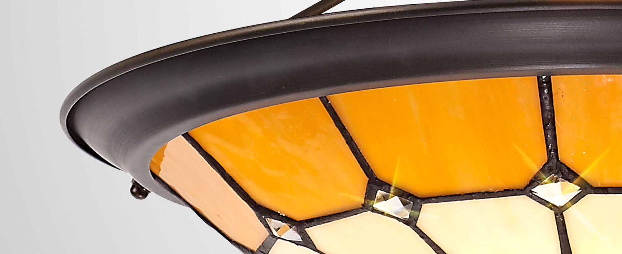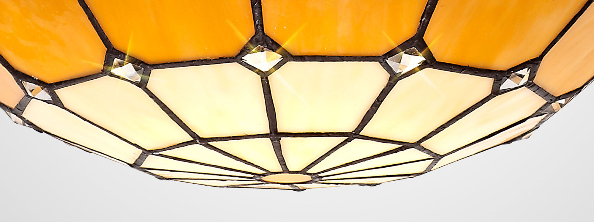 A classic traditional range, Austiffany offers the best of Tiffany glass designs in the form of a 35cm uplighter shade. Available in an array of colour options, this Non-Electric shade brings its design into the modern era by implementing a dazzling clear crystal centre, inserting an attractive spectrum of colour seamlessly complementing the warm multi-coloured glow provided by the unique glass shapes.