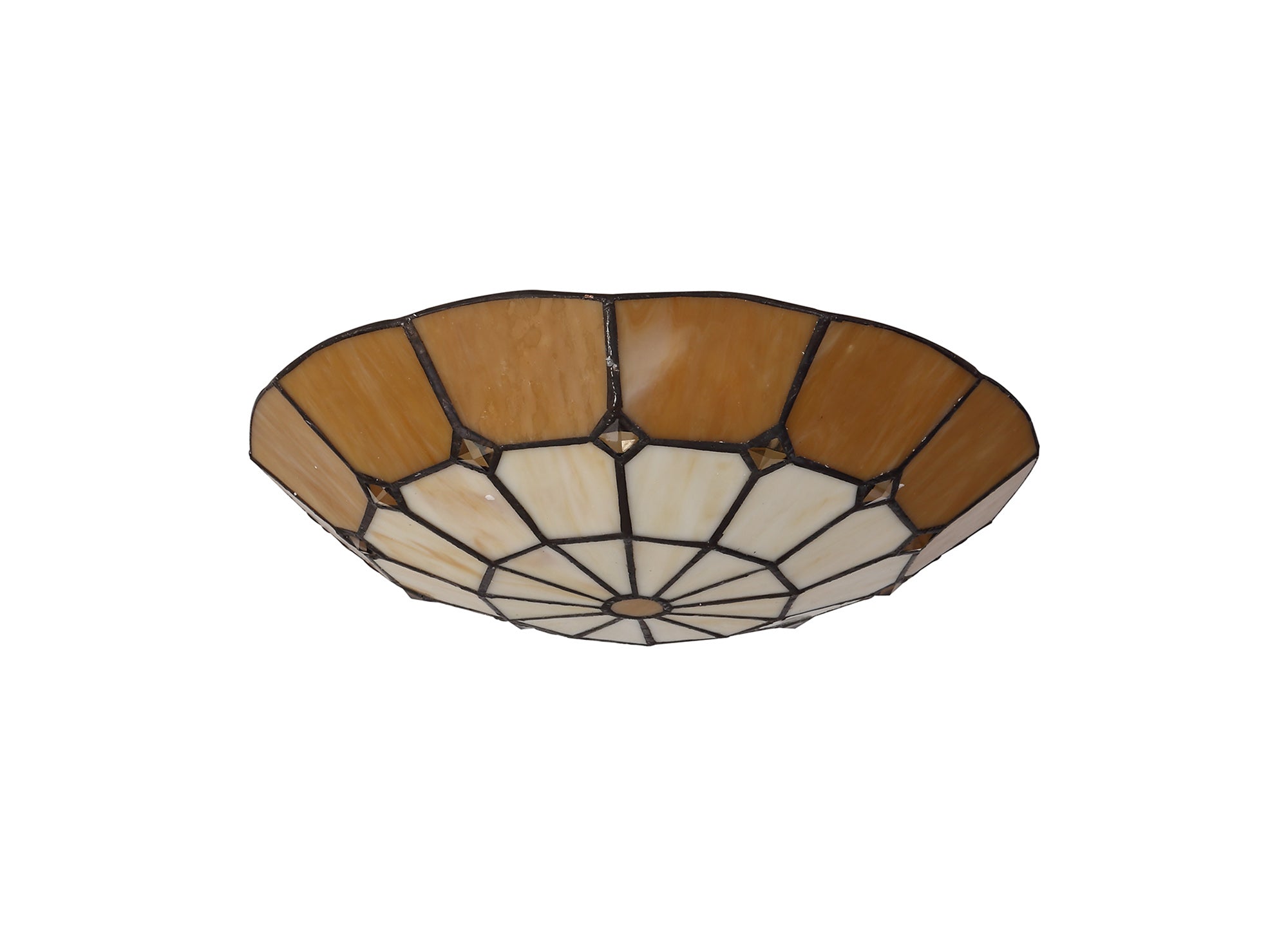 Austiffany, Tiffany 35cm Non-Electric Uplighter Shade, Crealm/Beige/Clear Crystal Centre/Aged Antique Brass Trim