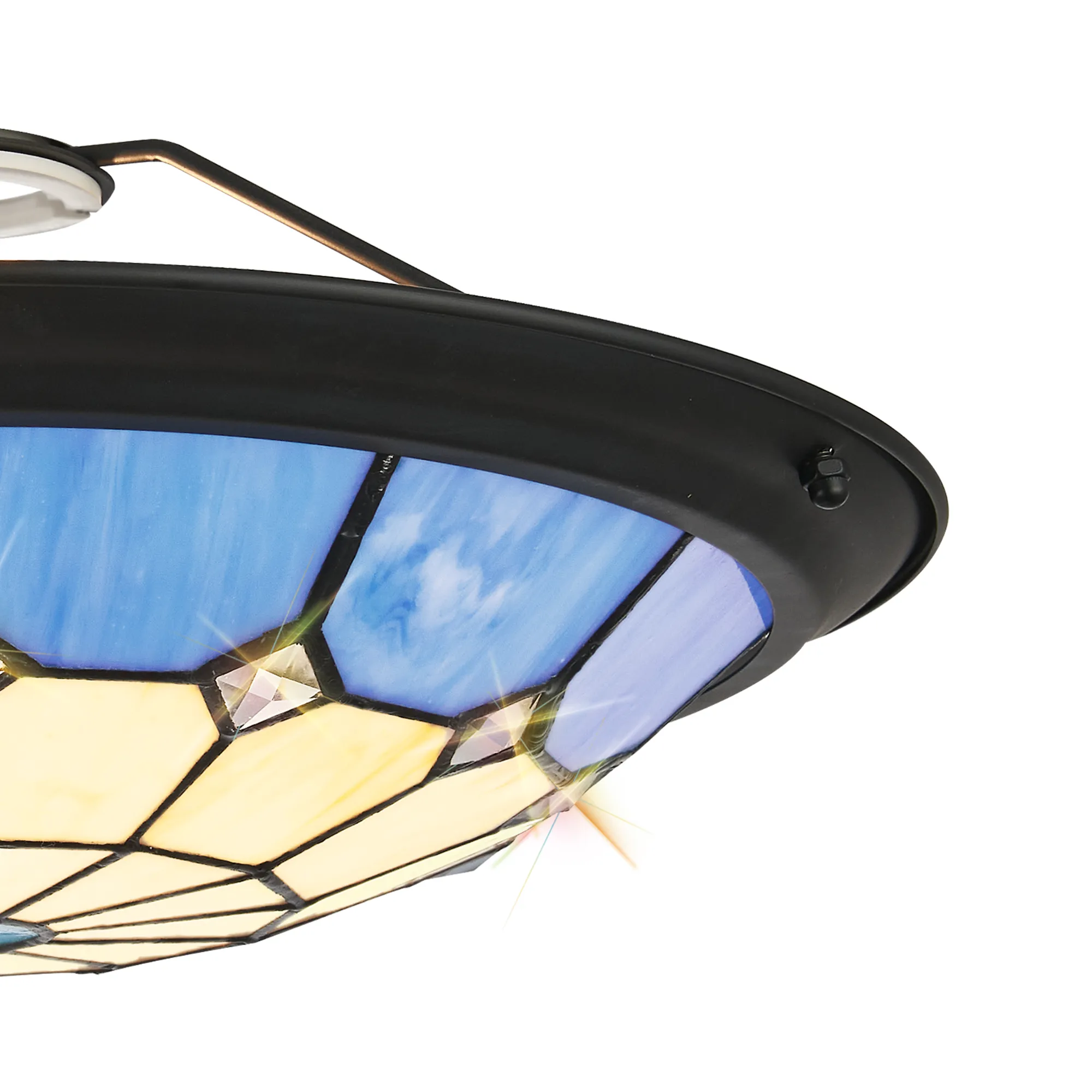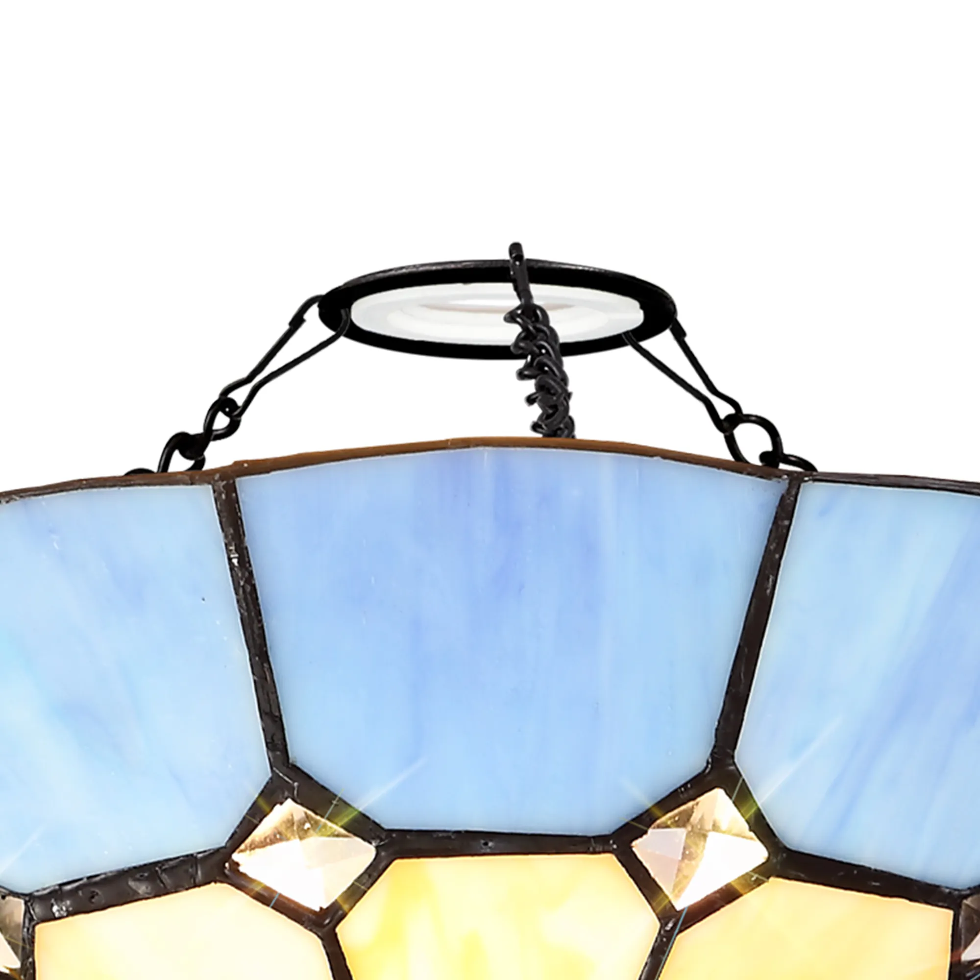 Austiffany Tiffany 35cm Non-electric Uplighter Shade, Cream/Rich Blue/Clear Crystal Centre/Black Trim