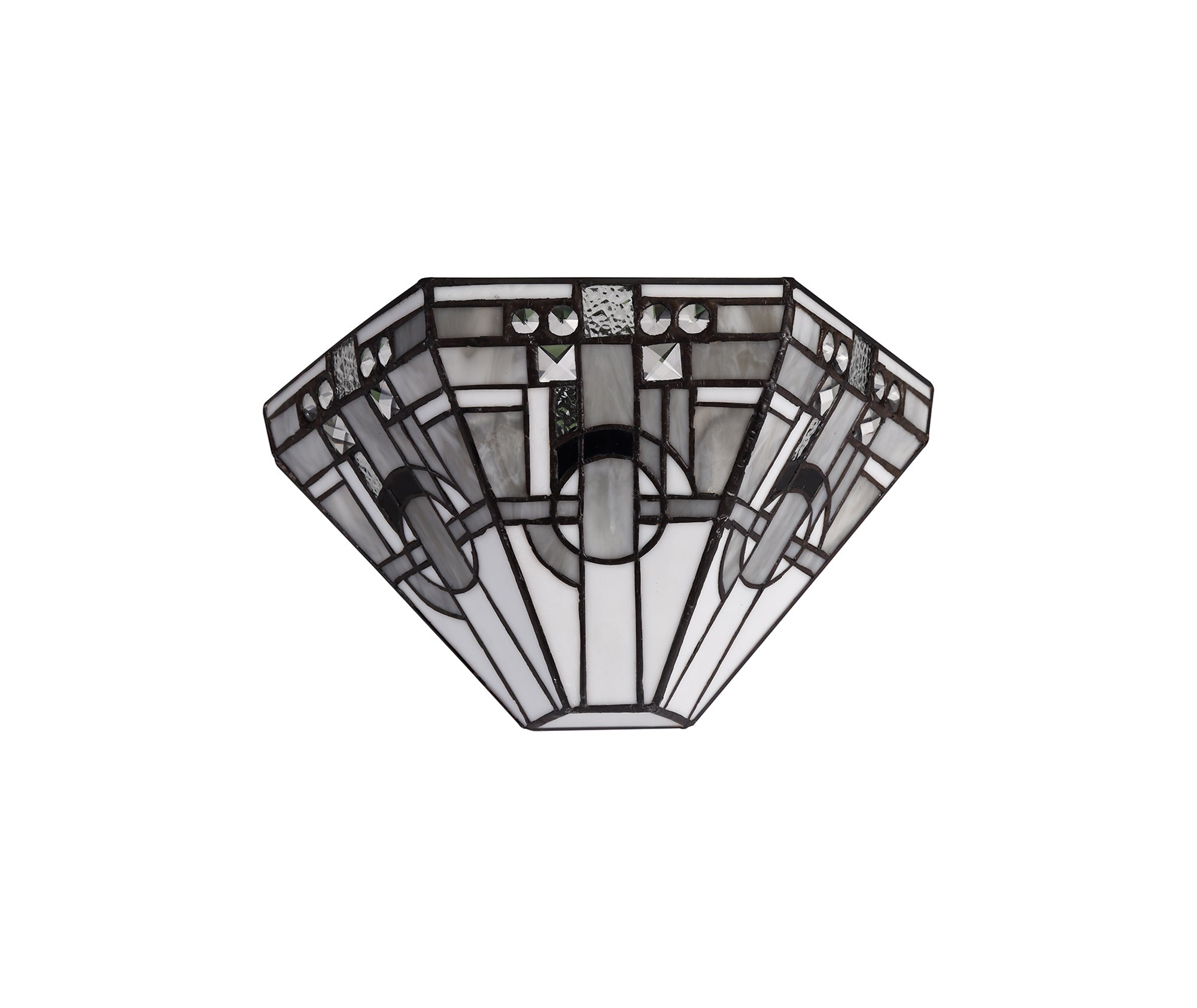 Atek Tiffany Wall Lamp, 2 x E14, White/Grey/Black/Clear Crystal