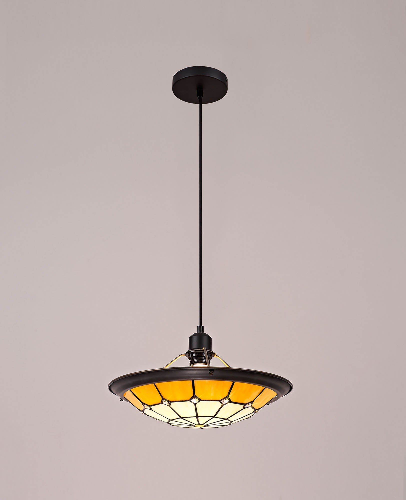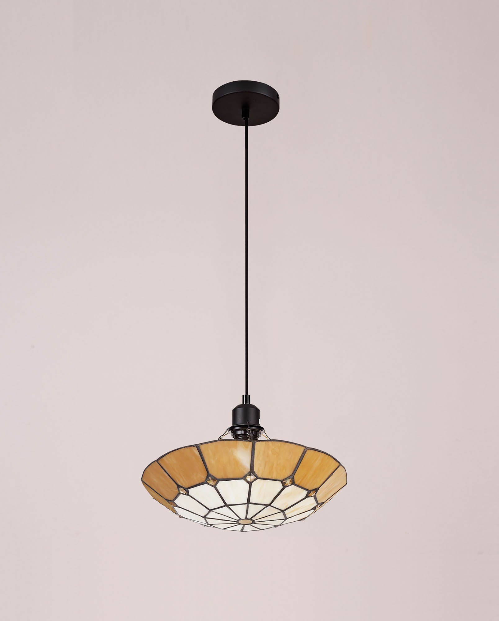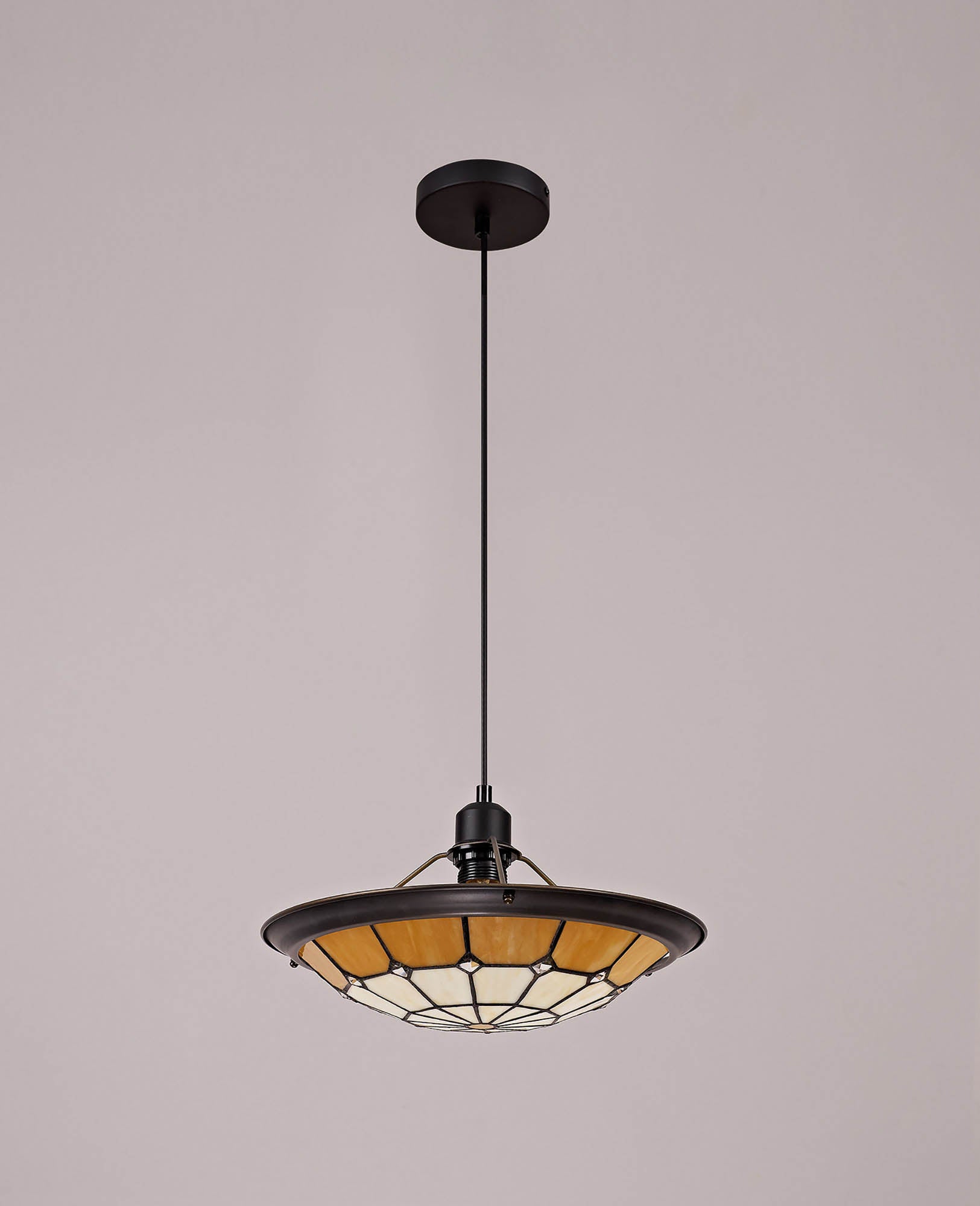 Austiffany 1 Light Pendant E27 With 35cm Tiffany Shade, Cream/Beige/Clear Crystal Centre/Aged Antique Brass Trim/Black