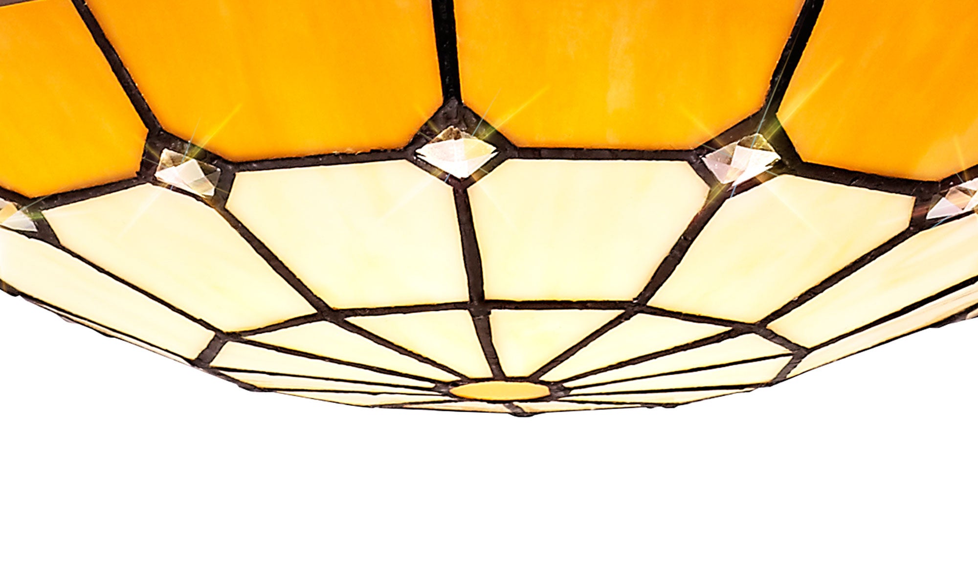A classic traditional range, Austiffany offers the best of Tiffany glass designs in the form of a 35cm uplighter shade. Available in an array of colour options, this collection of shades brings its design into the modern era by implementing a dazzling clear crystal centre, inserting an attractive spectrum of colour seamlessly complementing the warm multi-coloured glow provided by the unique glass shapes.