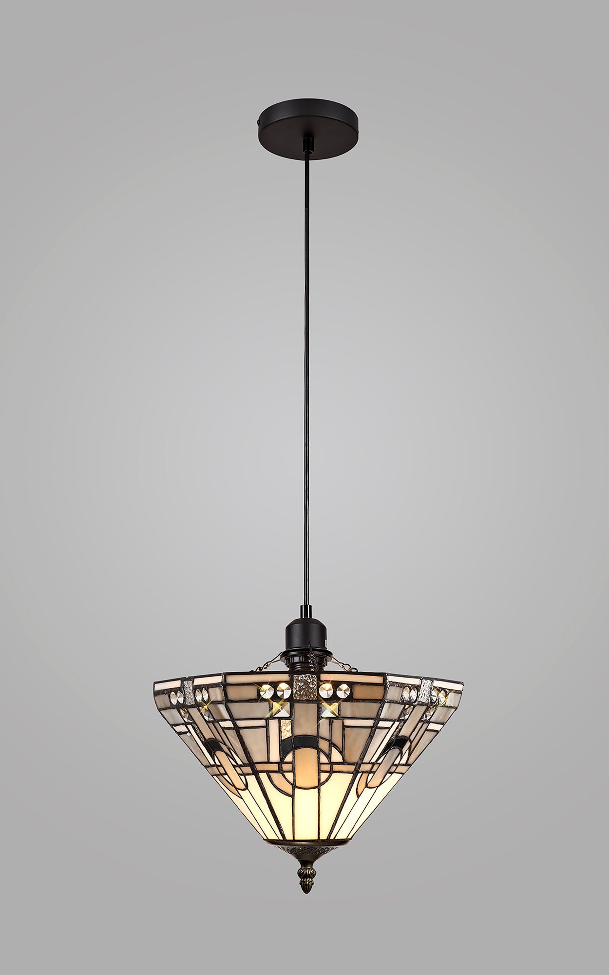 Atek 1 Light Uplighter Pendant E27 With 30cm Tiffany Shade, White/Grey/Black/Clear Crystal