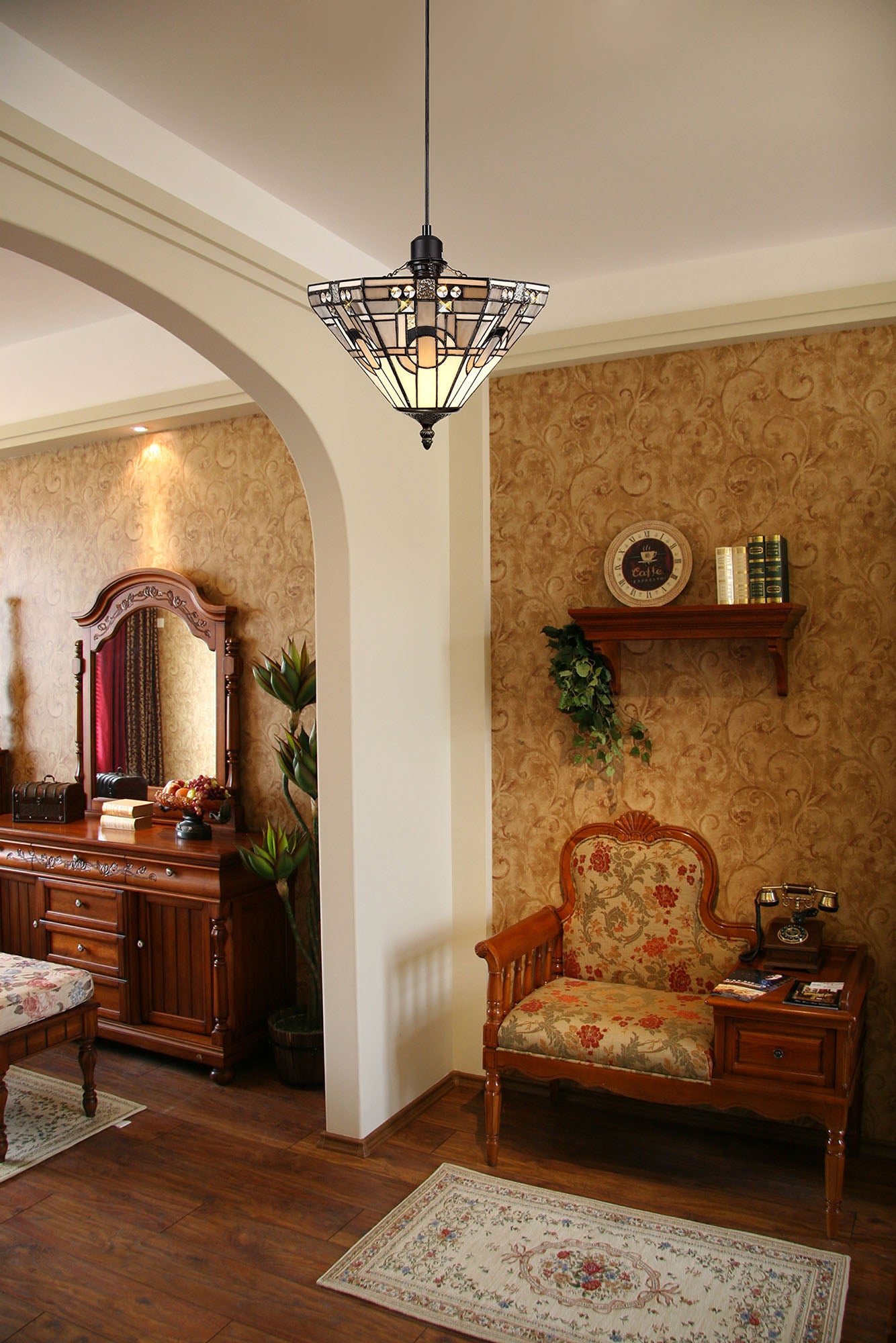 Atek takes its name from the inspiration of its design. The vintage effect of the Tiffany glass is interpreted to reflect Aztecan artistic creations with the shapes and positioning of the glass pieces being furthered by the shape of the shade itself. Giving this range a subtle modern edge the shades are embedded with clear crystal pieces in keeping with the monochrome palette of coloured glass. Combined with the table lamp and ceiling light this range would be perfect in any room.